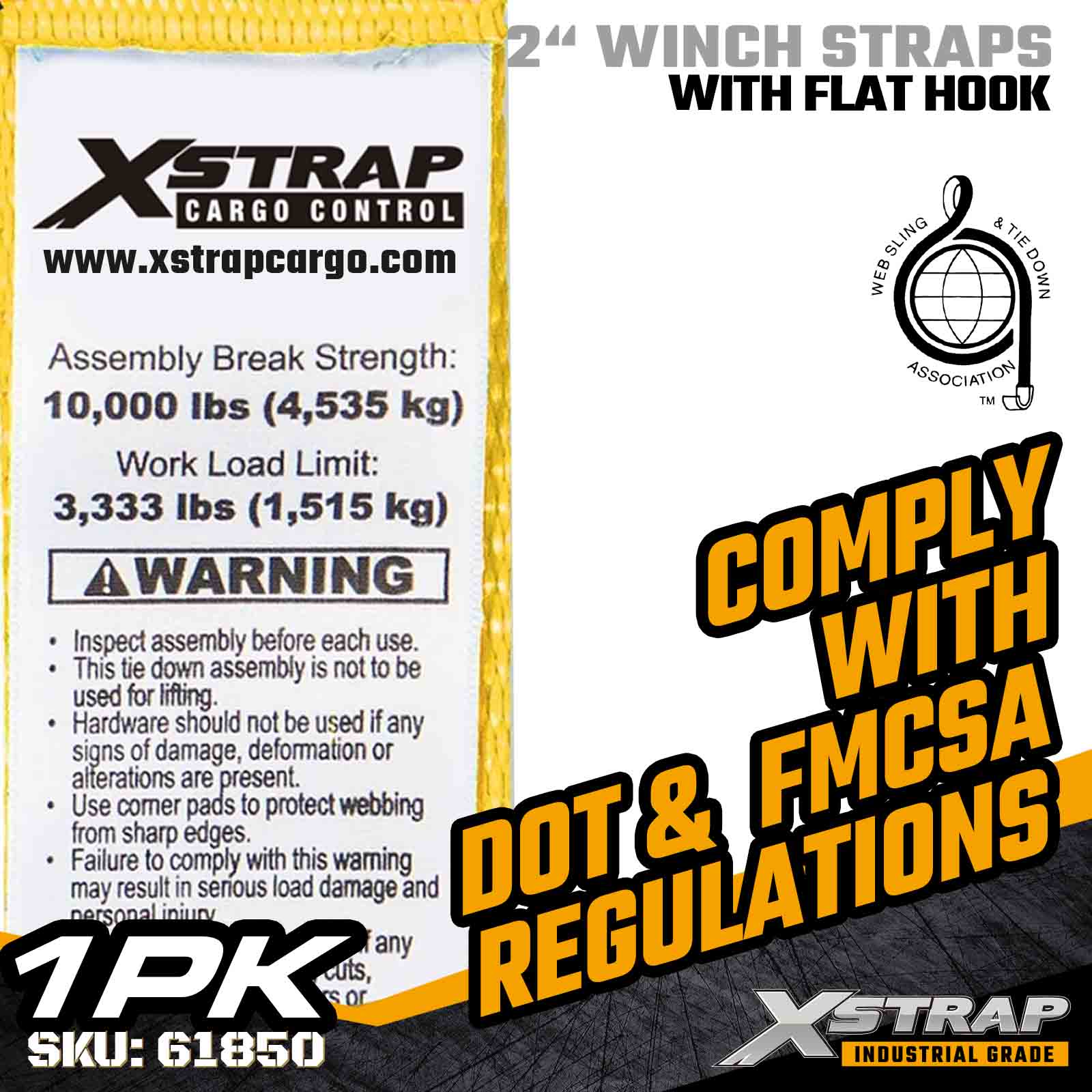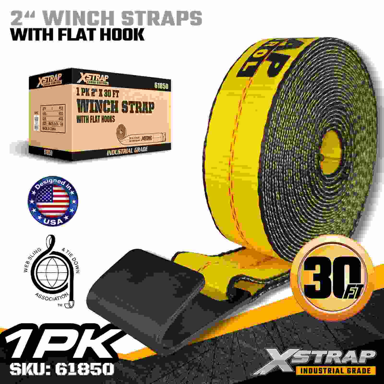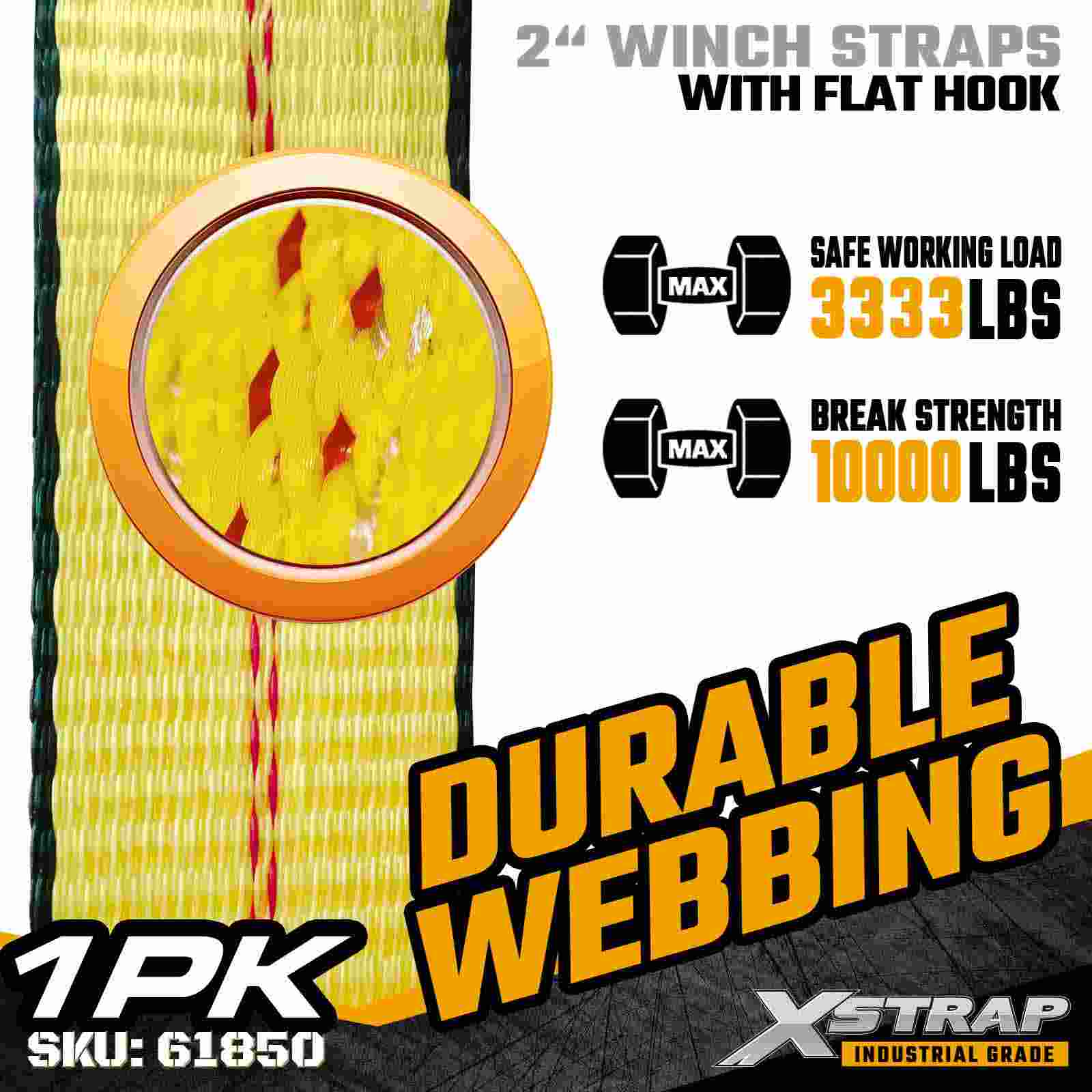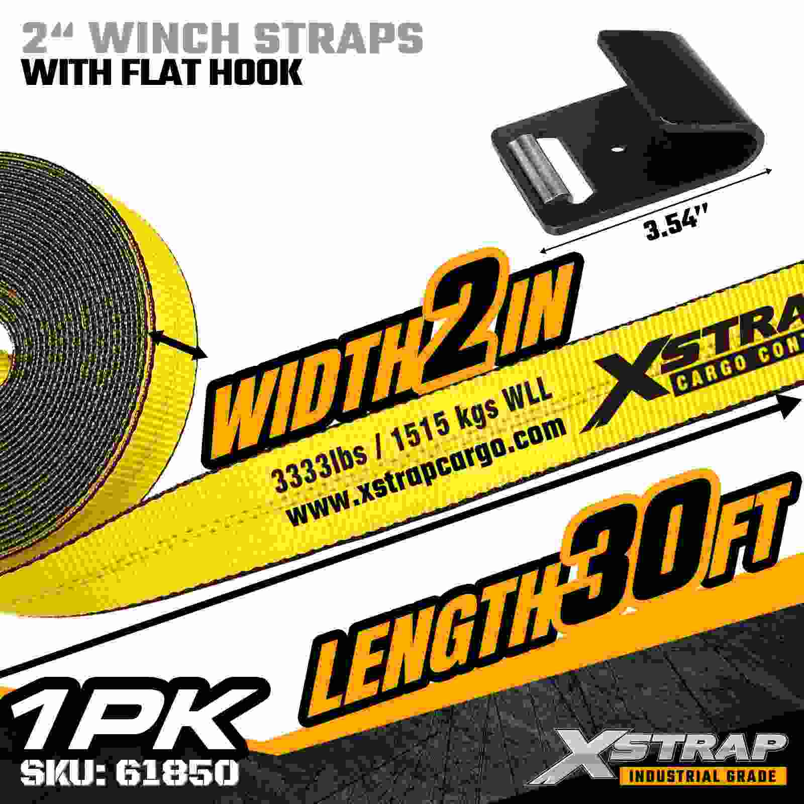 Xstrap 61850 2" 30ft Standard Winch Strap aedificatur pro certo mercium flatbed secure, featuring firmati Hooke planae et altitudinis polyester spontanei. Cum 3,333 pondo Laboris Lond Limit et 10,000 pondo Contere Strength, certa opera pro vecturis, grabatis oneribus et applicationibus generalibus, tibiis, tibiis, innixum praebet.