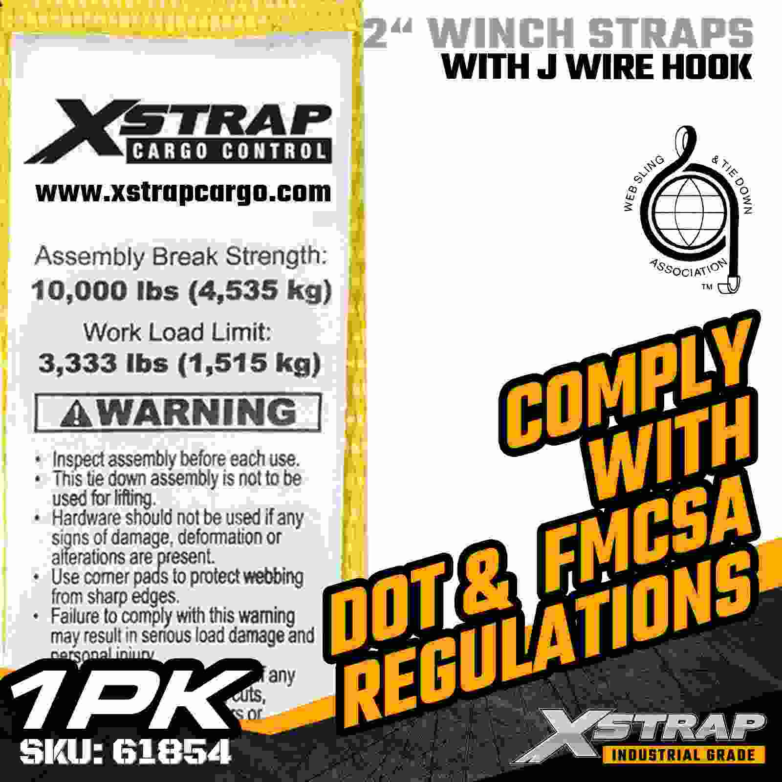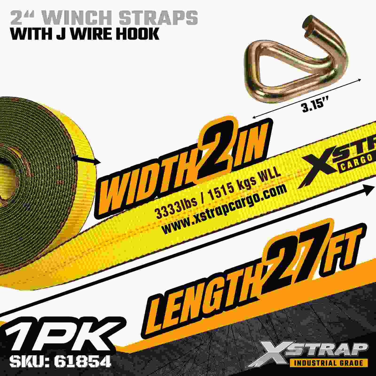 Xstrap 61854 2" 27ft Vexillum Winch Strap est durabilis et certa merces secuturae solutionis ad globum flatbed et onerariis professionalibus destinata. Featuring filum validum Hook et solidae roboris polyester spontaneus, hoc 2 inch winch lorum liberat 3,333 libras Laboris Lond limitis et 10,000 pondo Frange Fortitudo. Praecipua onerariae machinae, in cotidiano, cursare. efficit.