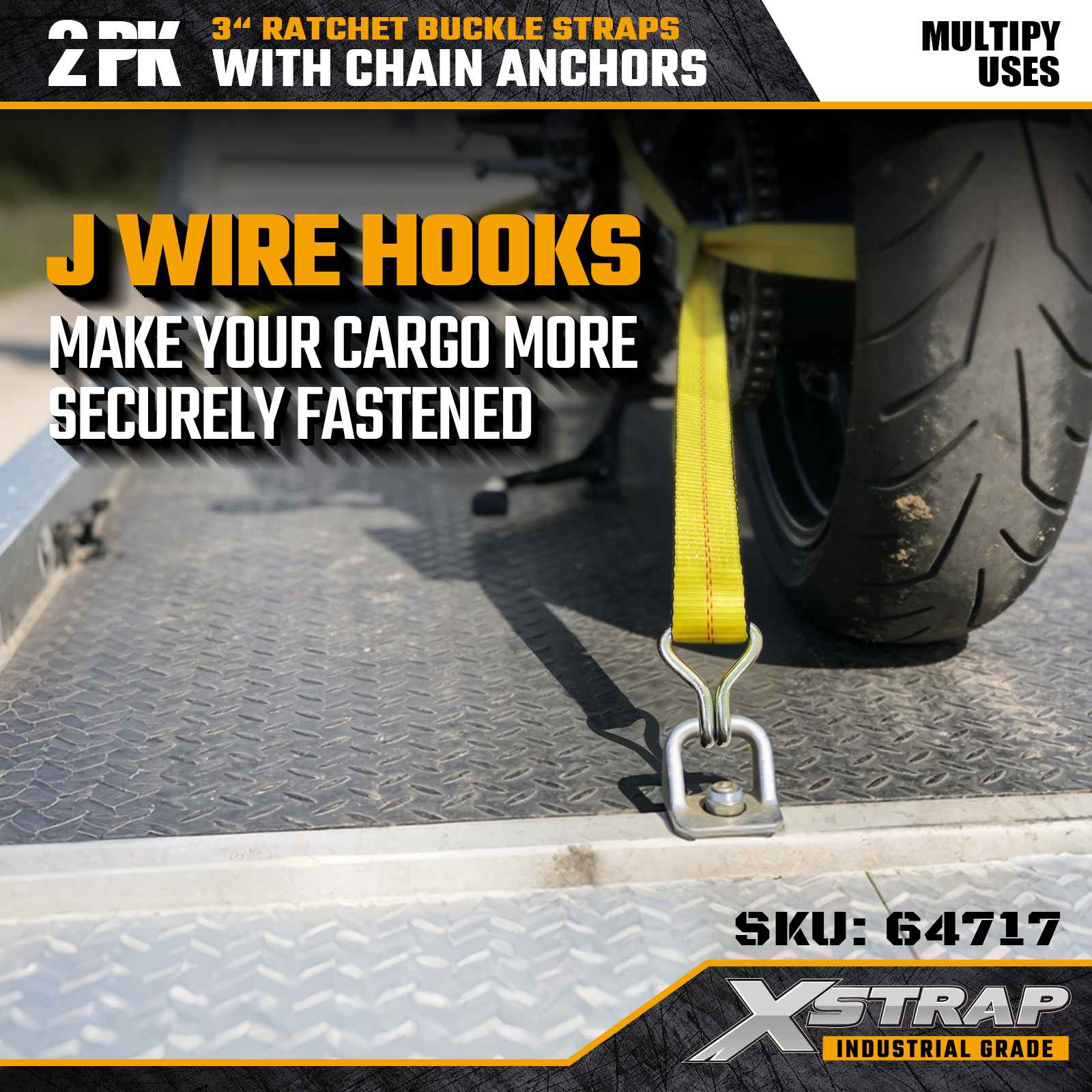 Xstrap 64717 3" 30ft Ratchet Fibula Straps (2-Pack) machinatae sunt ad onerariam professionalem secuturam, featurationem confirmandi filum uncinum et mechanismum grave officium ratchetae. Cum 5,000 pondo onerationis limitis et 15,000 pondo frange Fortitudo, hae corrigiae certas liberant, longam observantiam pro flatbeds, machinis onerariis.