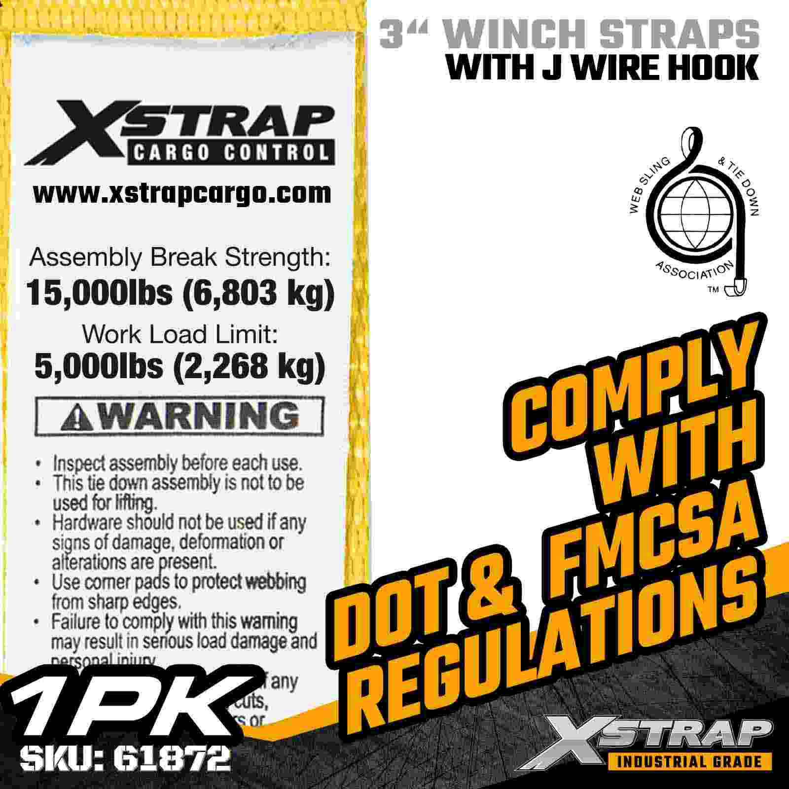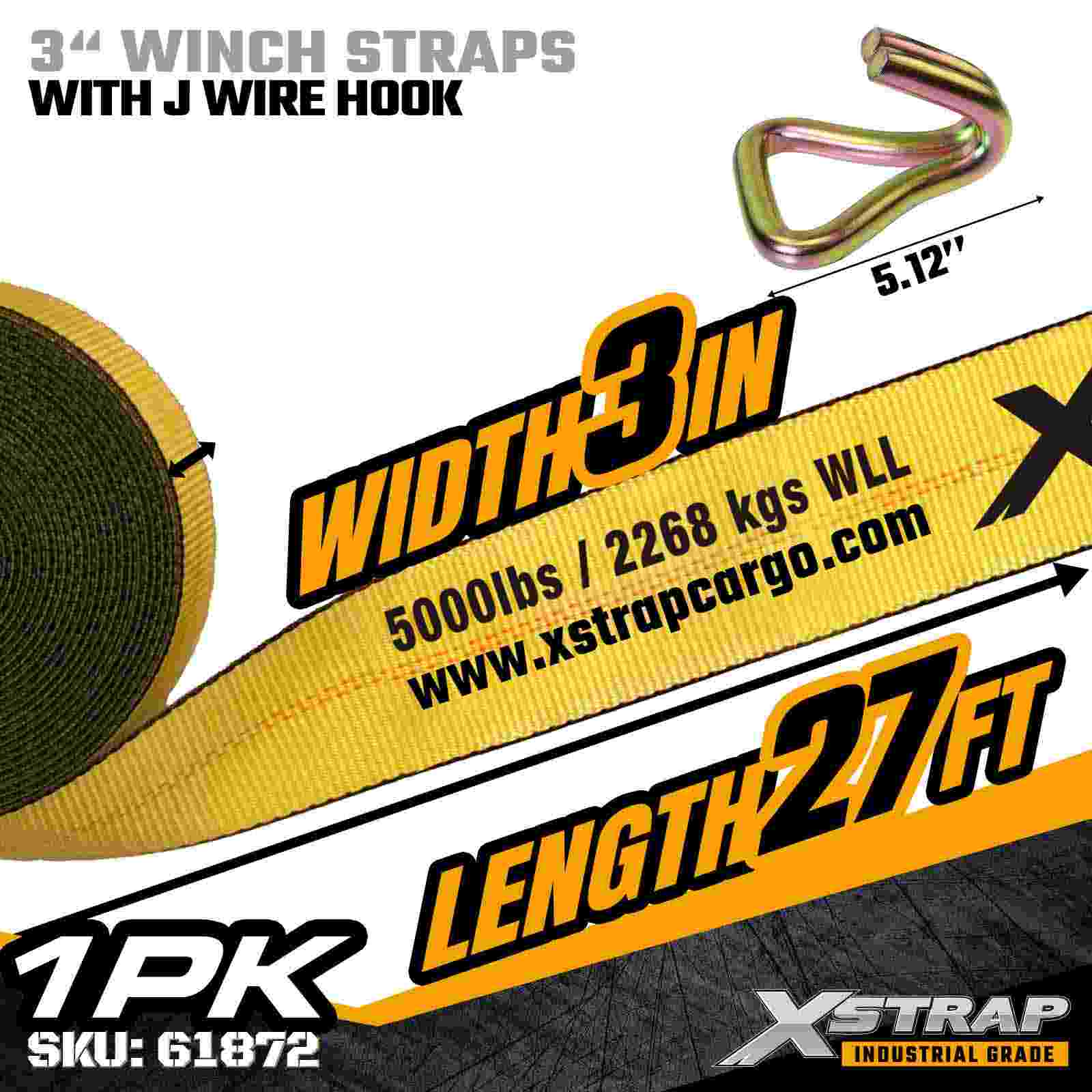 Xstrap 61872 3" 27ft Vexillum Winch Strap est grave-officium oneris secures solutionis ad globum globorum et onerariorum industrialium destinatum. Instructus cum supplemento filum Hook et extra-latum 3-inch polyester webbing, haec 3 digiti winch lorum liberat 5,000 pondo Operationis Lond limitem et 15.000 libras solvendo vires, quae apta sunt, aptando Hookium et extra-latum 3-inch polyester webbing, haec 3 pollicis lorum liberat 5,000 pondo Operationis Lond limitis et 15.000 pondo solvendo vires. nexus punctorum in diurnis vecturis gerendis.