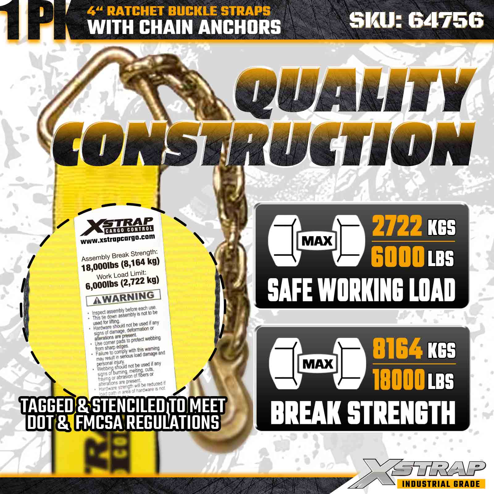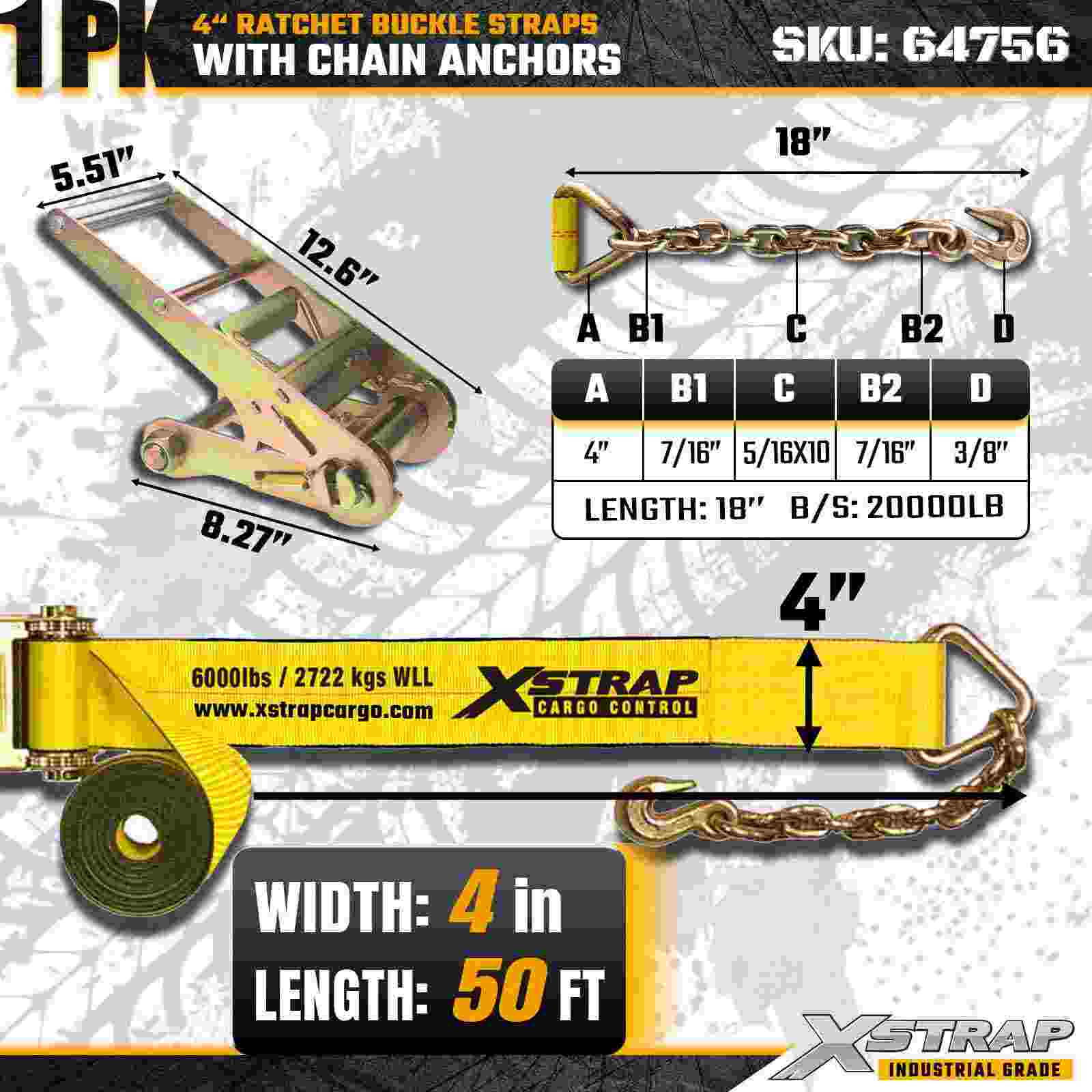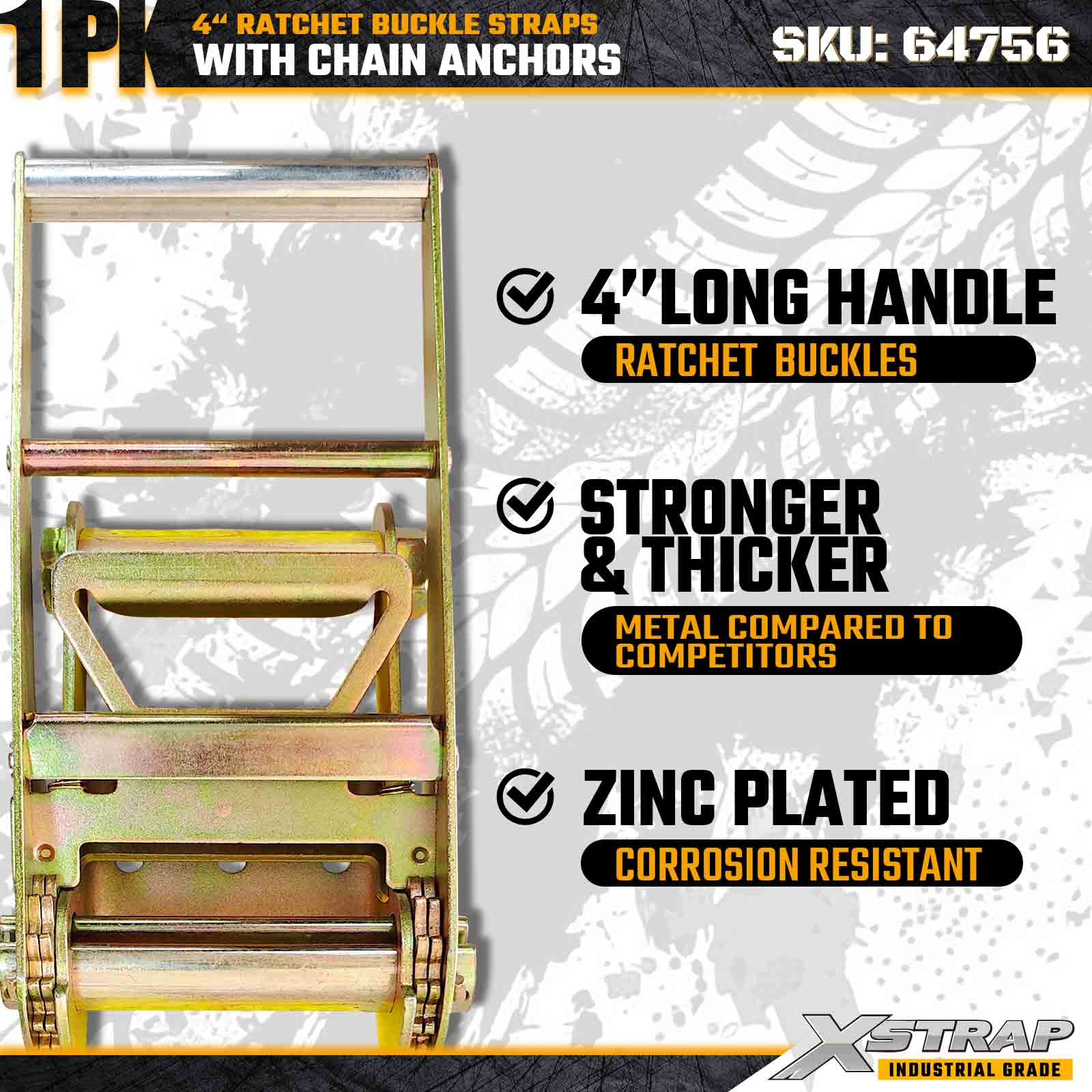 Xstrap 64756 4" 50ft Ratchet Fibula lorum cum catena Anchorae Solve robur 18,000 pondo (1-Pack)
