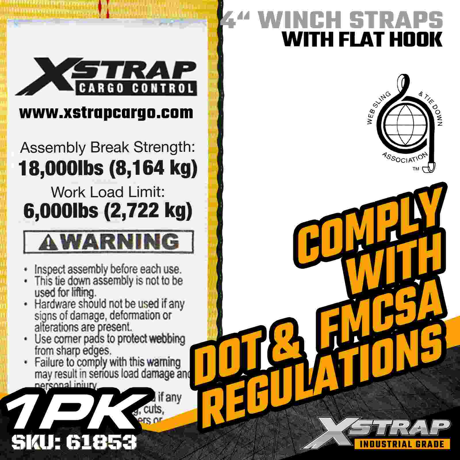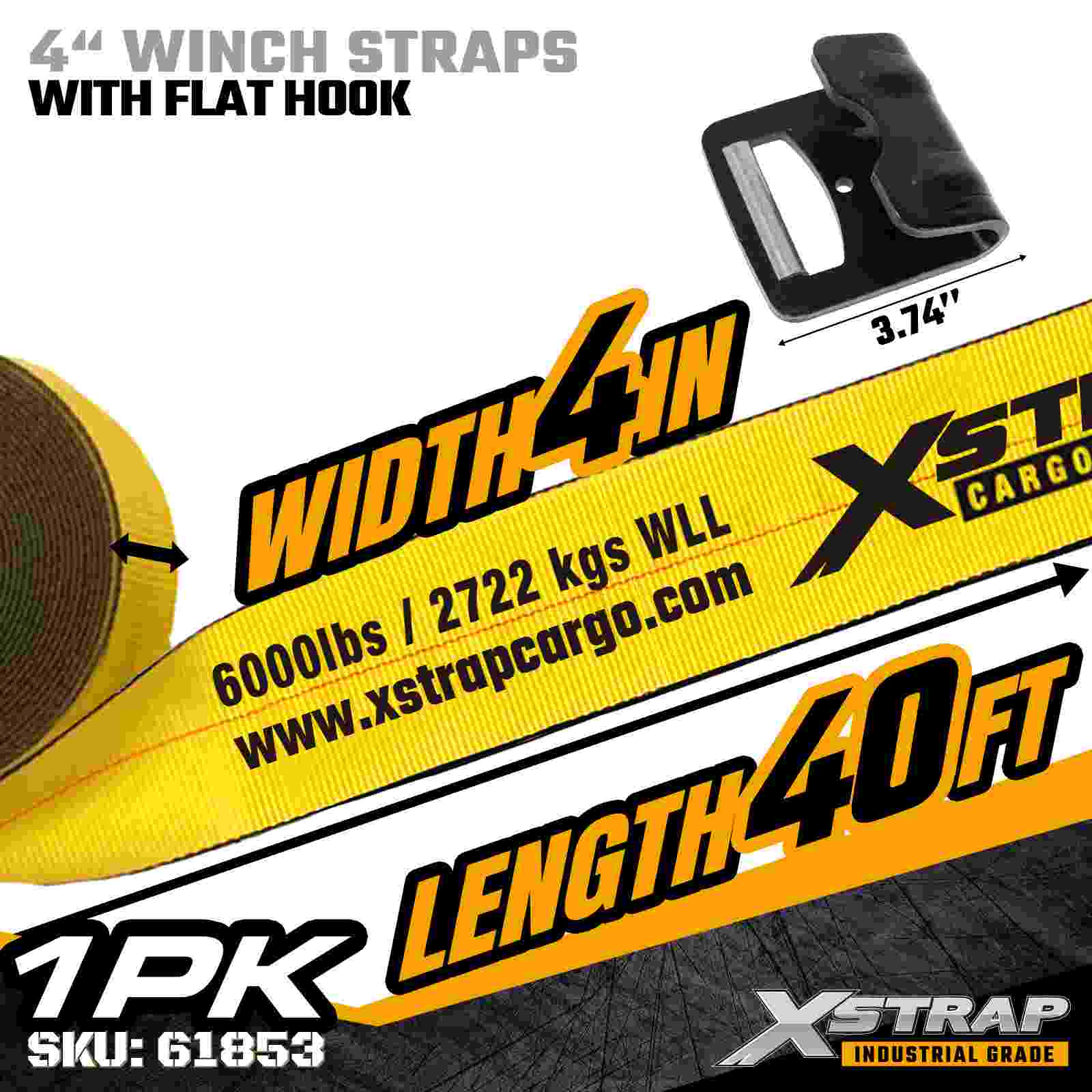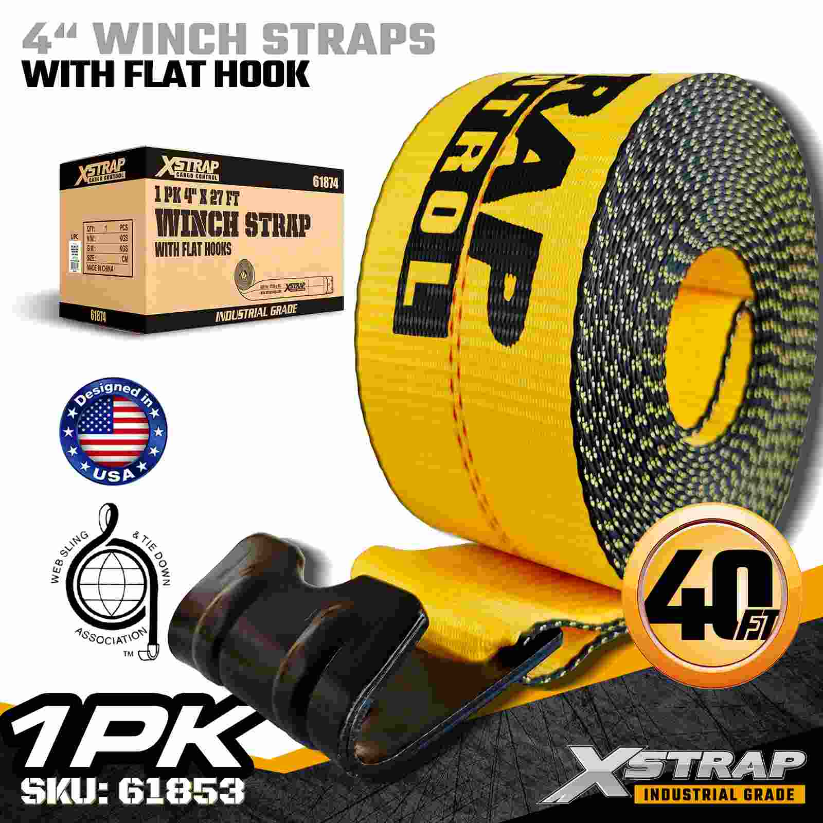 Xstrap 61853 4" 40ft Vexillum Winch Strap summus capacitas est, extensa mercium tutelae lorum machinatorum pro trailers emissariis et industrialis onerariis oversisatis. Aliquam firmam Hook planae et extra-latae 4 pollicis polyester spontaneus est, haec 4 pollicis lorum bracteis bracteis VI 000 librarum onerariis solvendis et extra longi- dinem solvendo. lata, alta vel irregularia onera quae maximam coverage et stabilitatem requirunt.