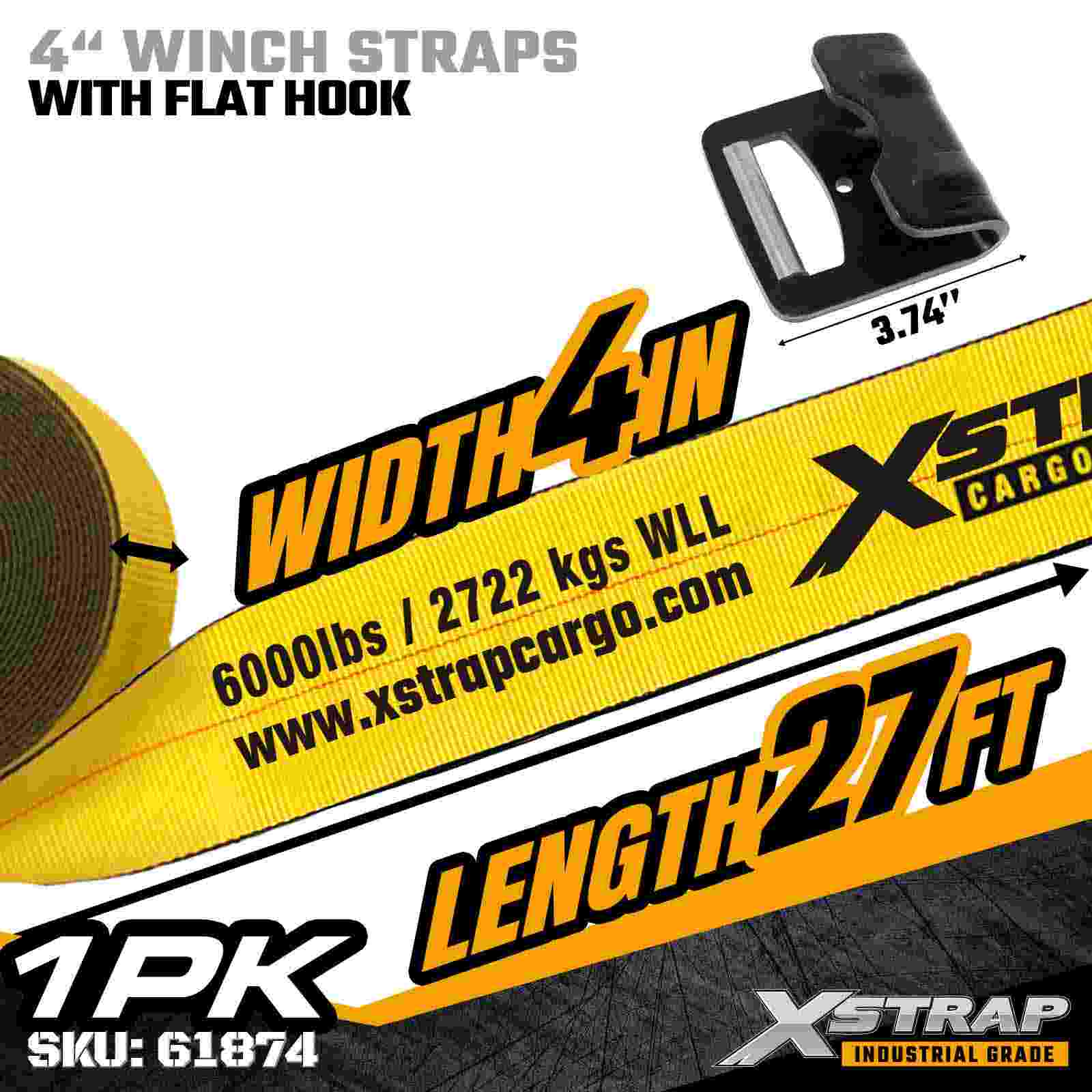 Xstrap 61874 4" 27ft Vexillum Winch Strap grave officium est, summus capacitas oneraria secures lorum machinatorum ad massas planas et industriae onerarias. Featuring firmati Hooke planae et extra-latae 4 pollicis polyester ligatura, haec 4 pollicis fascia liberat 6000 pondo librae fabricandae praepediti onerariis et 18.000. Latius onerariis subsidiis plana Hook et extra-lata 4-inch polyester ligatura, haec 4 inch winch lorum liberat 6,000 pondo faciens idealem operandi modum et 18.000 libras. In amplioribus oneribus fractis bracteis firmati et extra-latum 4-inch polyester plicando plena, vel delicata oneraria, quae maximam stabilitatem requirit.