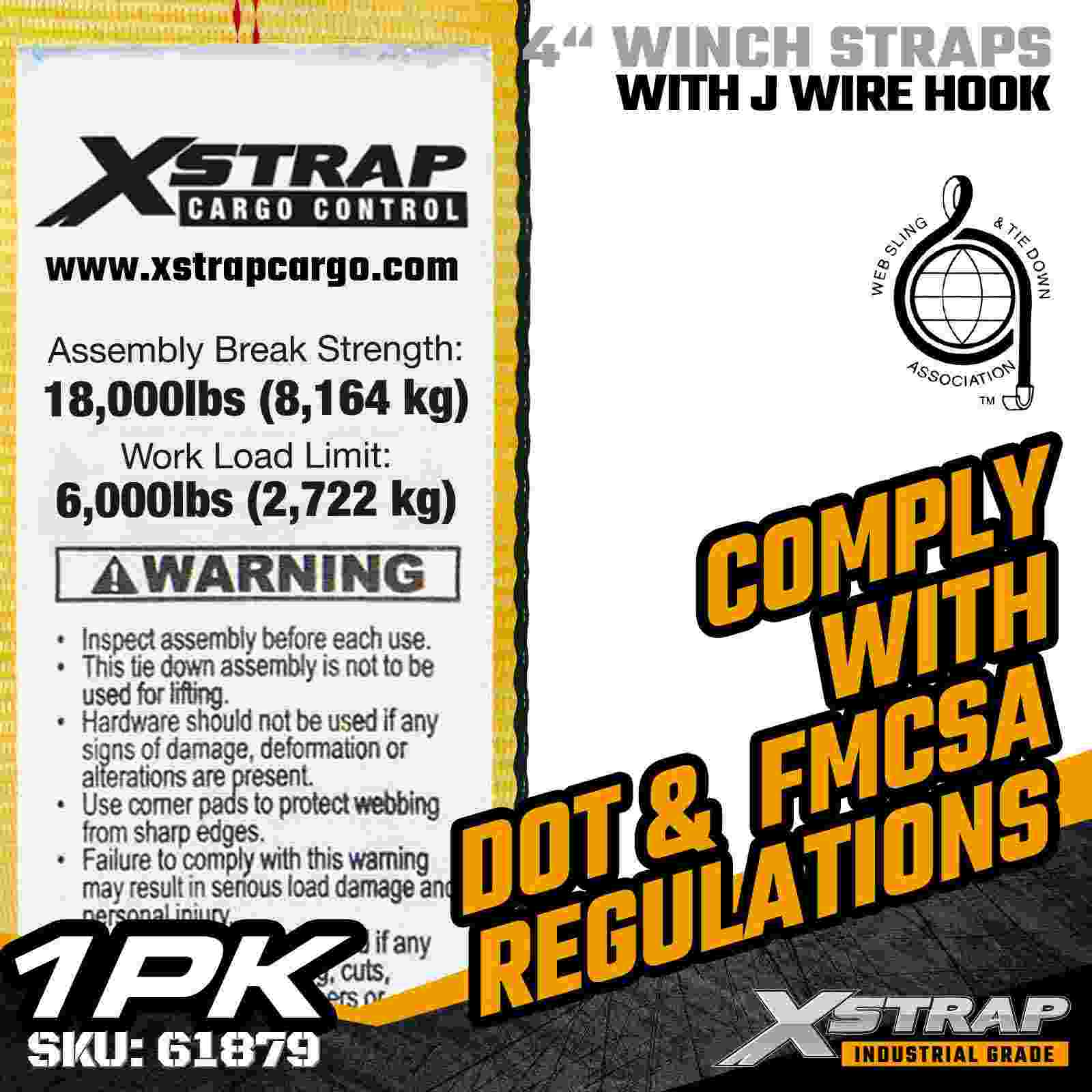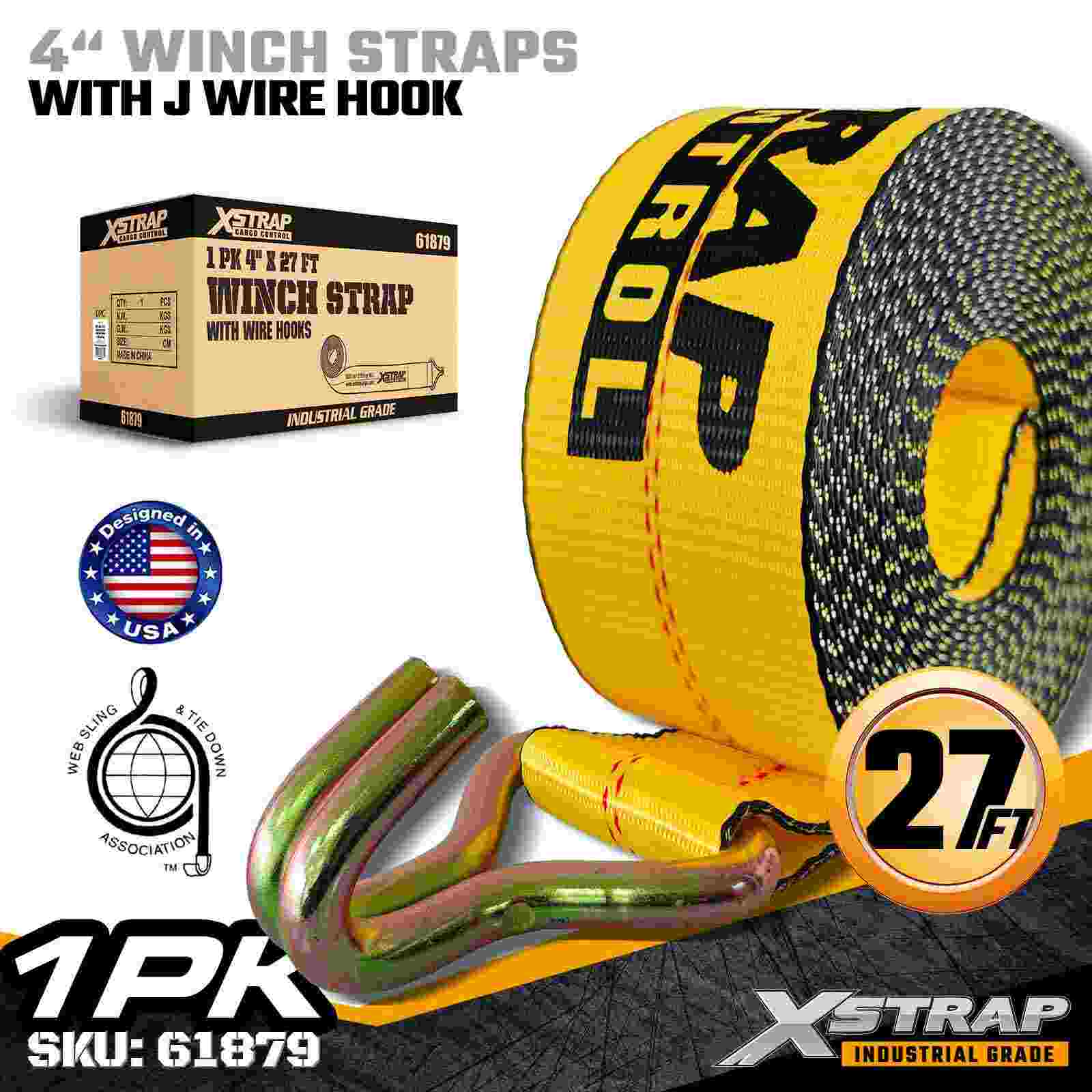 Xstrap 61879 4" 27ft Vexillum Winch Strap est grave officium, ancoram onerarum flexibile loramentum secure dispositum ad massas planas et onerarias industriales. Featuring firmamentum filum Hook et ultra-latum 4-inch polyester ligatura, haec 4 digiti winch corrigiam tradit 6,000 pondo Operationis onus limitis et attachiamentum 18.000 pondo Faciens illudque exemplar praebet pro optionibus operariorum qui egent facili, aptabili connexione puncta ad varias onerarias rationes.
