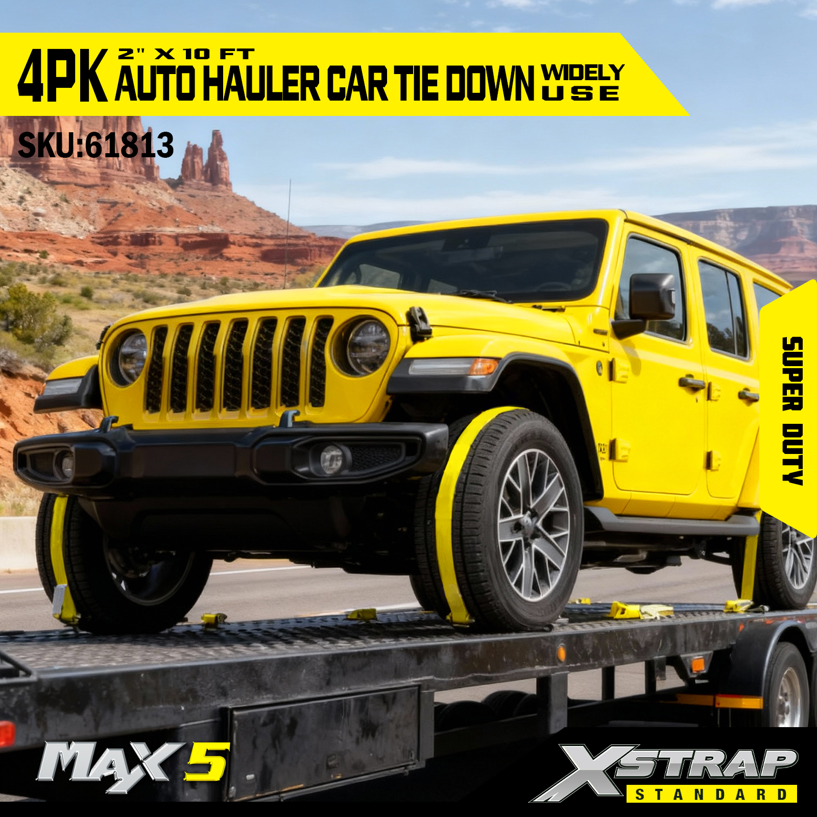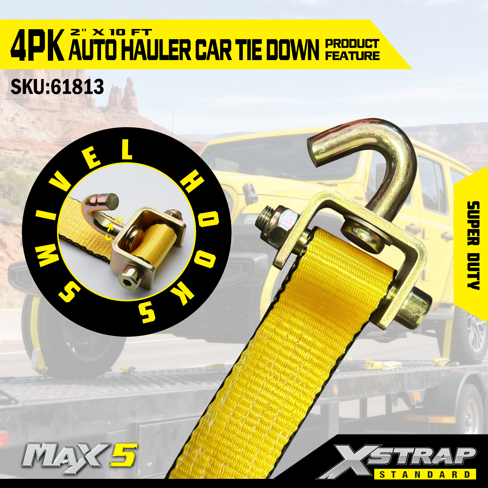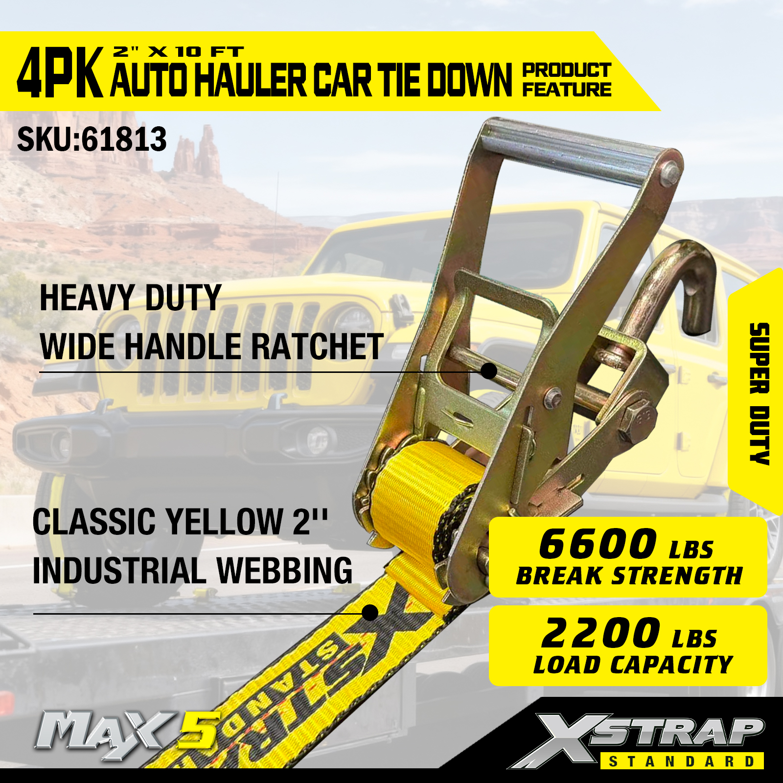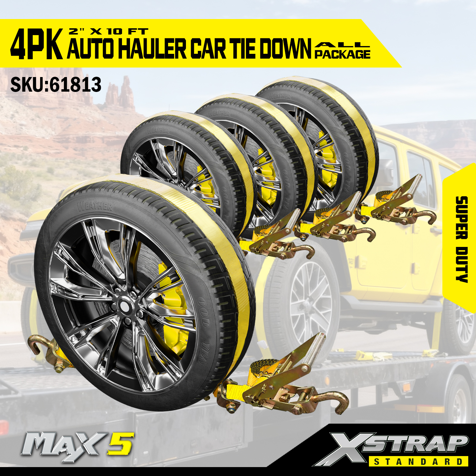 Xstrap Car Hauler Straps Gravis Officium 6,600 libras frange Strength - Tyro alligate Straps pro trailer, Rota ligare Downs cum Flexilis Cleats pro SUV, CARRUS, ATV, UTV