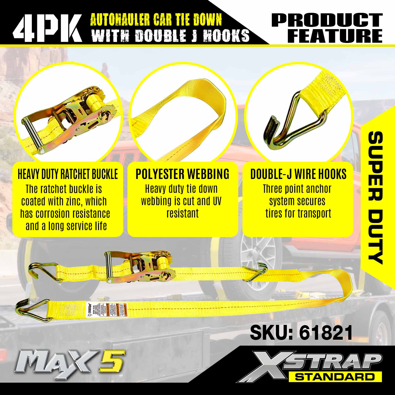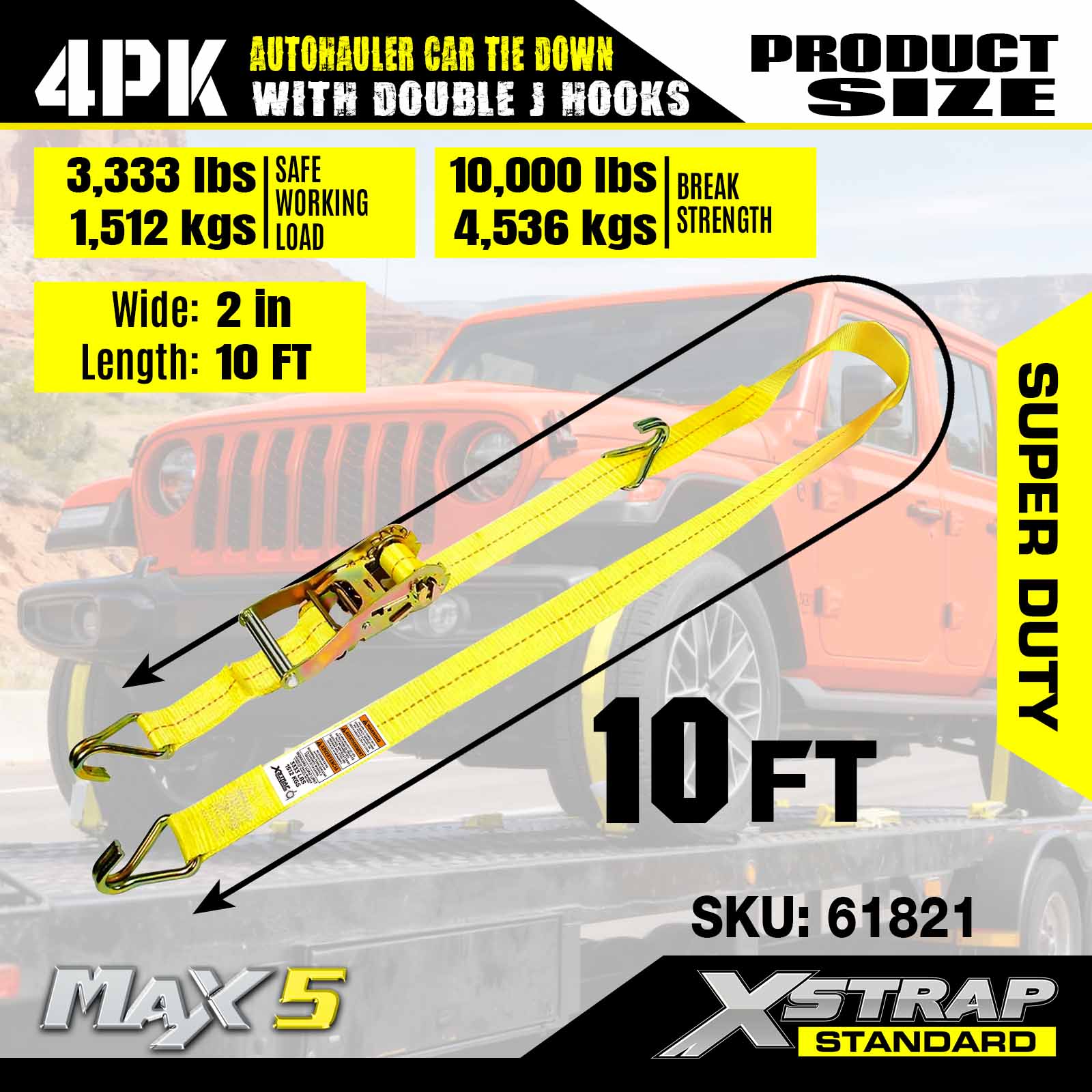 2" x 10' 4PK Auto Hauler Straps