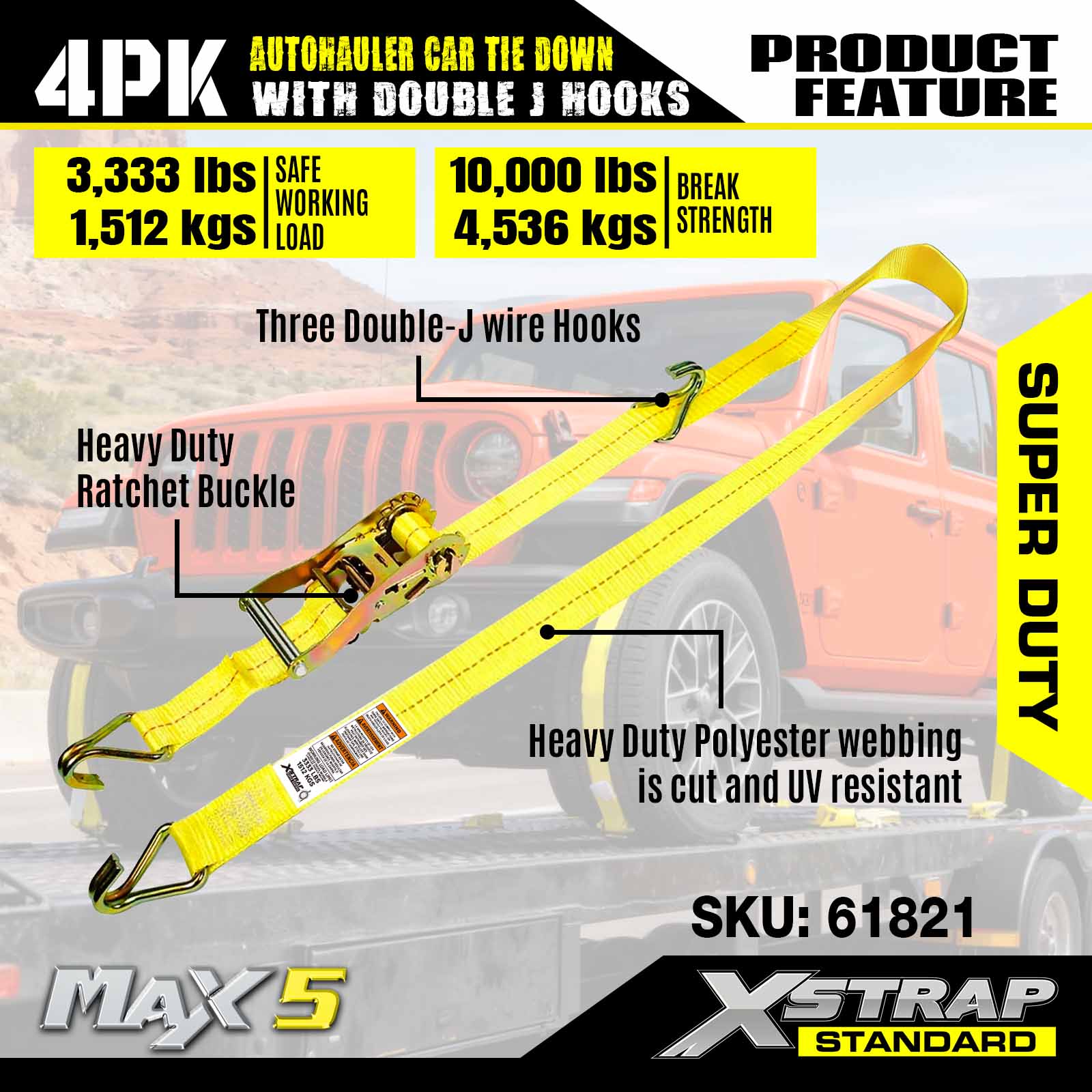 Xstrap Car Hauler Straps Gravis Officium 10,000 libras frange Strength - Tyro ligate Straps pro trailer, Rota ligare Downs cum Flexilis Cleats pro SUV, CARRUS, ATV, UTV