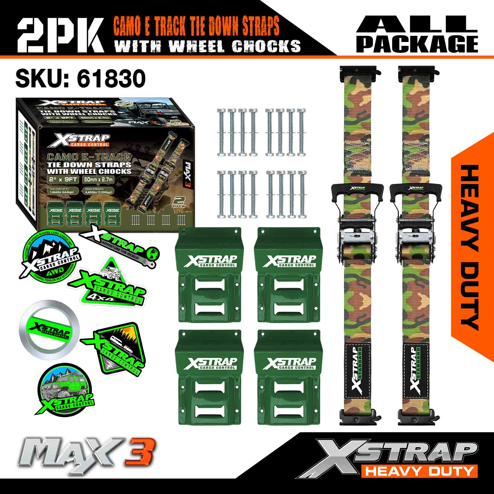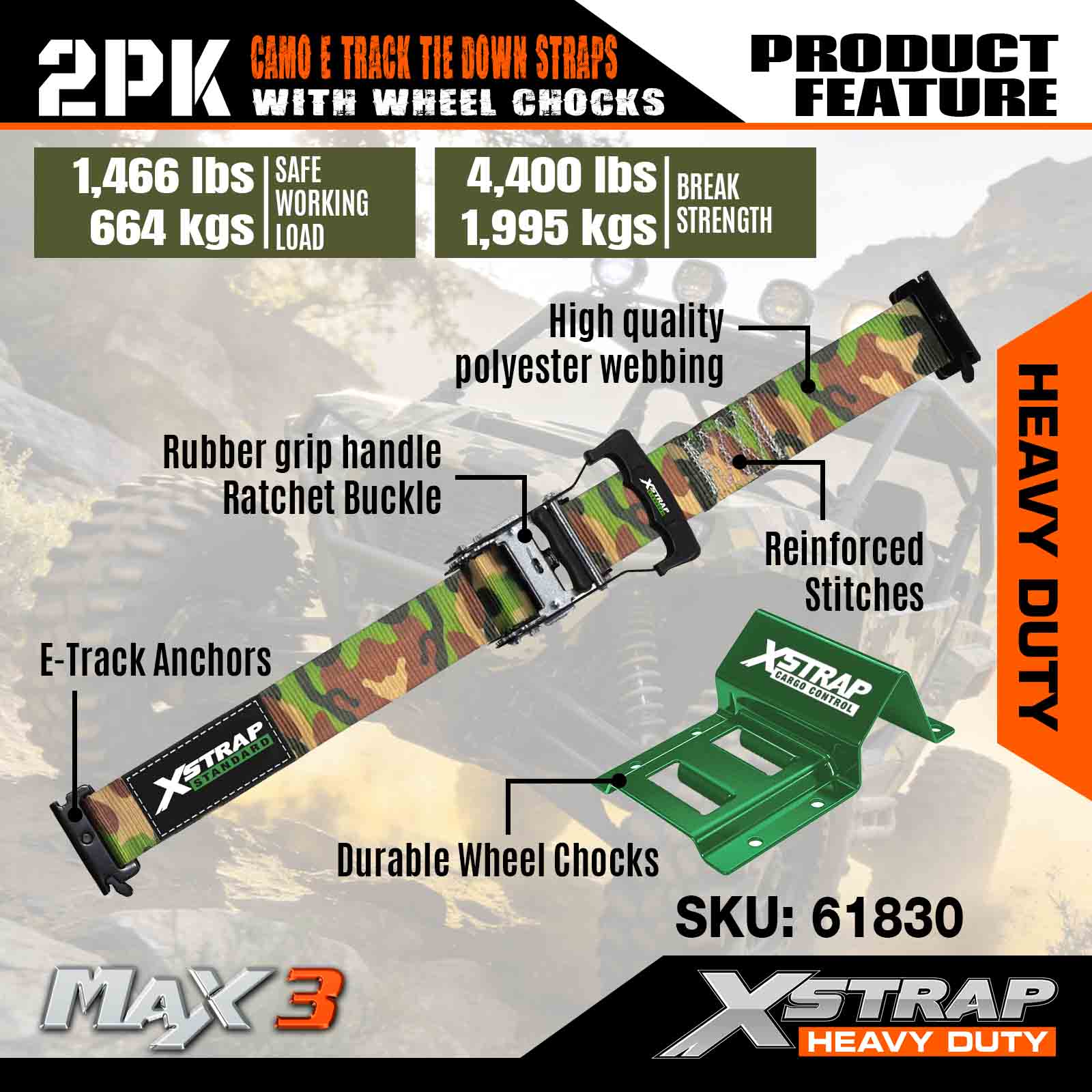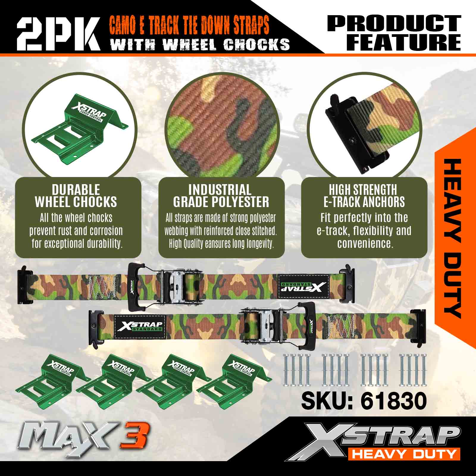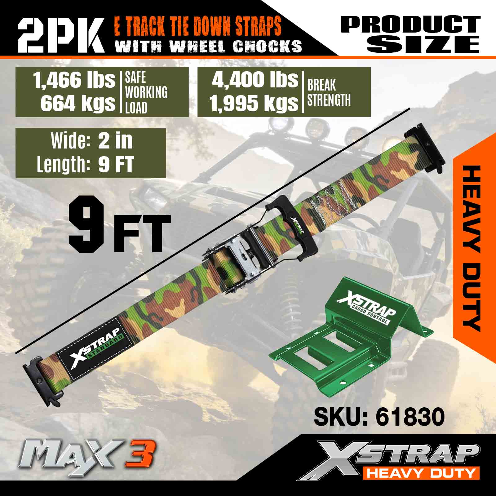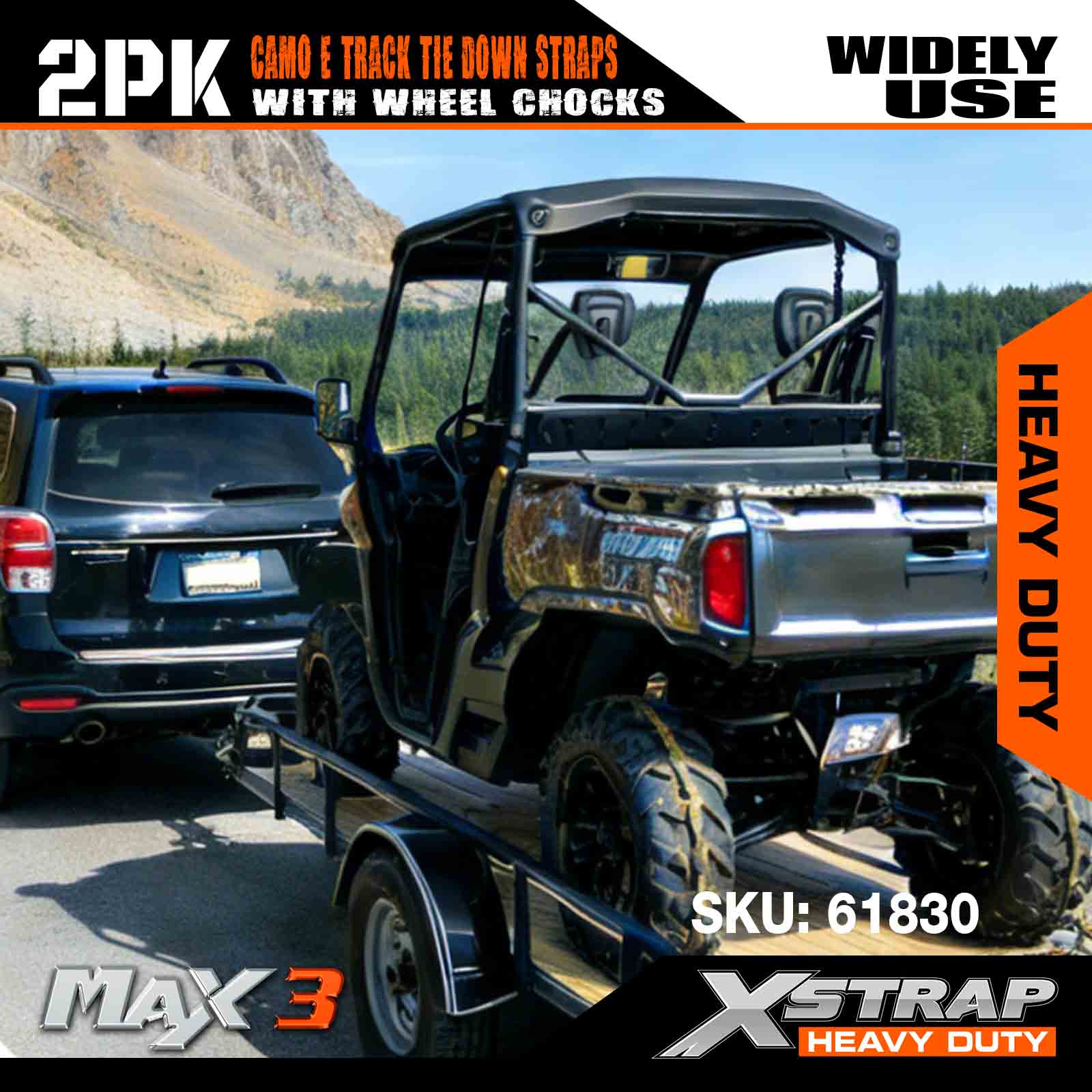 Xstrap Rota Chock alligate Ornamentum 4,400lb Virtus gaudete (2) Gravis Officium Trailer Tyro Ratchet Straps (4) Rota Chocks - E Track Ratio ATV, UTV, Tondere Fossor Quatuor Wheeler - CAMO