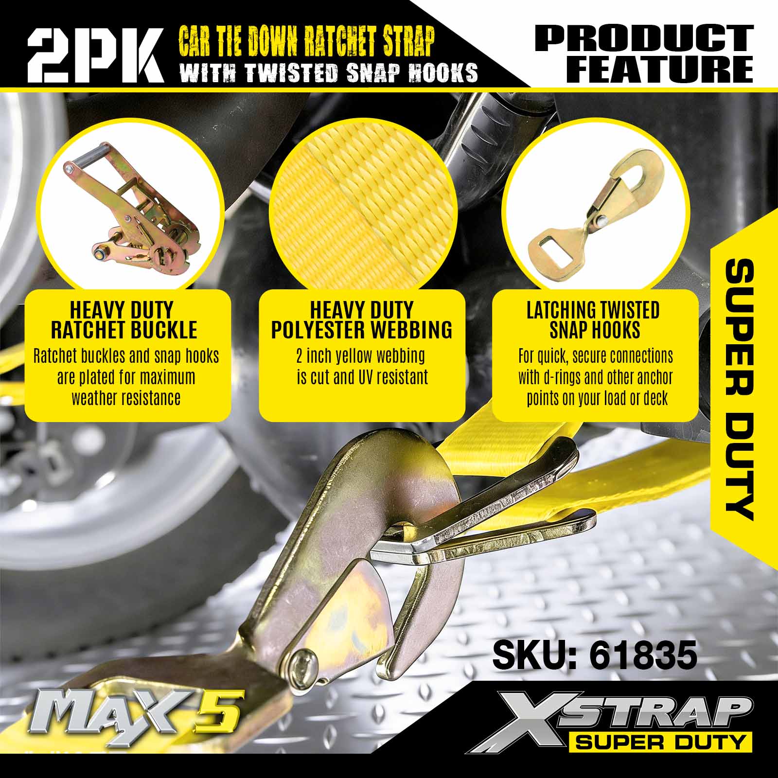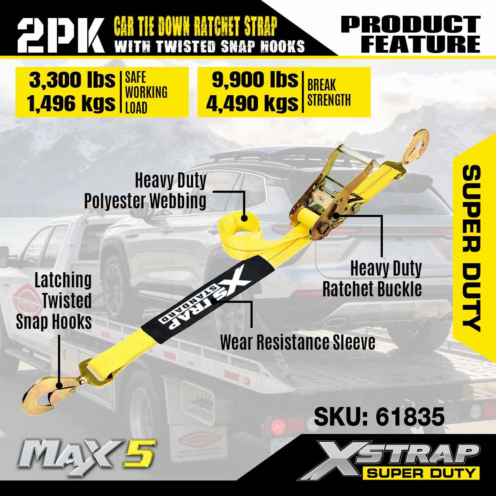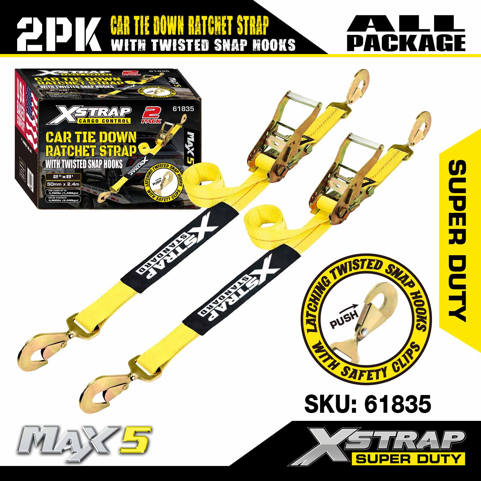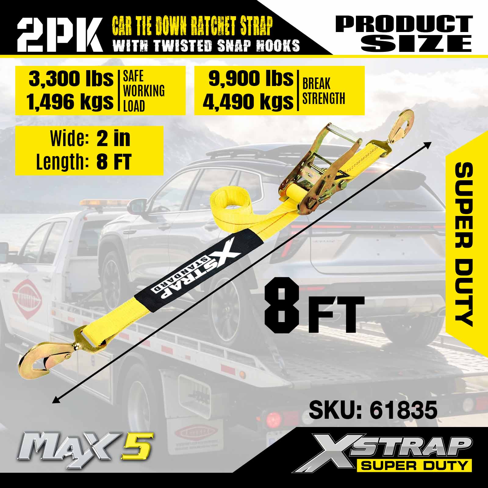 Xstrap Car ligatis habenae pro trailer, 2 Inch x 8 inch Gravis Officium Car Hauler Ratchet Straps, 2PK, 10,000lbs vires frange
