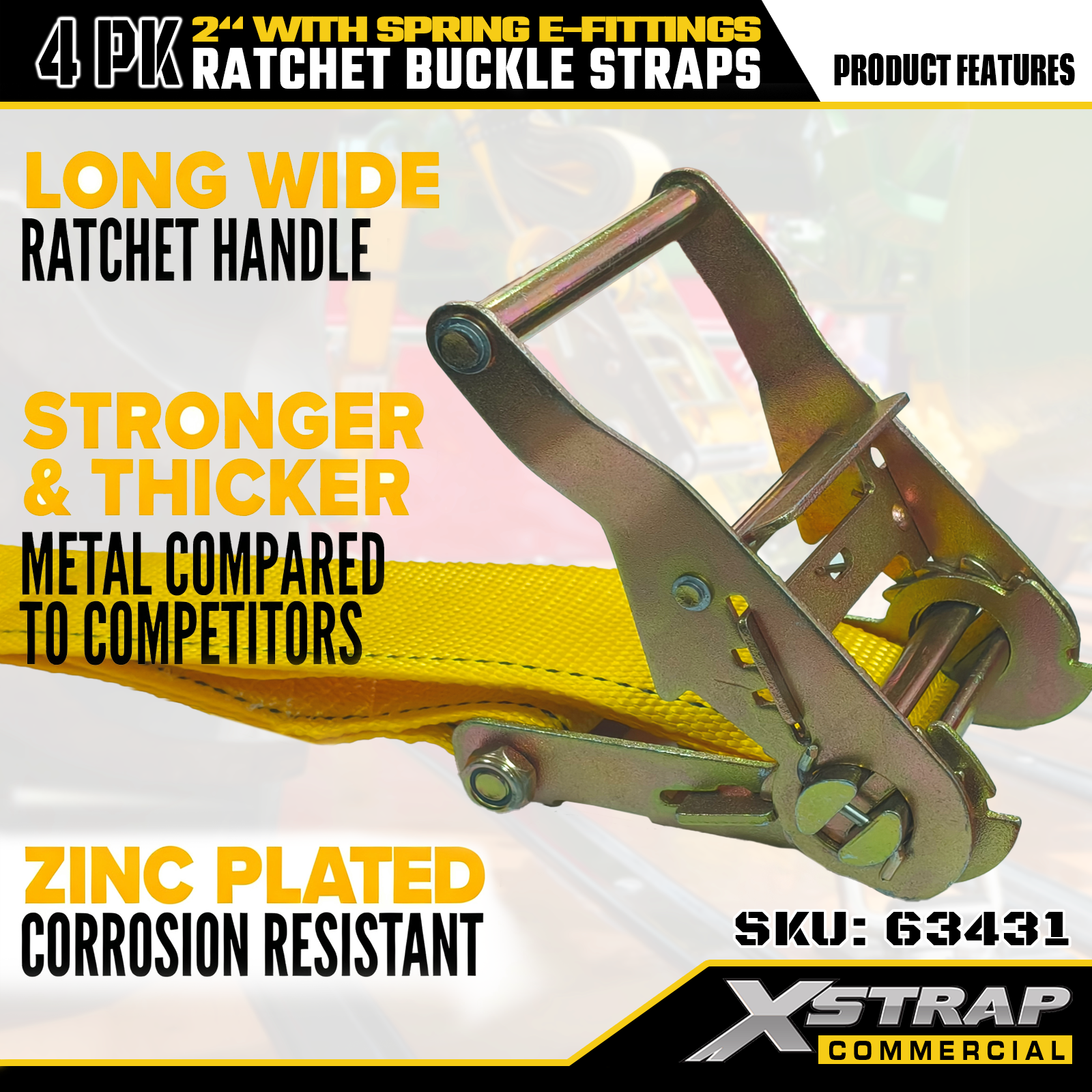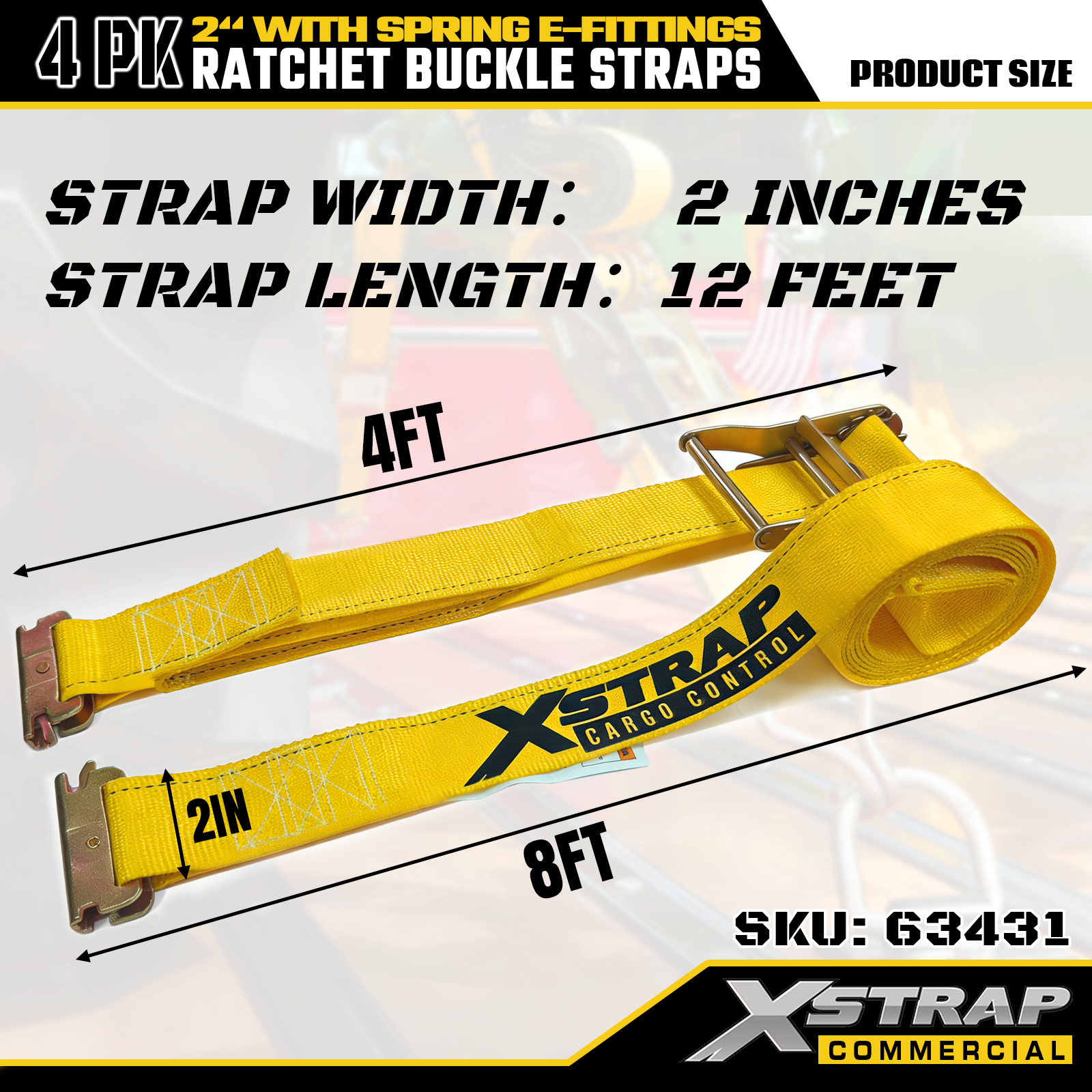 2" x 12' 4PK Ratchet Fibula Straps cum Spring E-Fittings