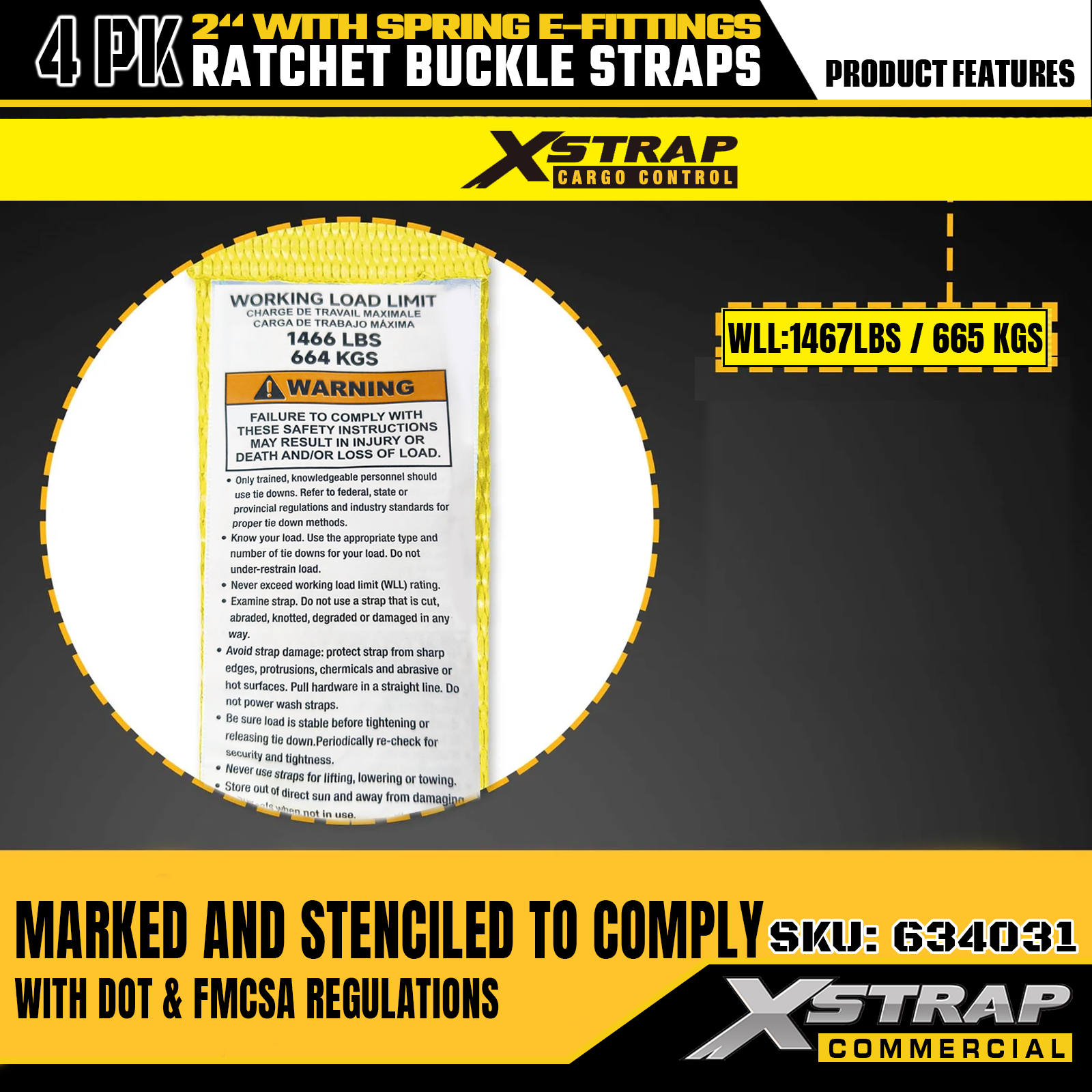 - Serena Salus Labeling & Commodum 4-Pack: Singula corrigia clare intitulata cum onere tuto laboranti (SWL) de 1467 pondo et maximam vim fractionis 4401 pondo, praebens informationes essentiales ad usum proprium. Venit in configuratione 4-pack, perfecte occurrens necessitates batch usui in variis mercibus moderandis et missionibus movendis.