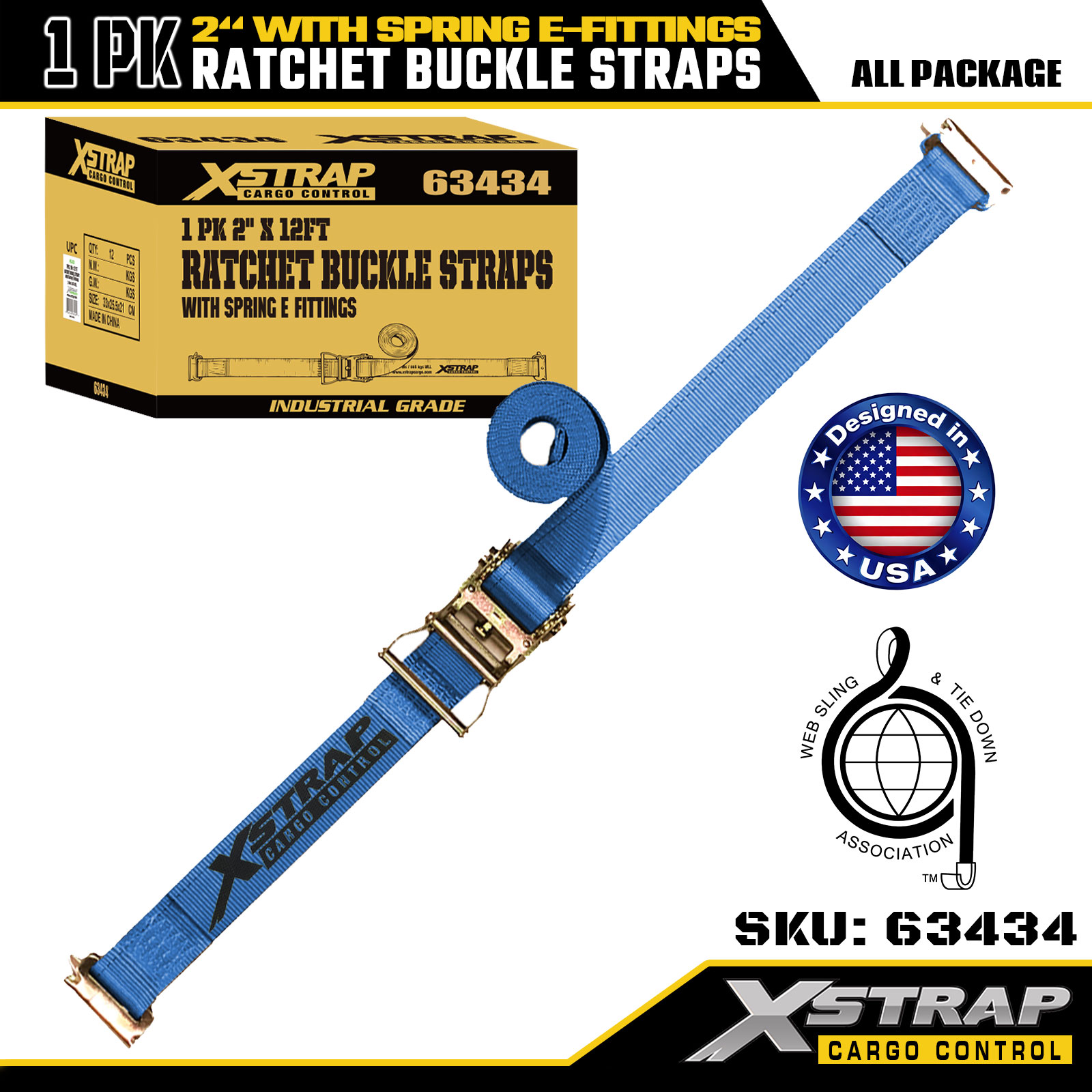 2" x 20' 1PK Ratchet Buckle Straps with Spring E-Fittings