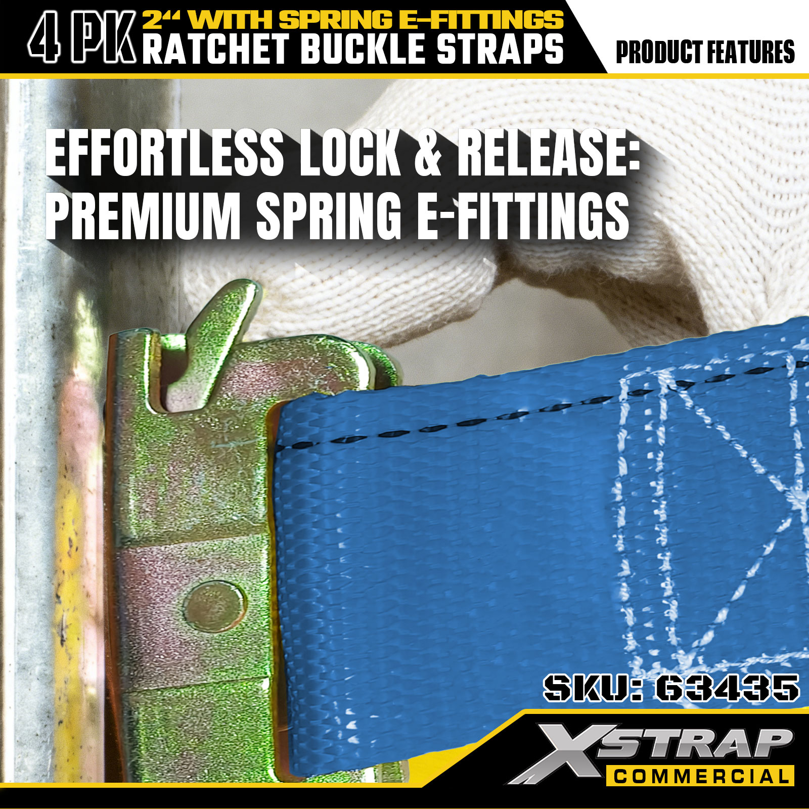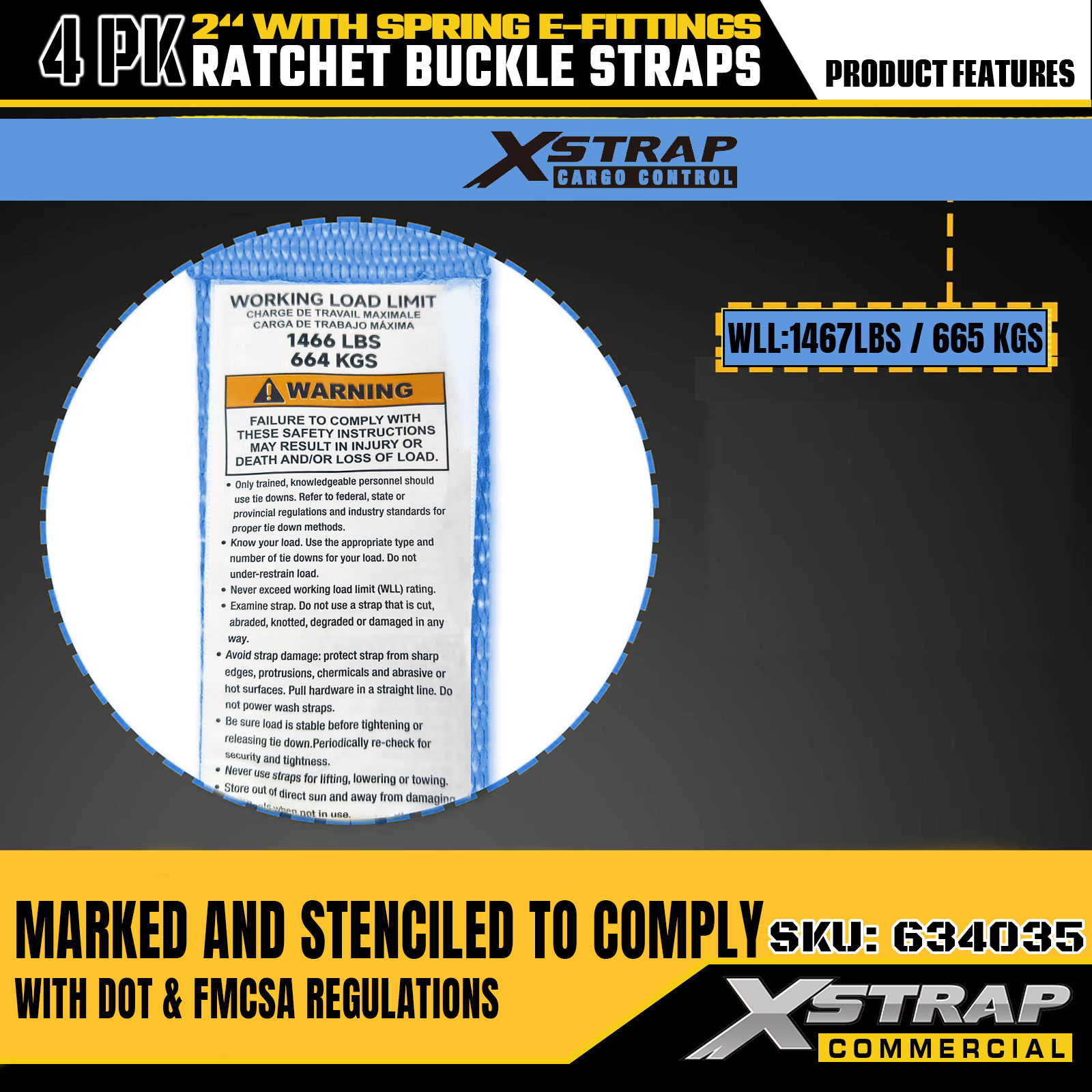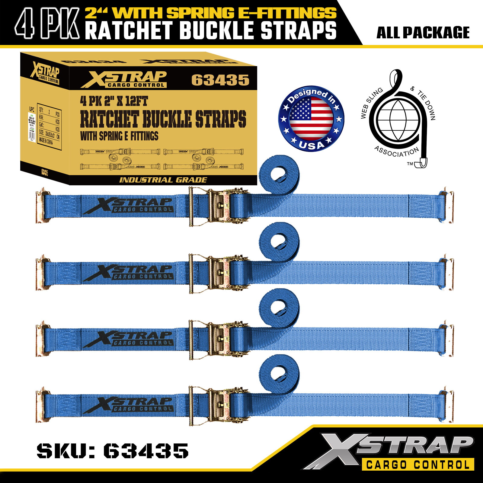 Xstrap 4 Pack Ratchet Tie-Down Straps, 2" x 12' Polyester Cargo Securing Straps with Spring E-Fittings, 1467 lbs Tutus Laboris Load (SWL) & 4401 lbs Fortitudo frangens, Trucks, Fossores, ATVs