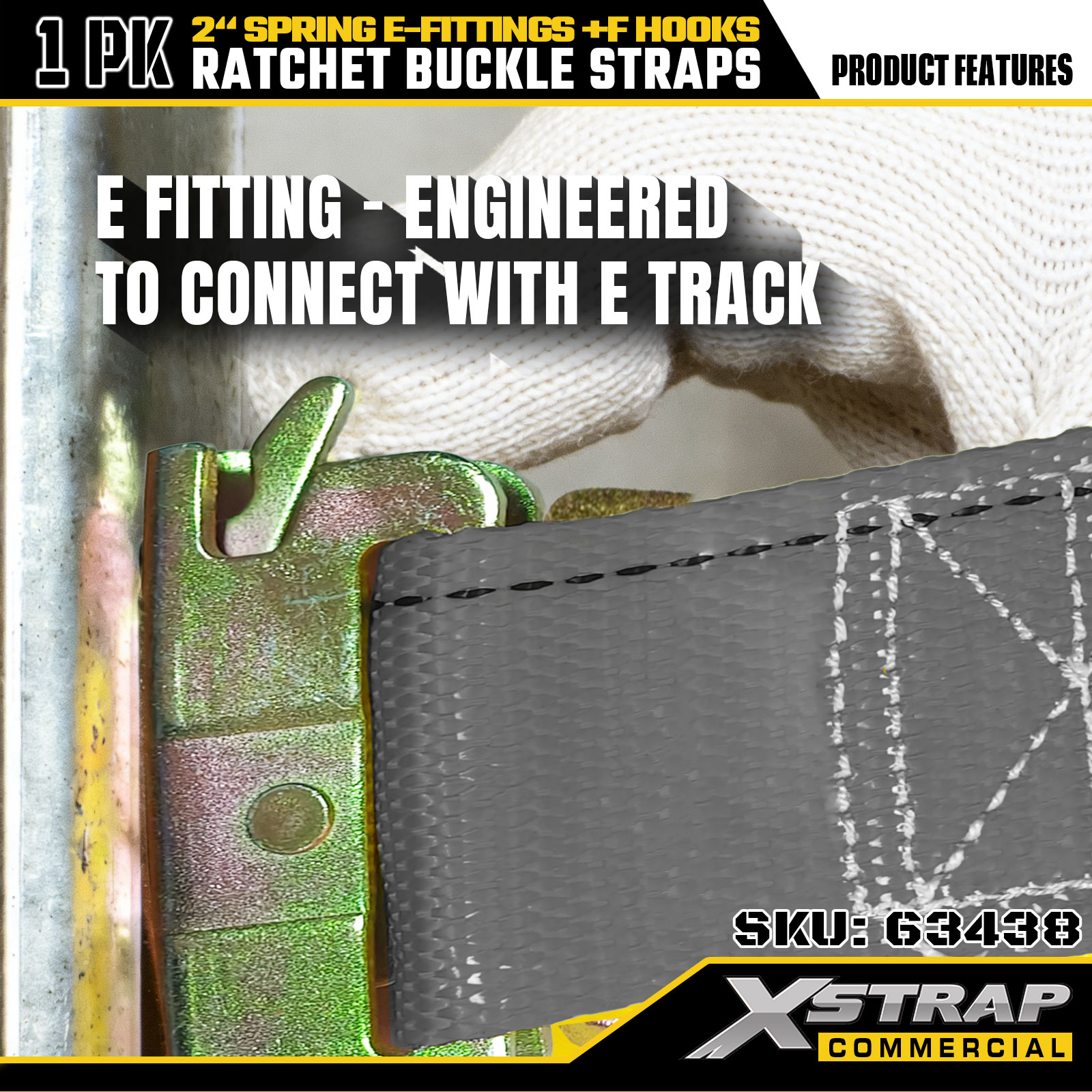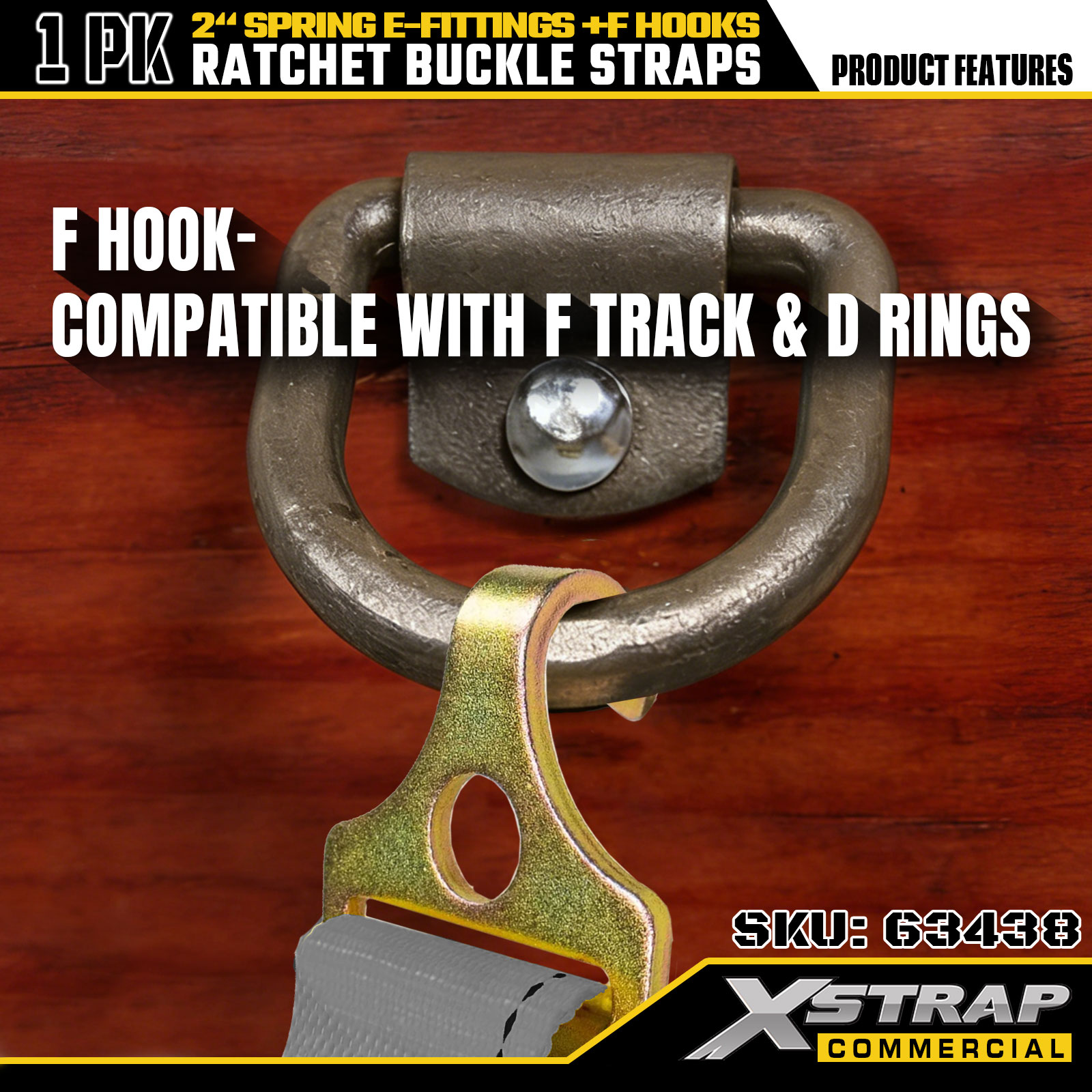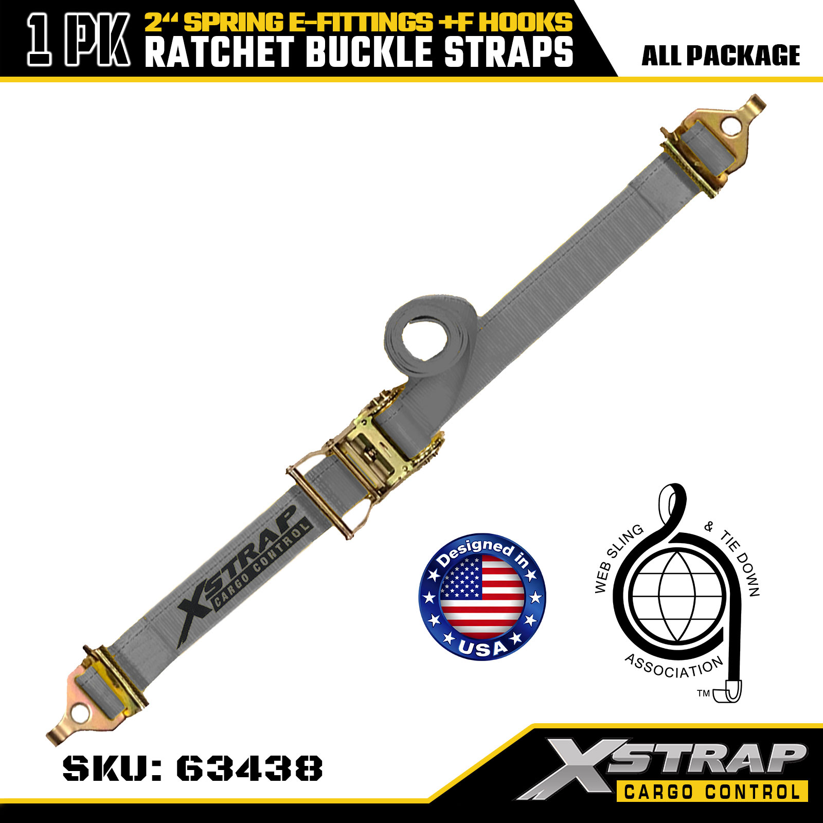 2" x 16' 1PK Ratchet Astra cum Vernis E-Fittings et F Hooks