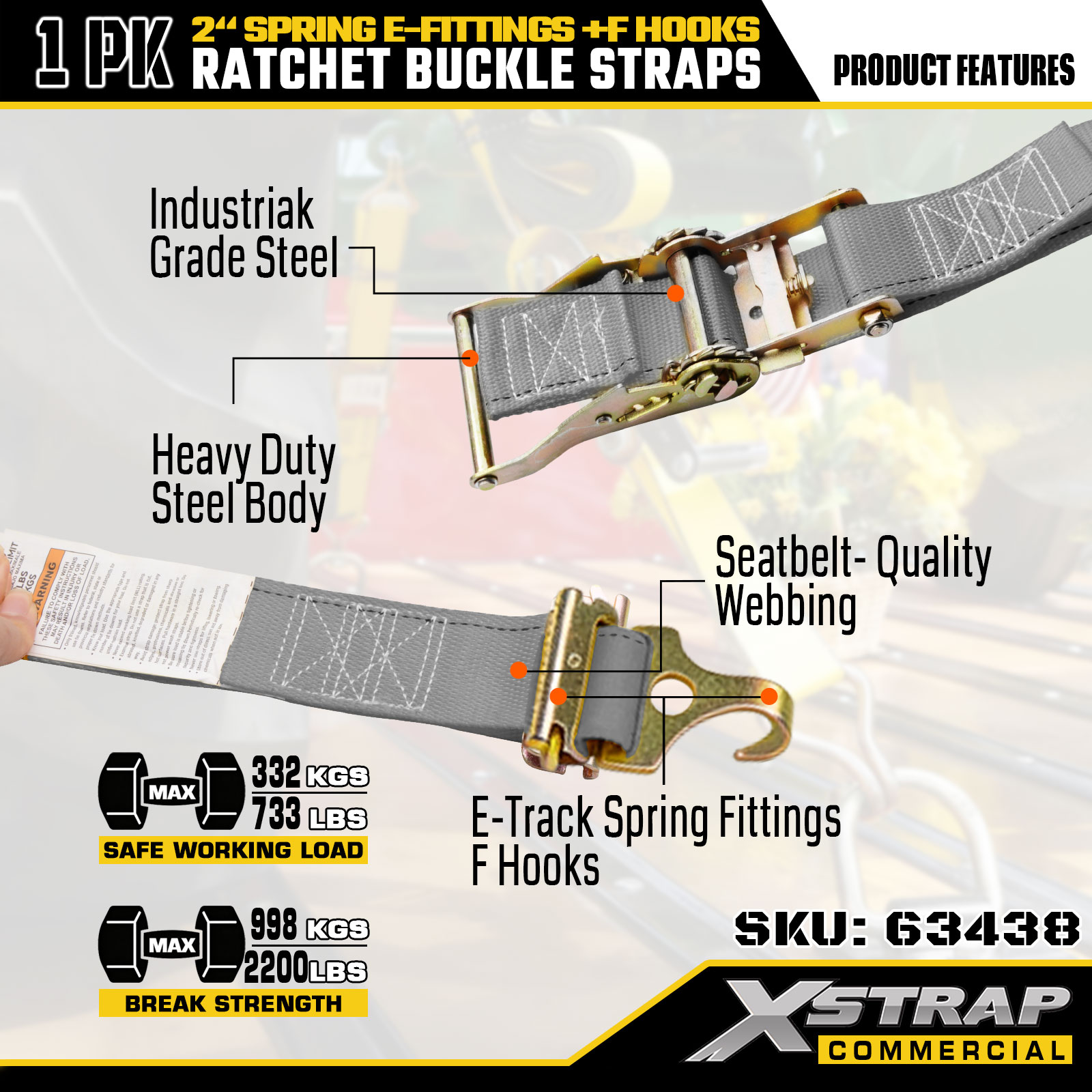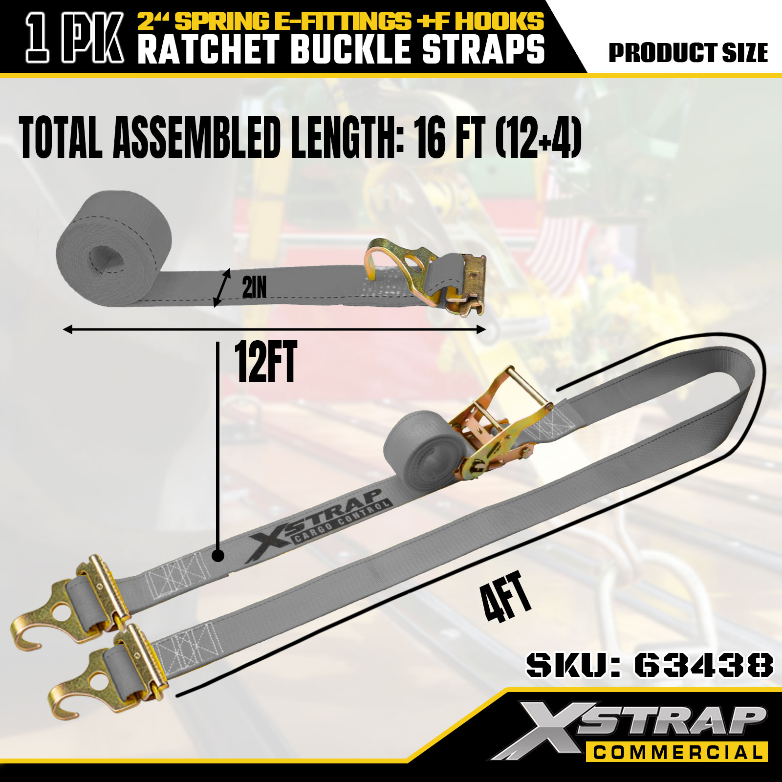 Xstrap 1 Pack Ratchet Tie-Down Straps 2" x 16' Polyester cum Ver E-Fittings et F Hooks, 733 libras SGL & 332 libras Fortitudo pro Truck, Moving, Generalis Cargo Transport