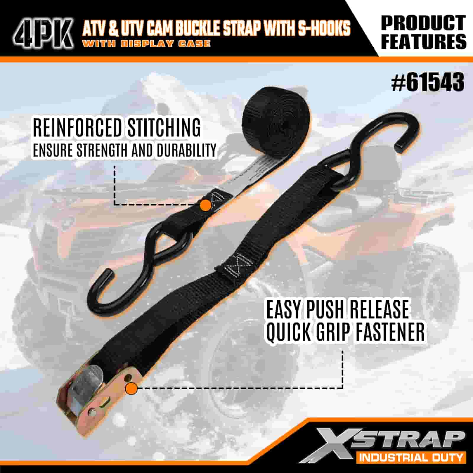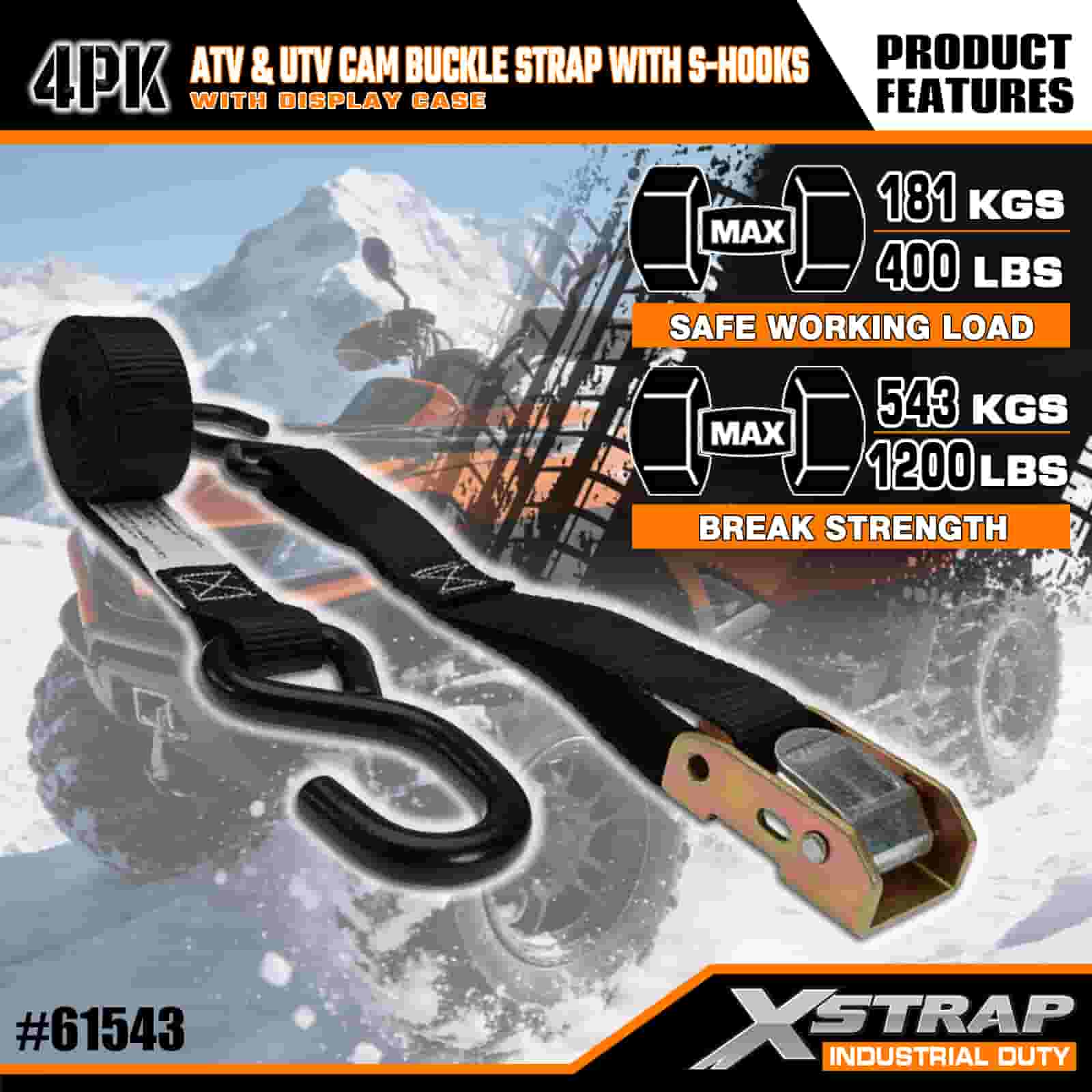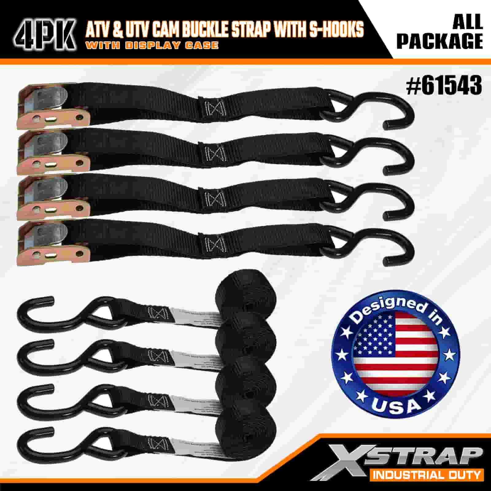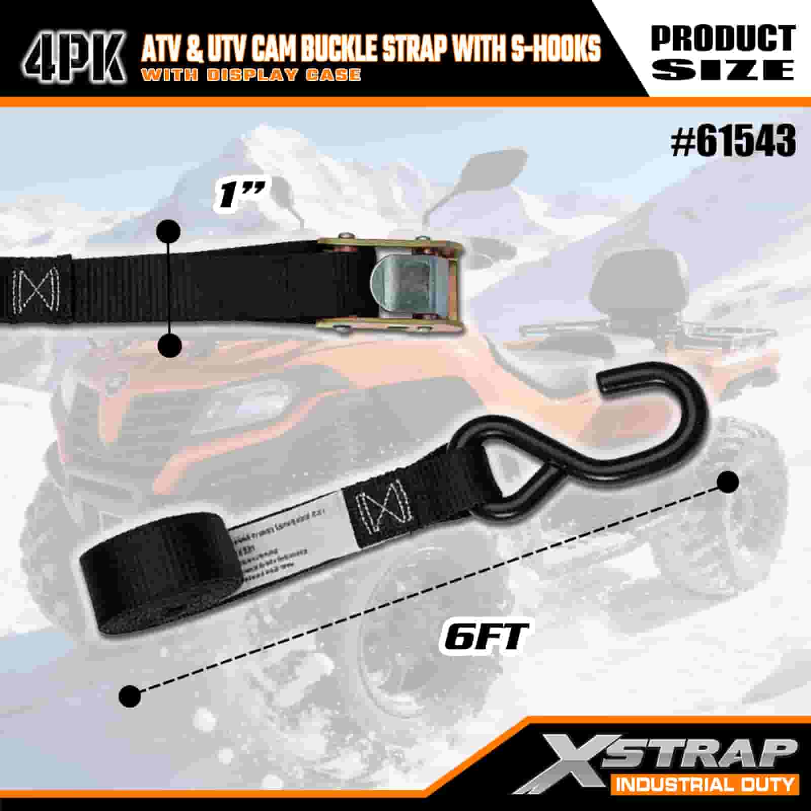 Xstrap 4PK ATV & AUV Cam fibulam cum S Hooks, 1" x 6 Polyester ligamen Strap Pull Ratchet fibula Strap, 400lbs Capacitas Cargo Lashing Securae Straps cum S Hooke Pro Serio Professionali Secure Cargo Trailer, Flat Bed Trailer, Ski cymba, parva car.