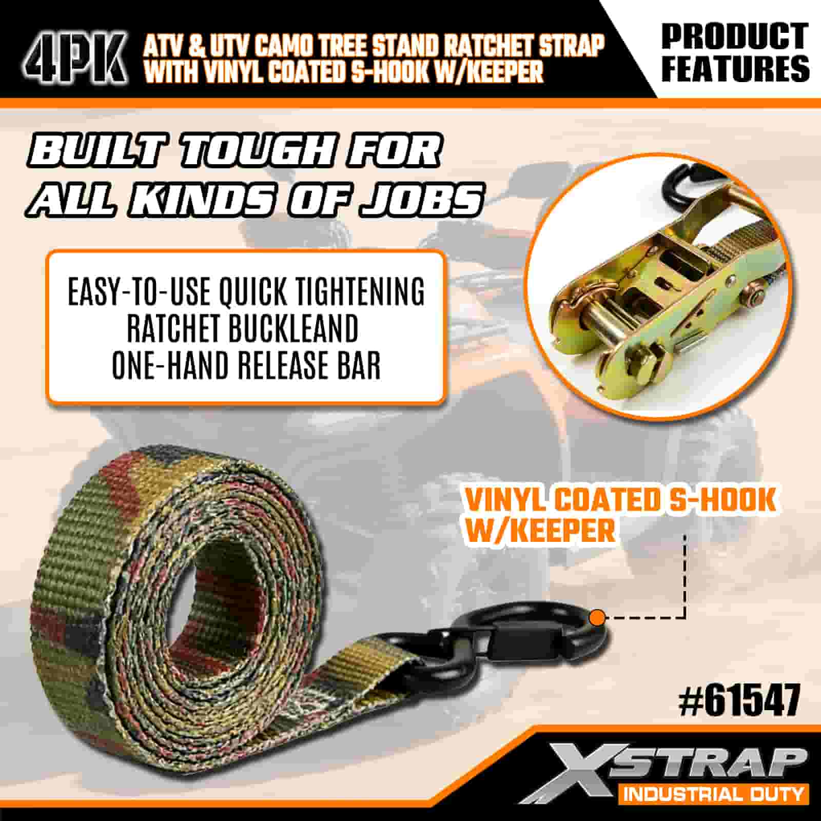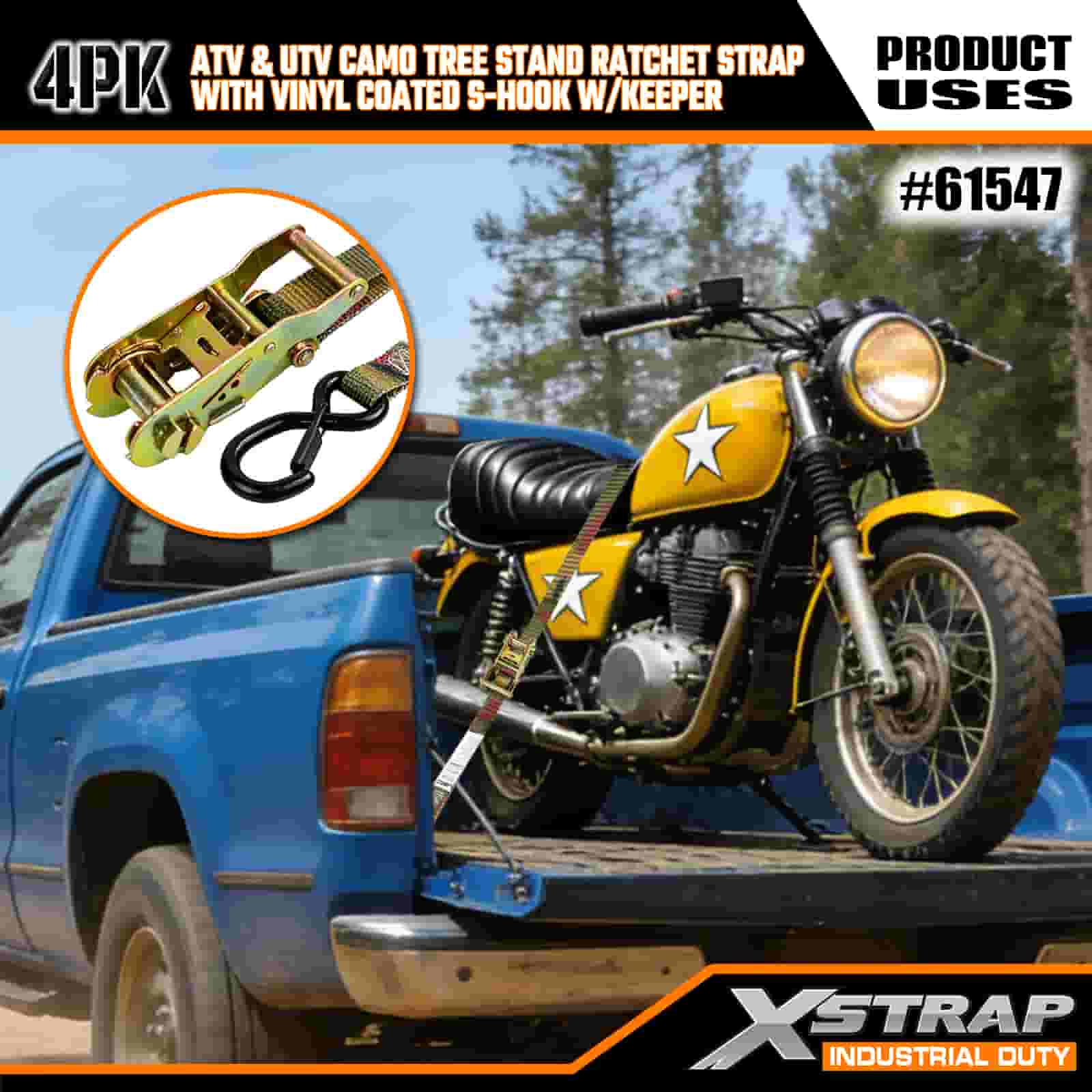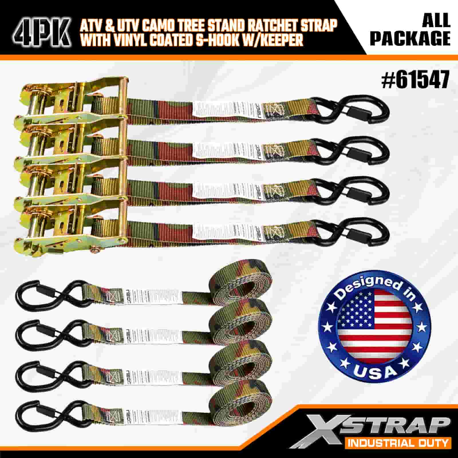 Xstrap 4PK Ratcet Ratchet Strap cum Vinyl Coated Safety S Hooks, 1" x 8' Polyester ligamen Strap Ratchet Strap, 400lbs Capacitas Cargo Lashing Securing Straps with Safety Hooks for Trailer, Flat Bed Trailer Ski cymba, car parvus, gravis apparatio.