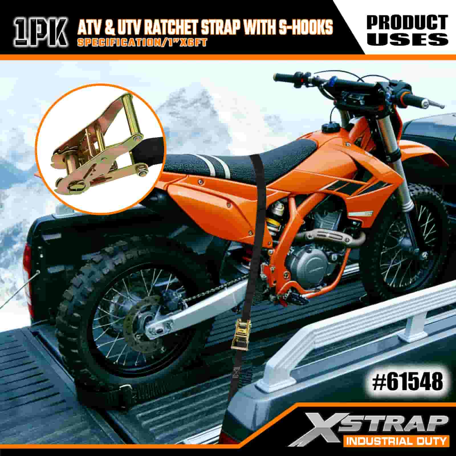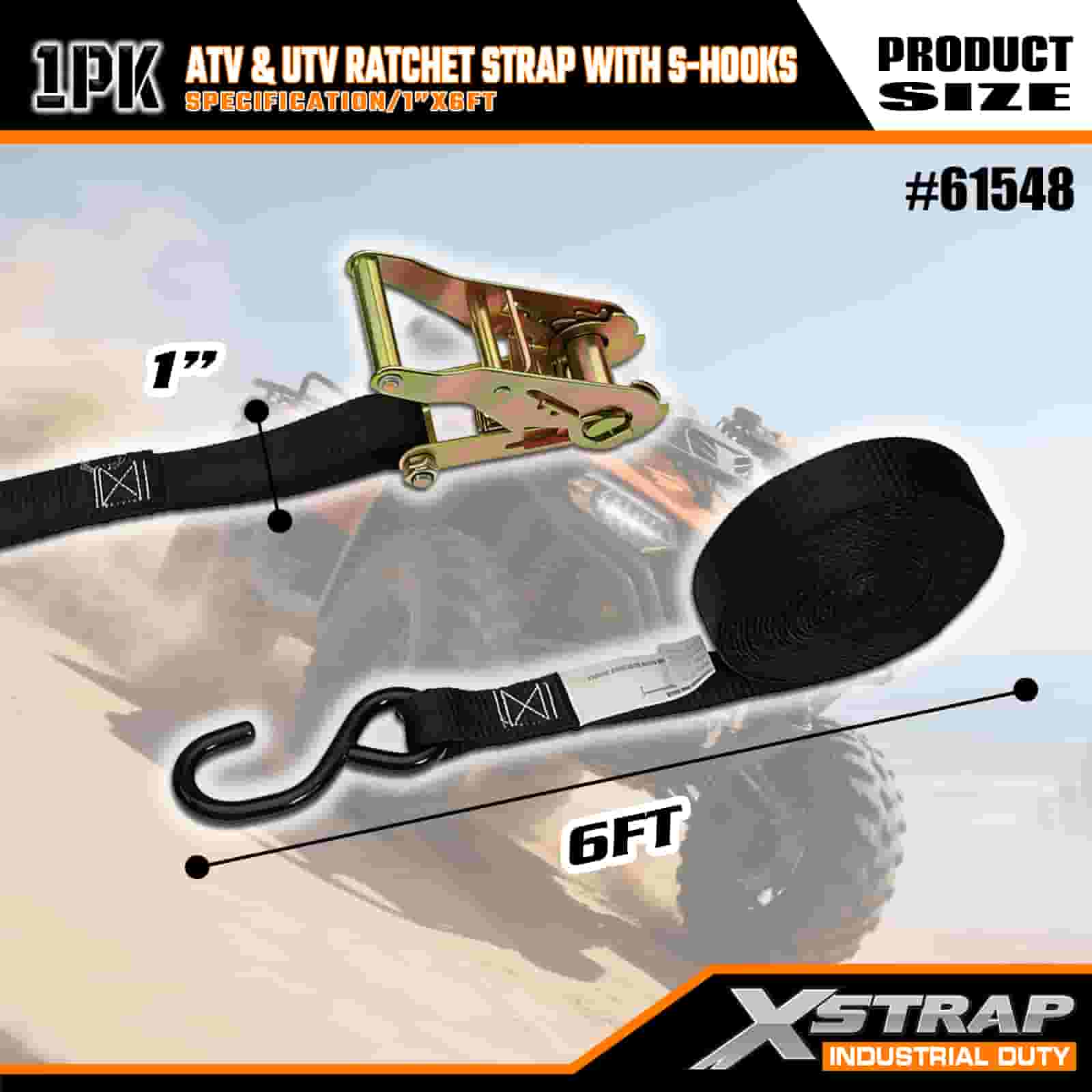1" x 6" ATV & AUV Ratchet Strap cum S Hooks