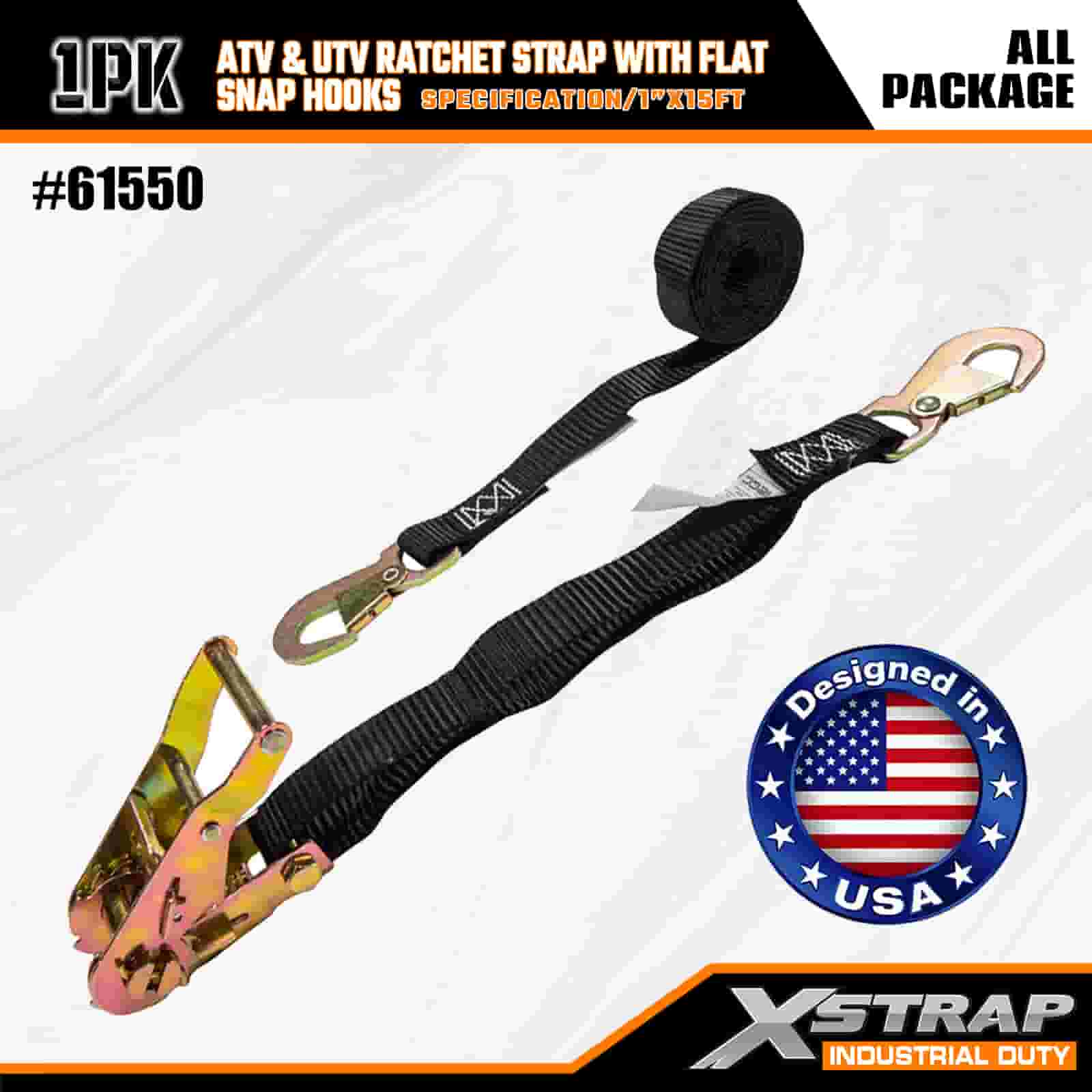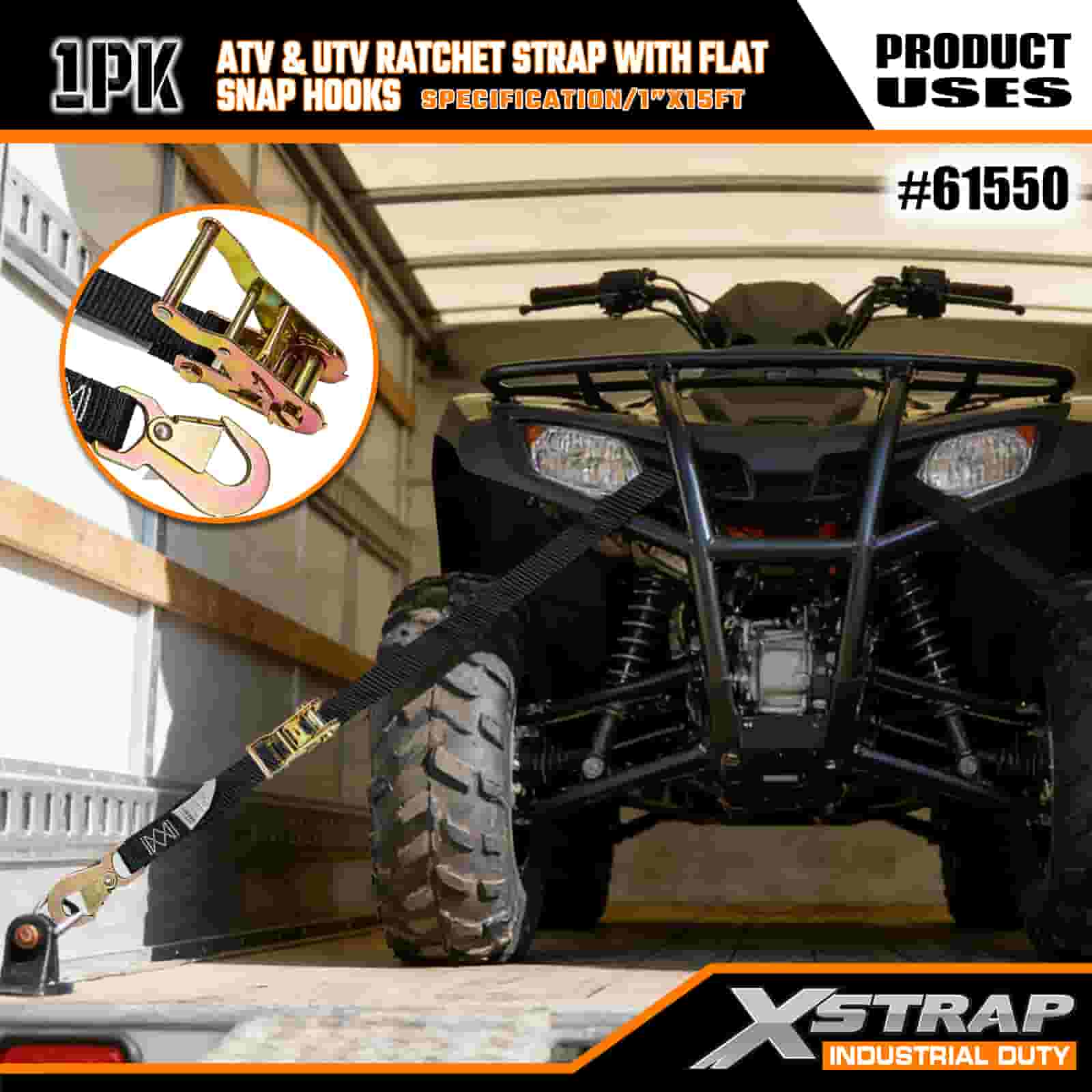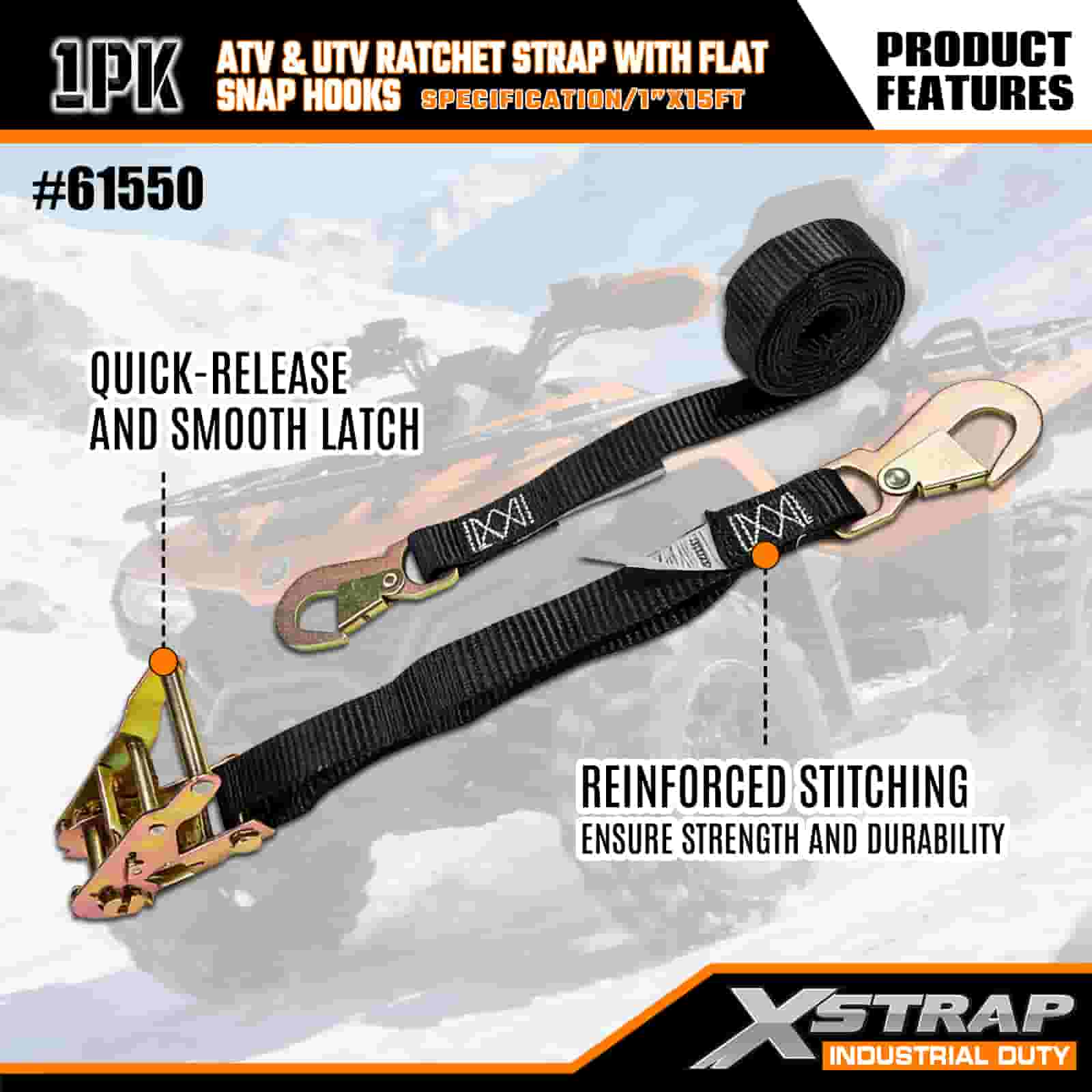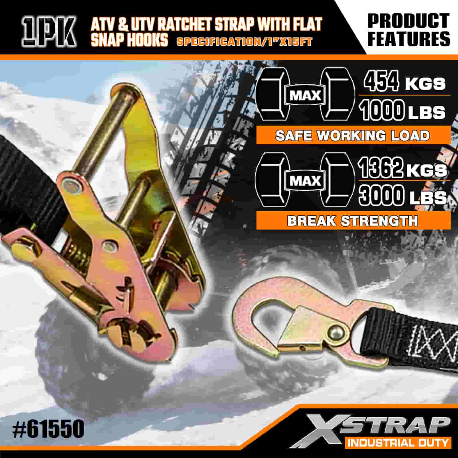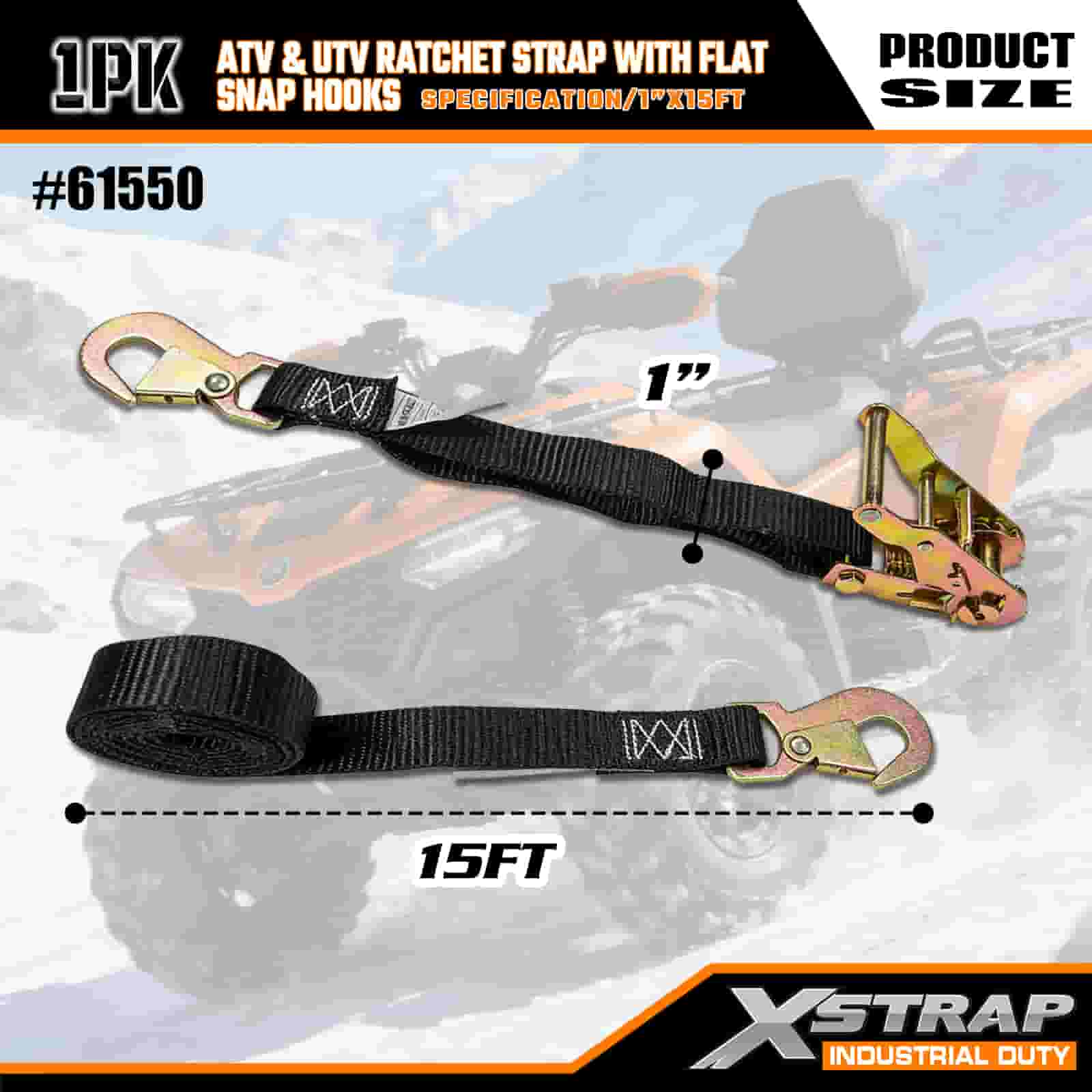 Xstrap ATV & AUV Ratchet Strap cum Flat Snap Hooks, 1" x 15' Polyester ligamen Strap Ratchet Strap, 1000lbs Capacitas Cargo Lashing Securus Straps cum Flat Snap pro Trailer, Flat Bed Trailer Ski cymba, car parvus, gravis apparatio.