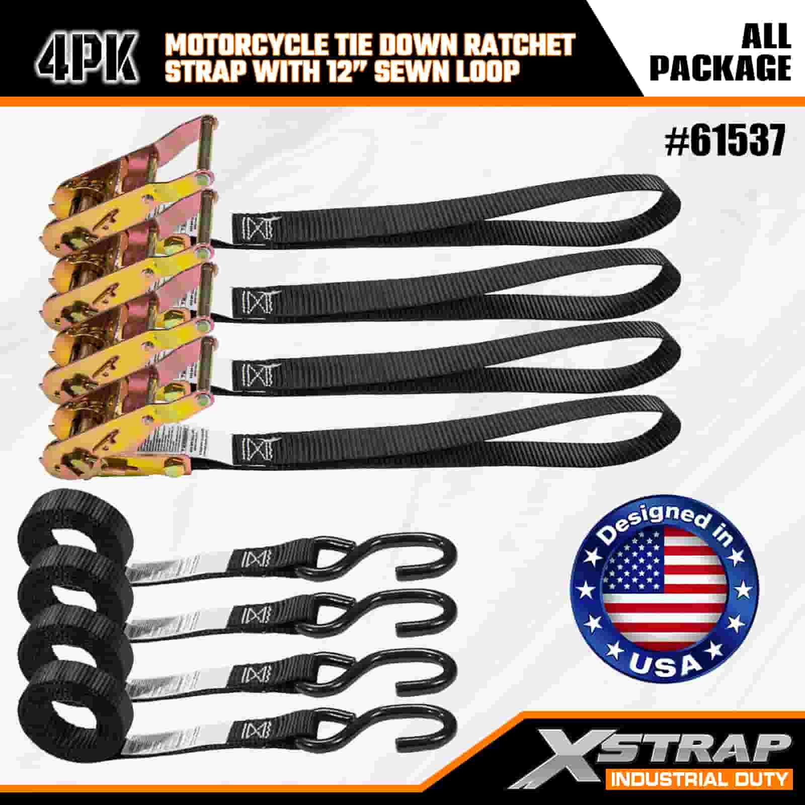 1" x 6' 4PK Motorcycle Ligamentum Ratchet Stramentum cum 12" Sewn Loop