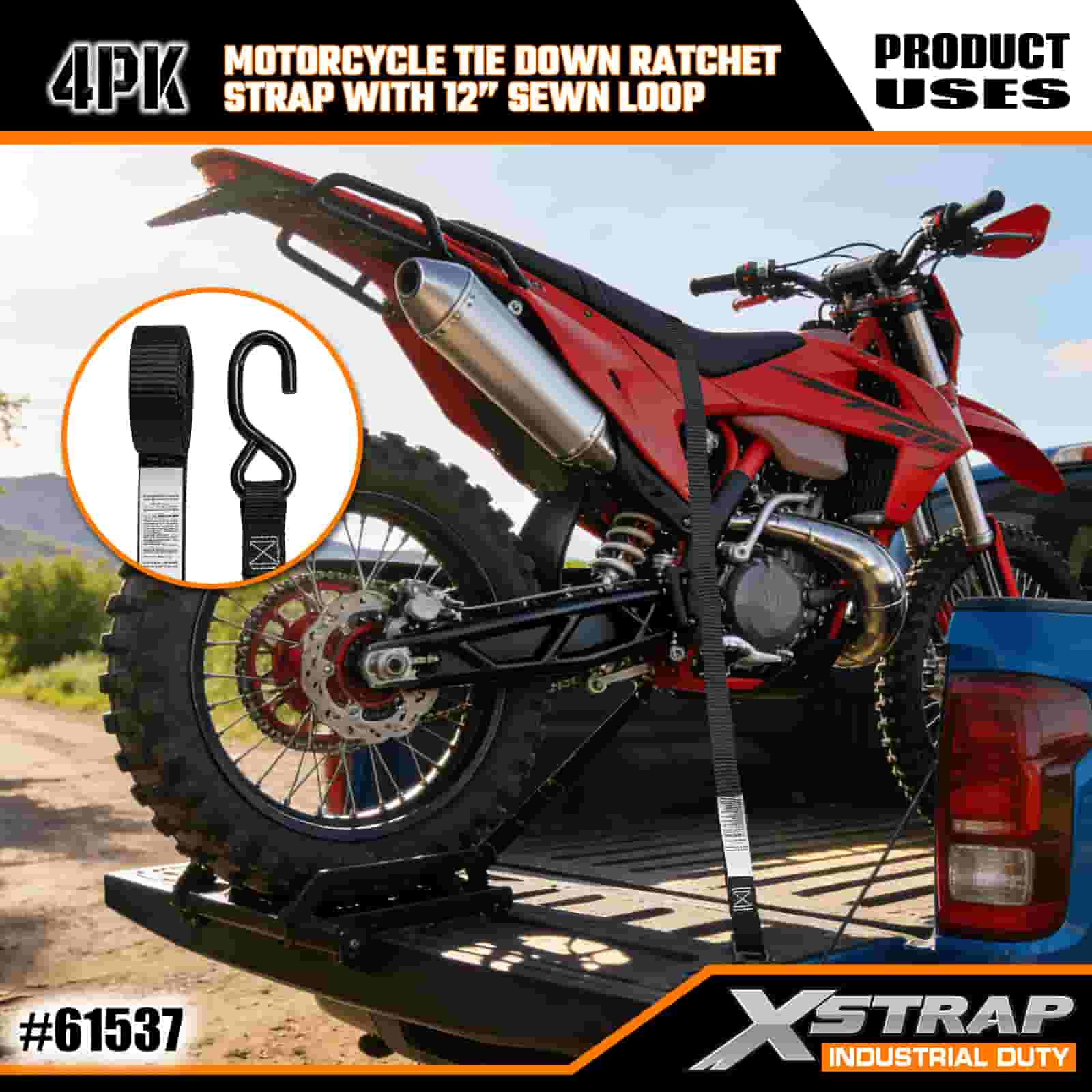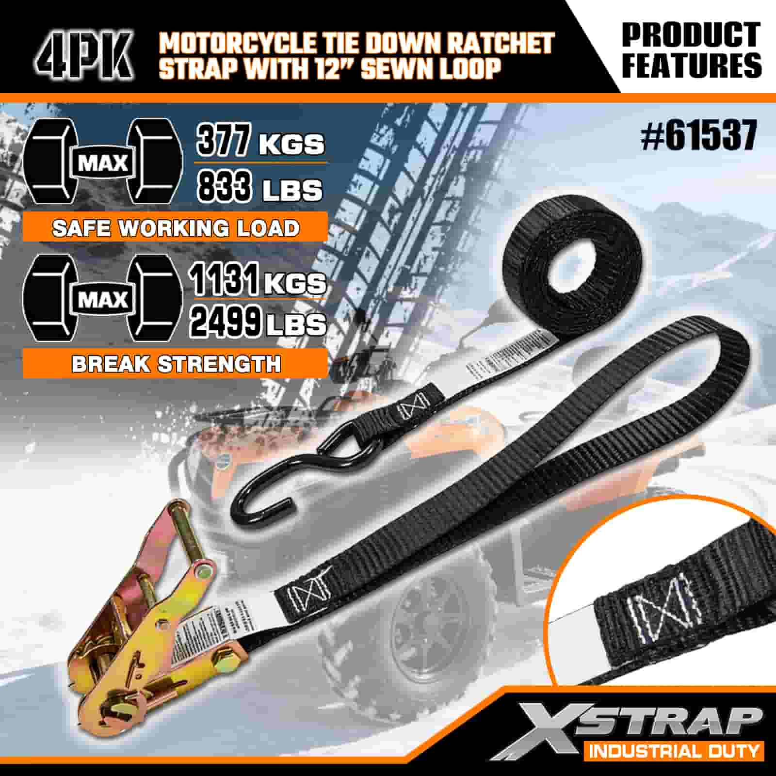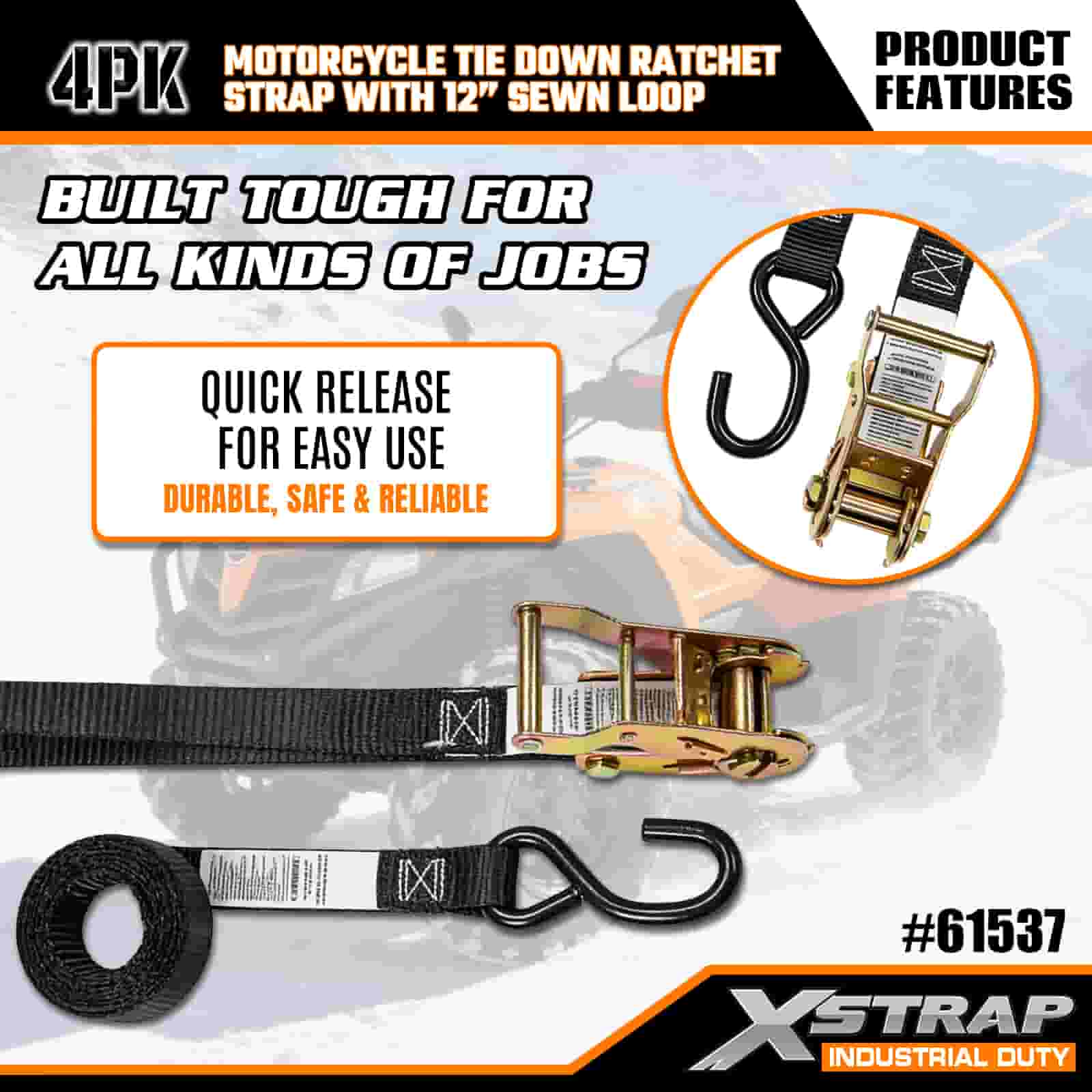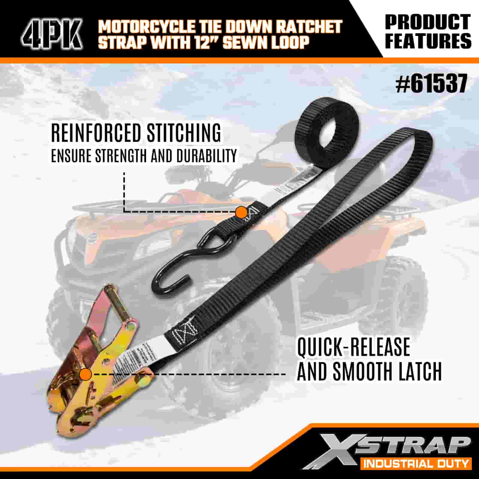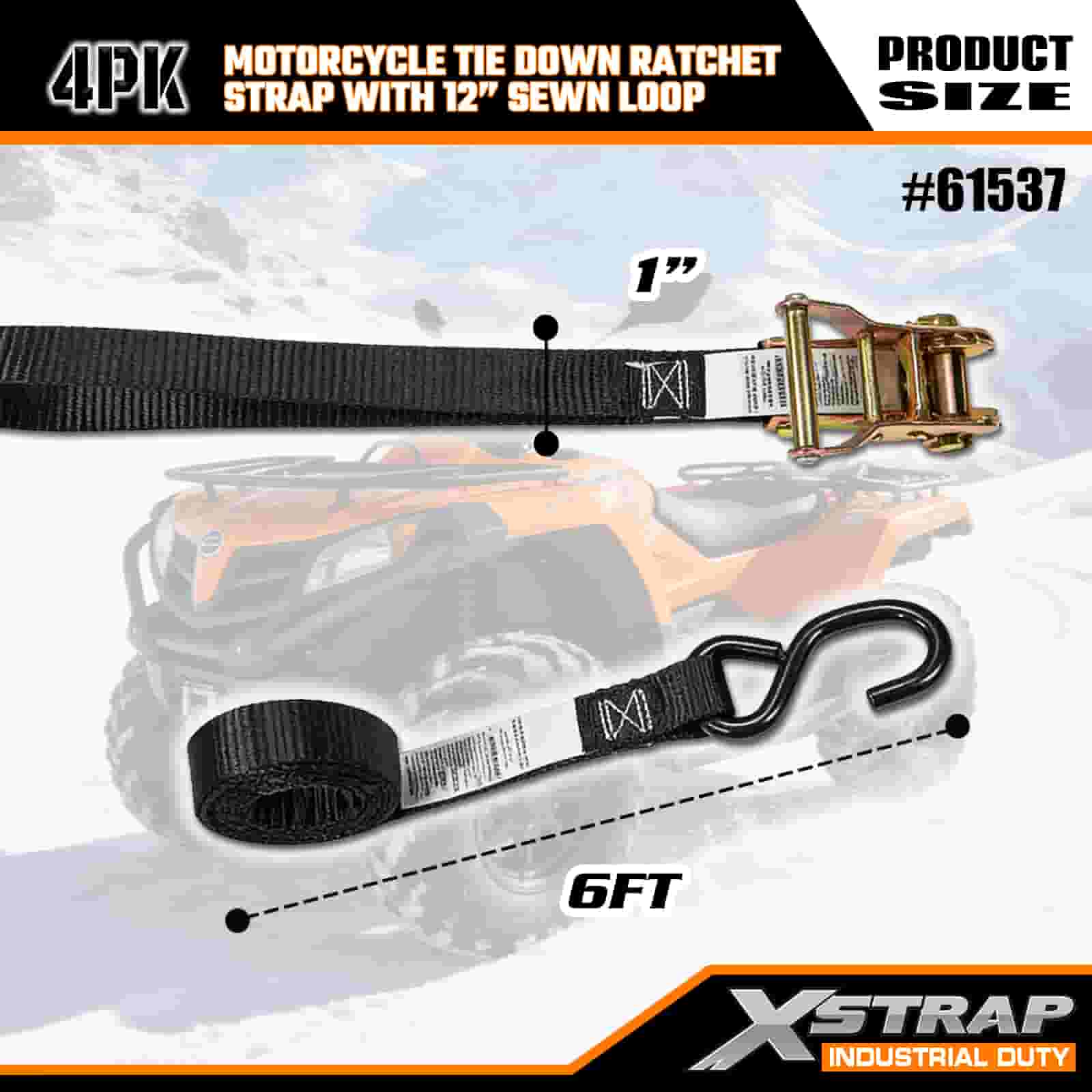 - 4-Pack 6FT Straps pro Motorcycle Ligo-Down: Sold as a 4-lorum set (1 inches wide 6 feet long), ideal pro motorcycles, ATVs, and small gear in truck bed or during transport.