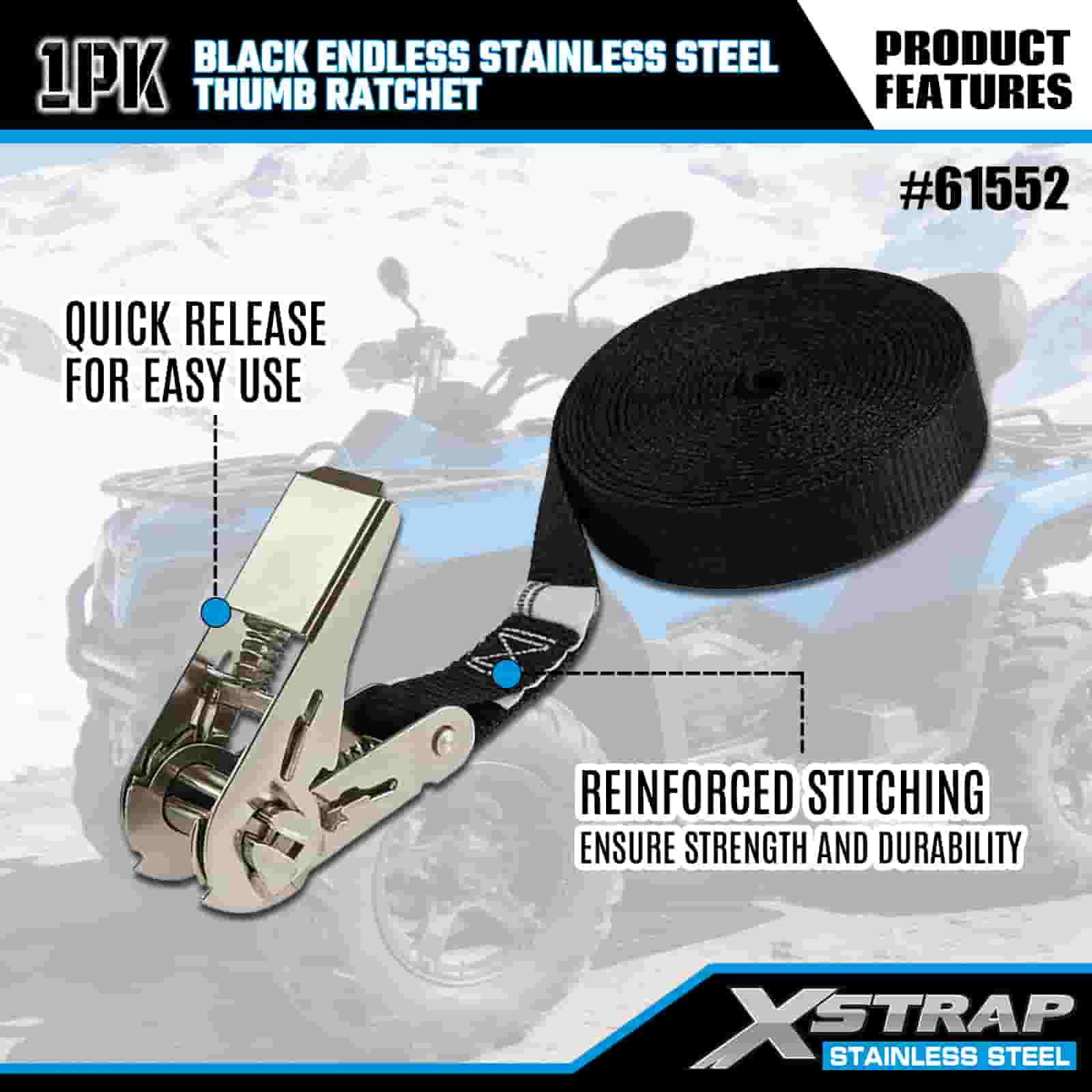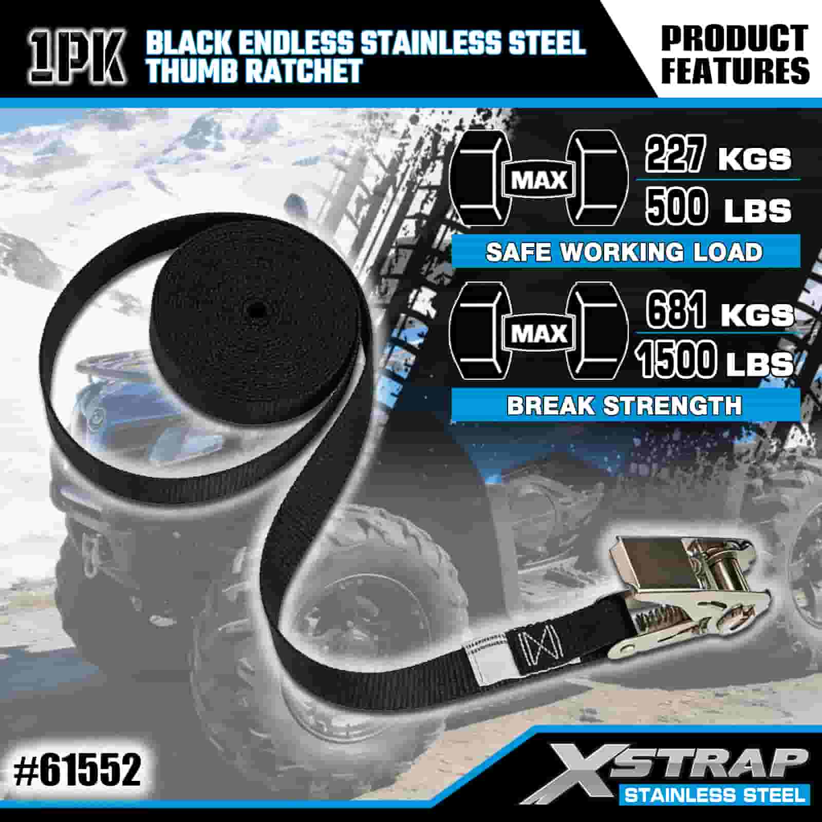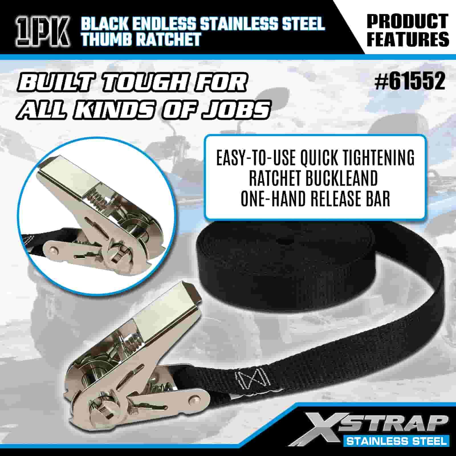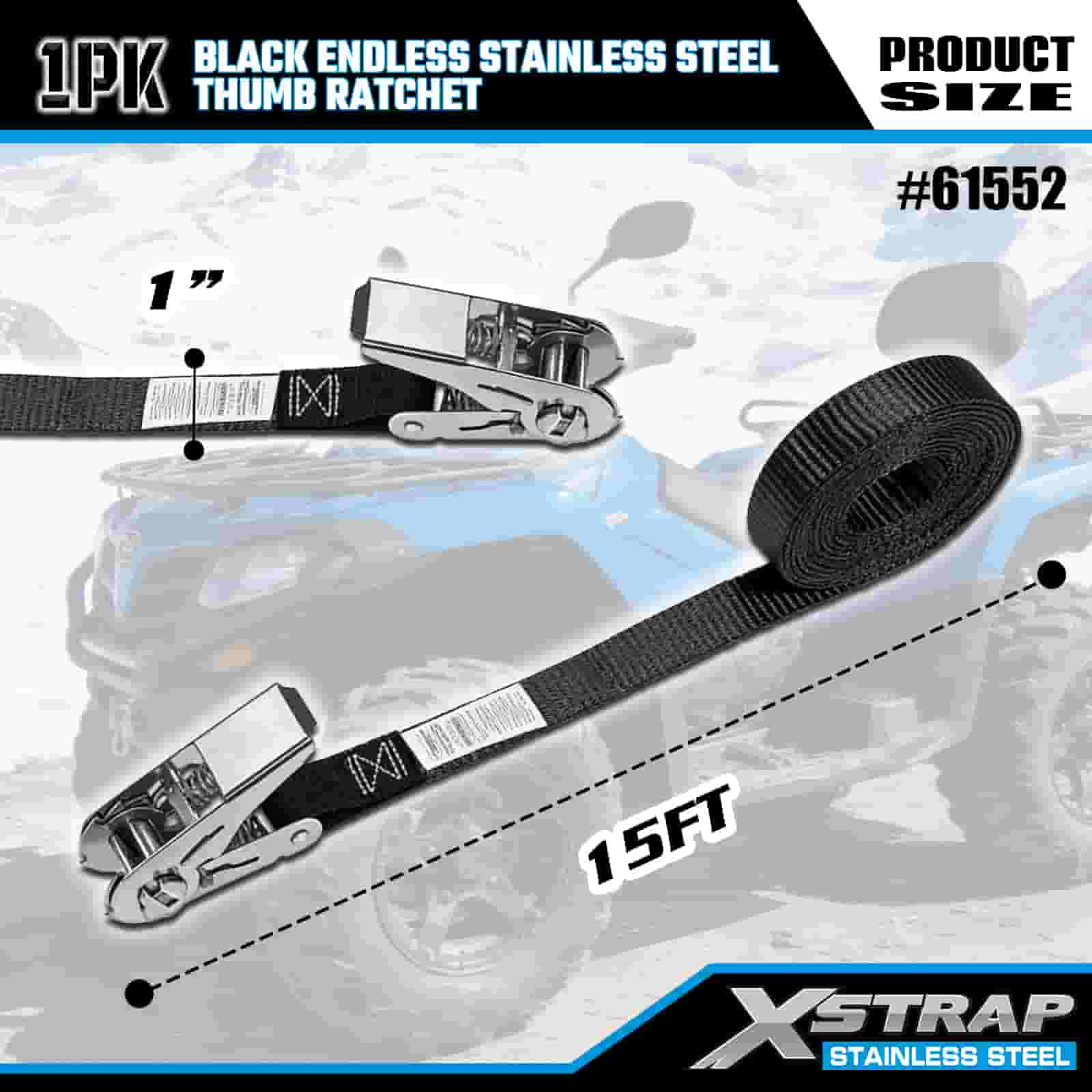 Xstrap Nigrum Immensum Steel Thumb Ratchet, 1" x 15' Polyester ligamen Strap Ratchet Strap, 500lbs Capacitas Cargo Lashing Securus Straps pro Trailer, Flat Lectus Trailer Ski cymba, Car parvum, Equipmentum grave.