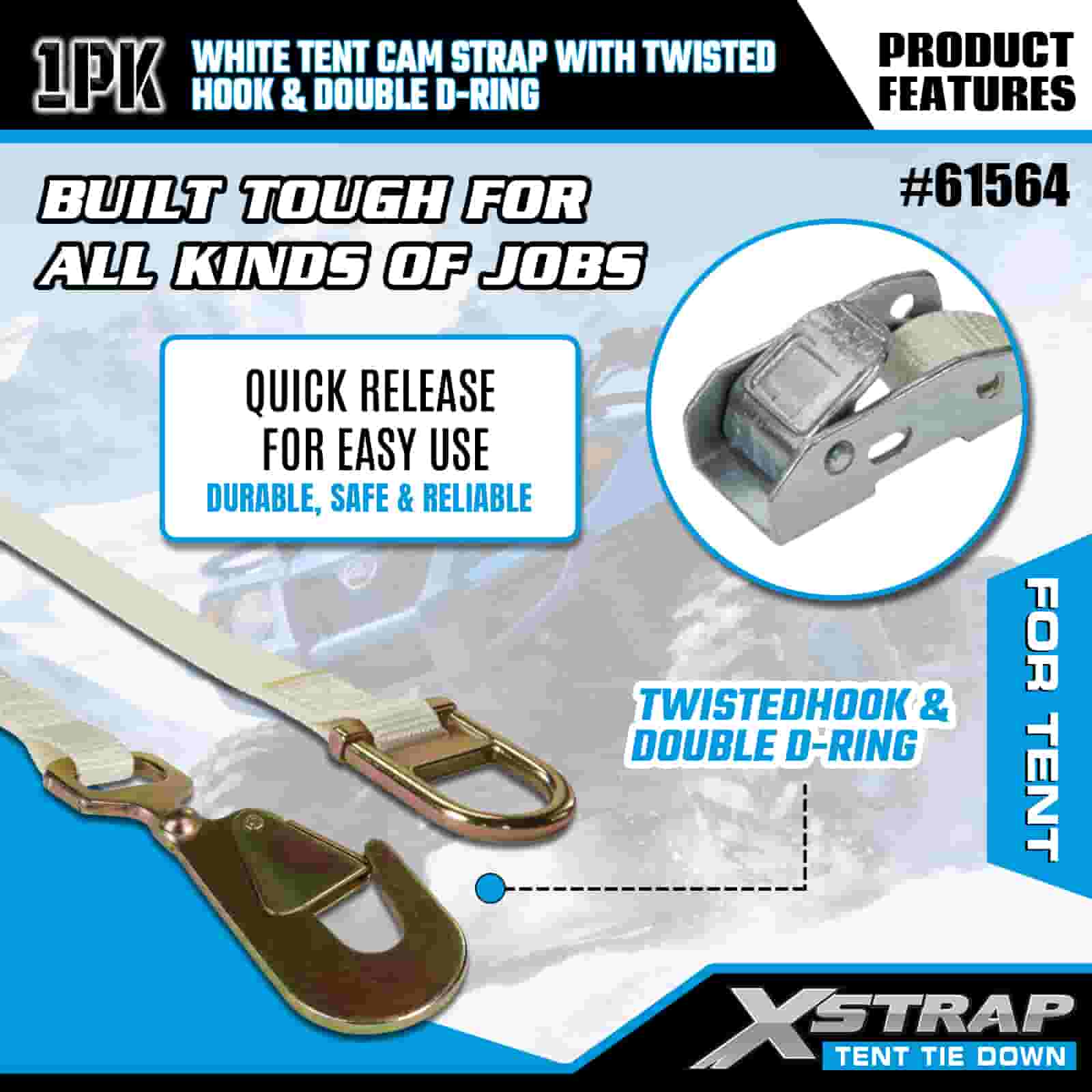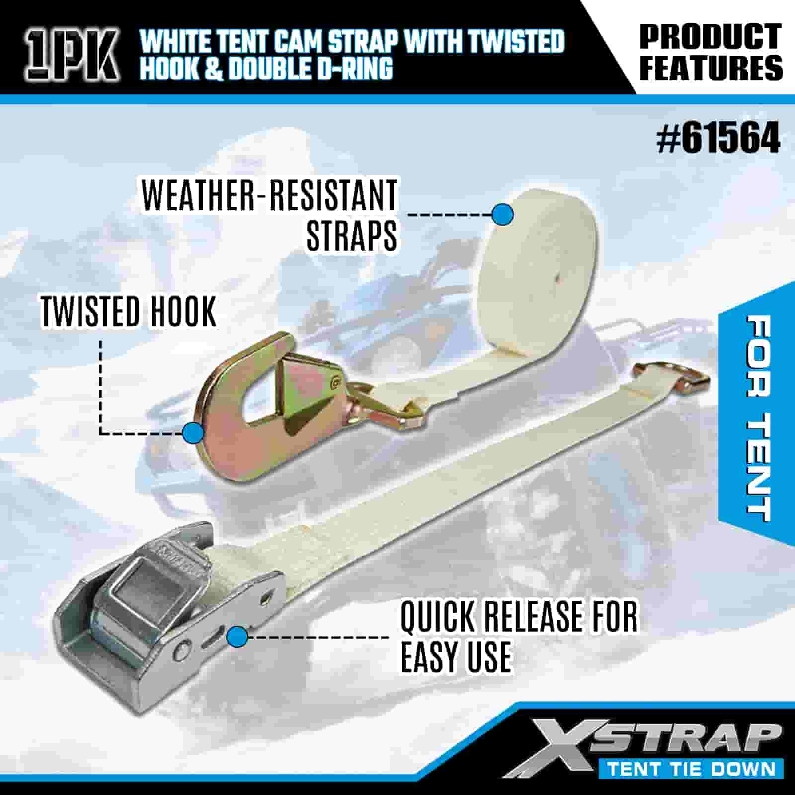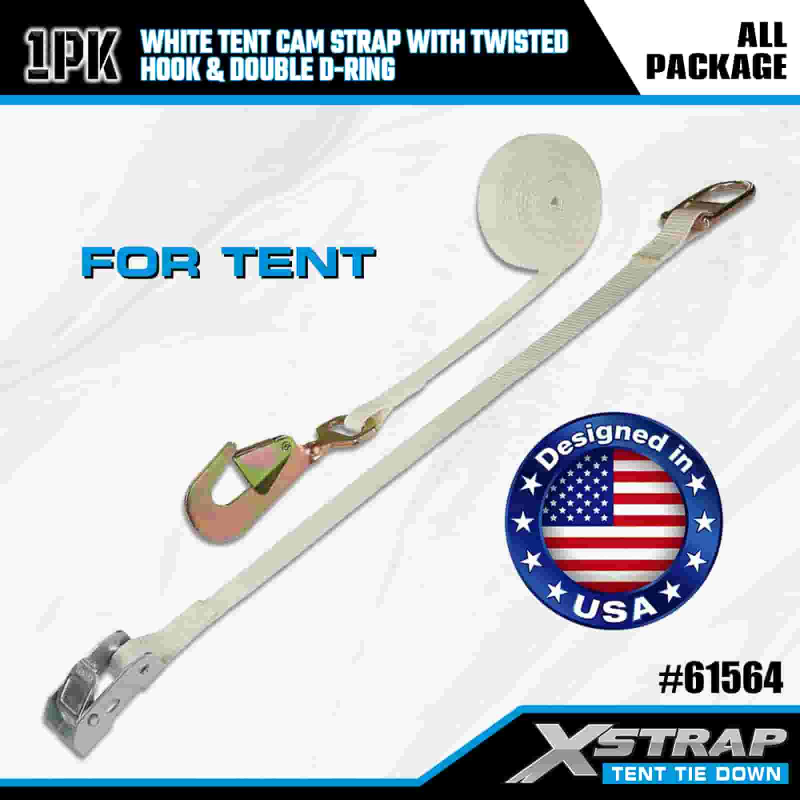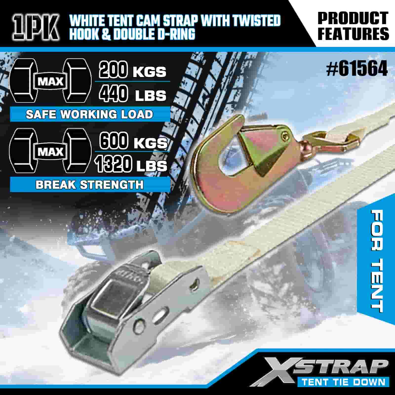 Xstrap White Tent Cam Strap cum Twisted Hook et Double D Ring, 1" x 15' Polyester ligamen Strap Ratchet Strap, 440lbs capacitas Cargo Lashing Securing Straps with Hook torta et Duplex D Ringo pro Cargo Imperium, Tentorium fixation.