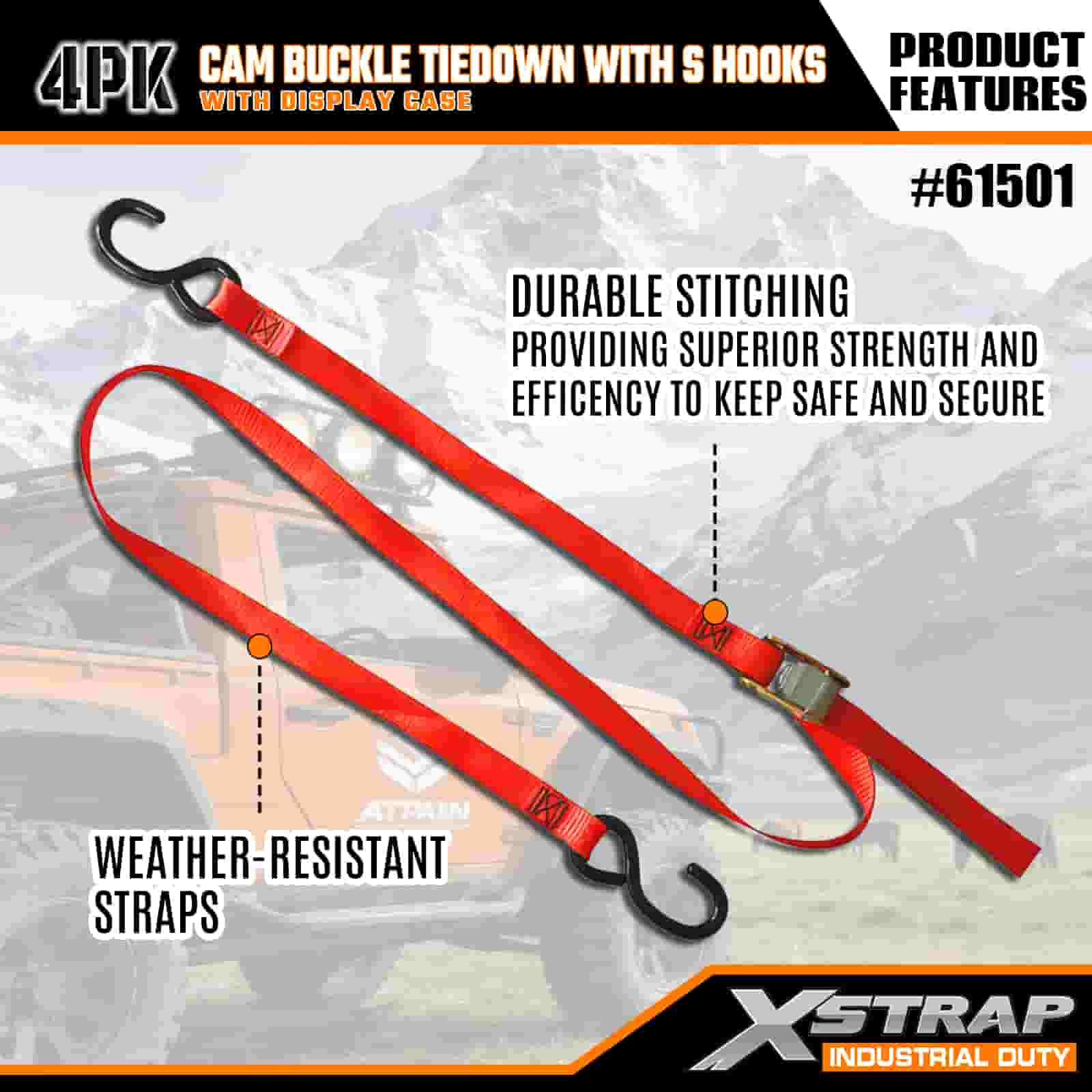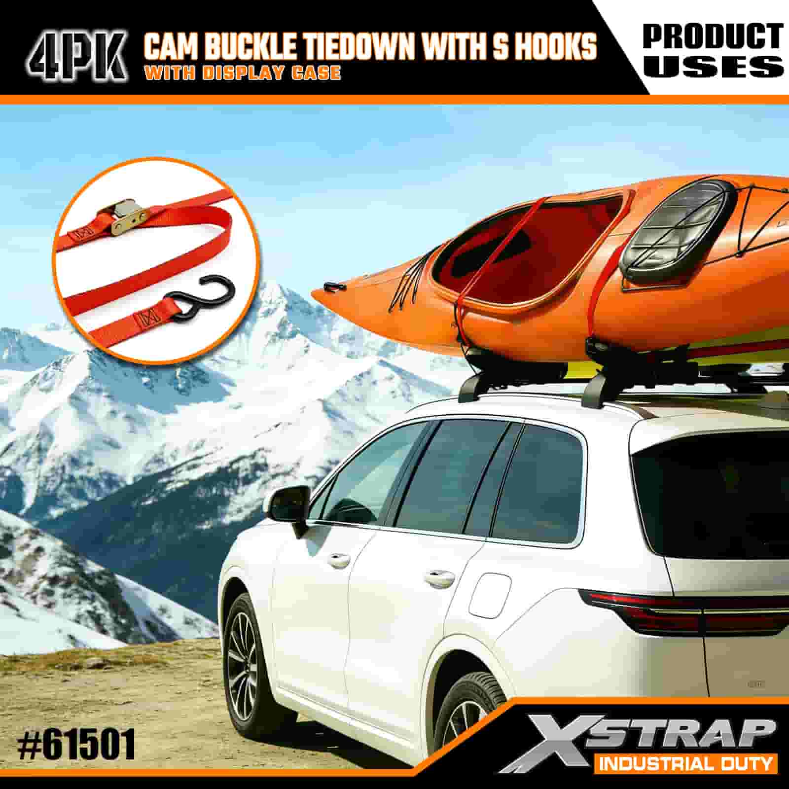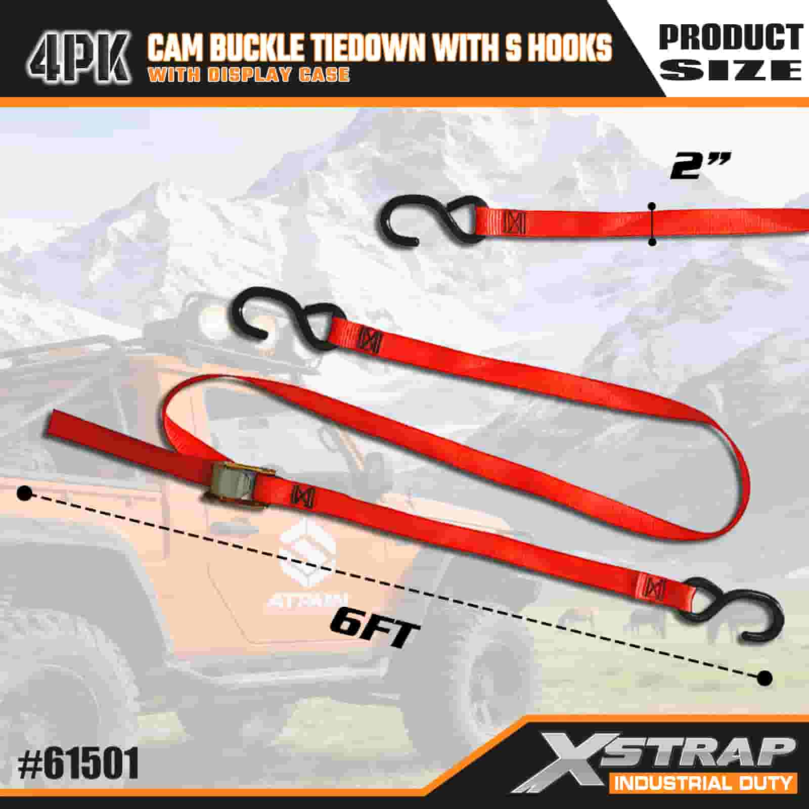 - Practical 4-Pack cum Casus Ostentatione: Sold in 4 (cum ostentatione fasciculi) ad usum massae, et quodlibet corrigiam mensuras 2 pollices latis × 6 pedes longum, quod est specimen ad comparandas res sicut kayaks, calces velit, vel merces.