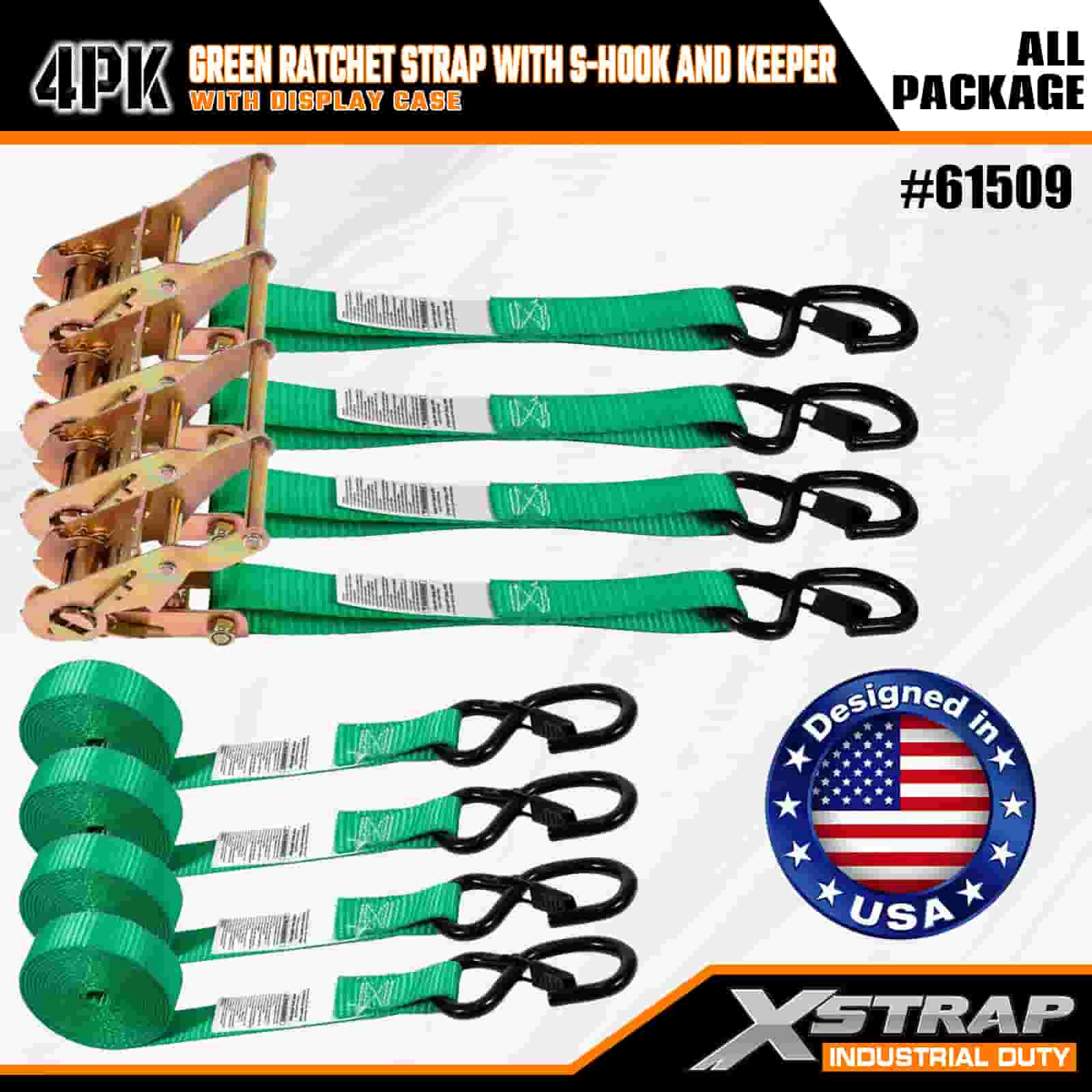 1" x 15' 4PK Ratchet Strap cum Salutis S Hooks