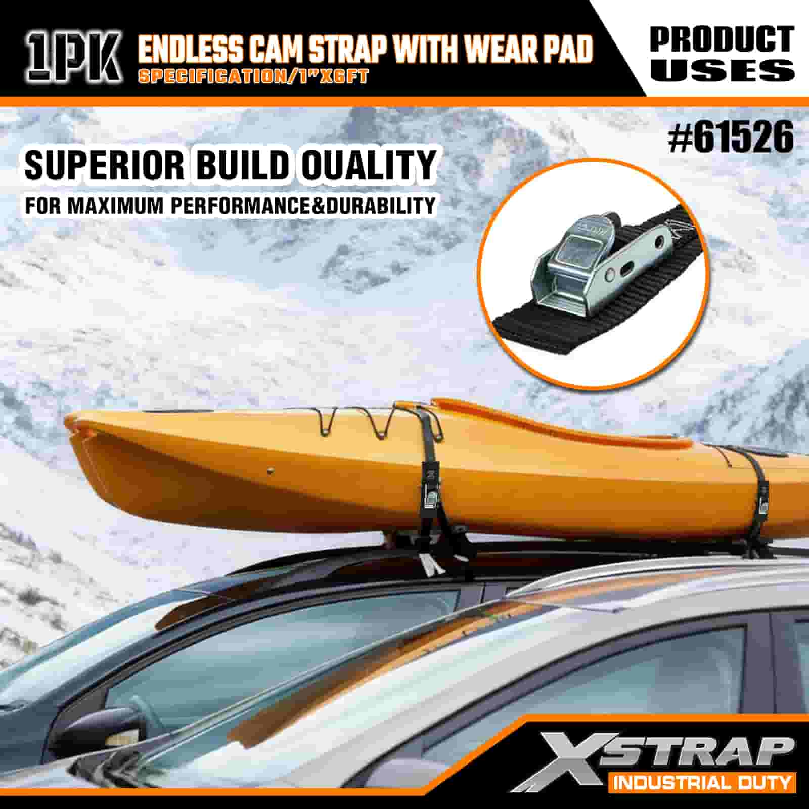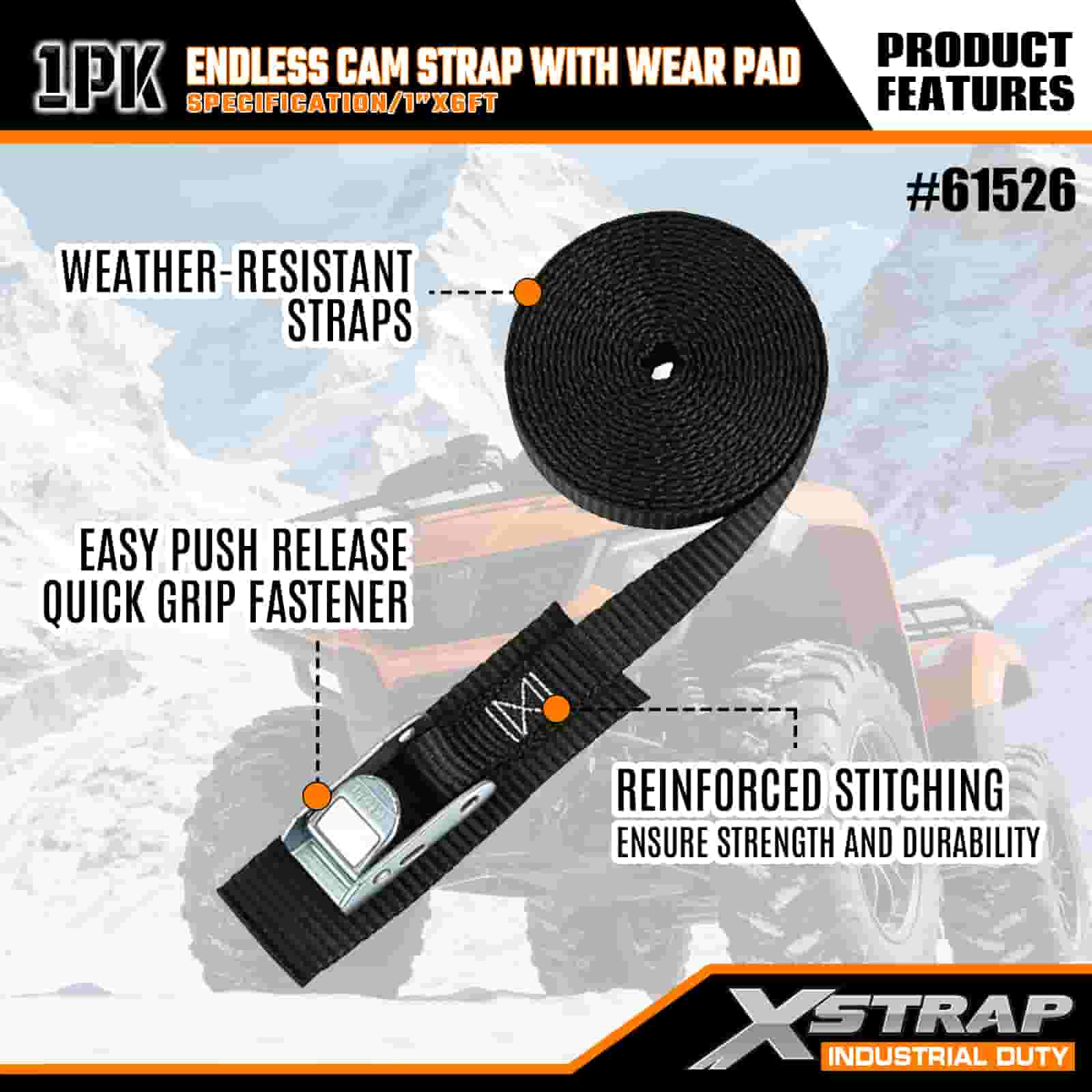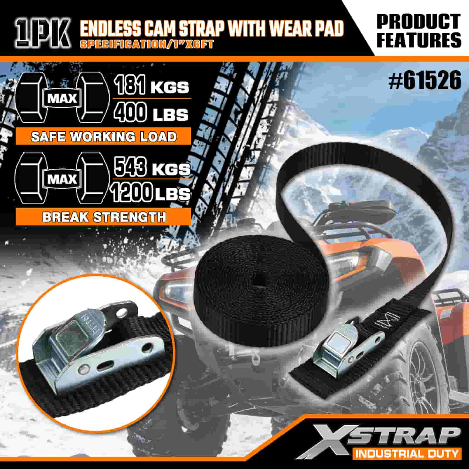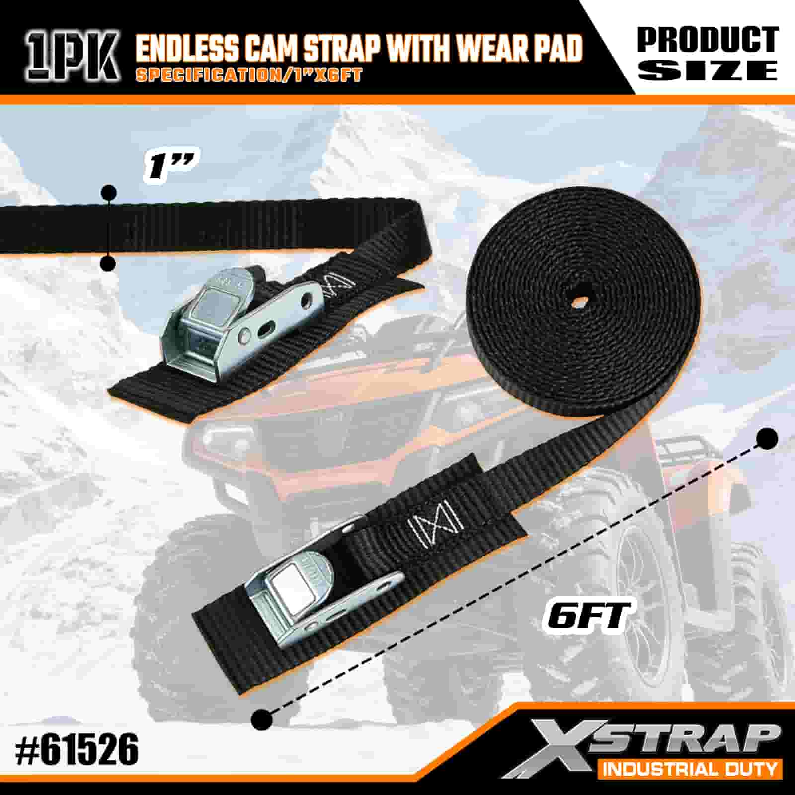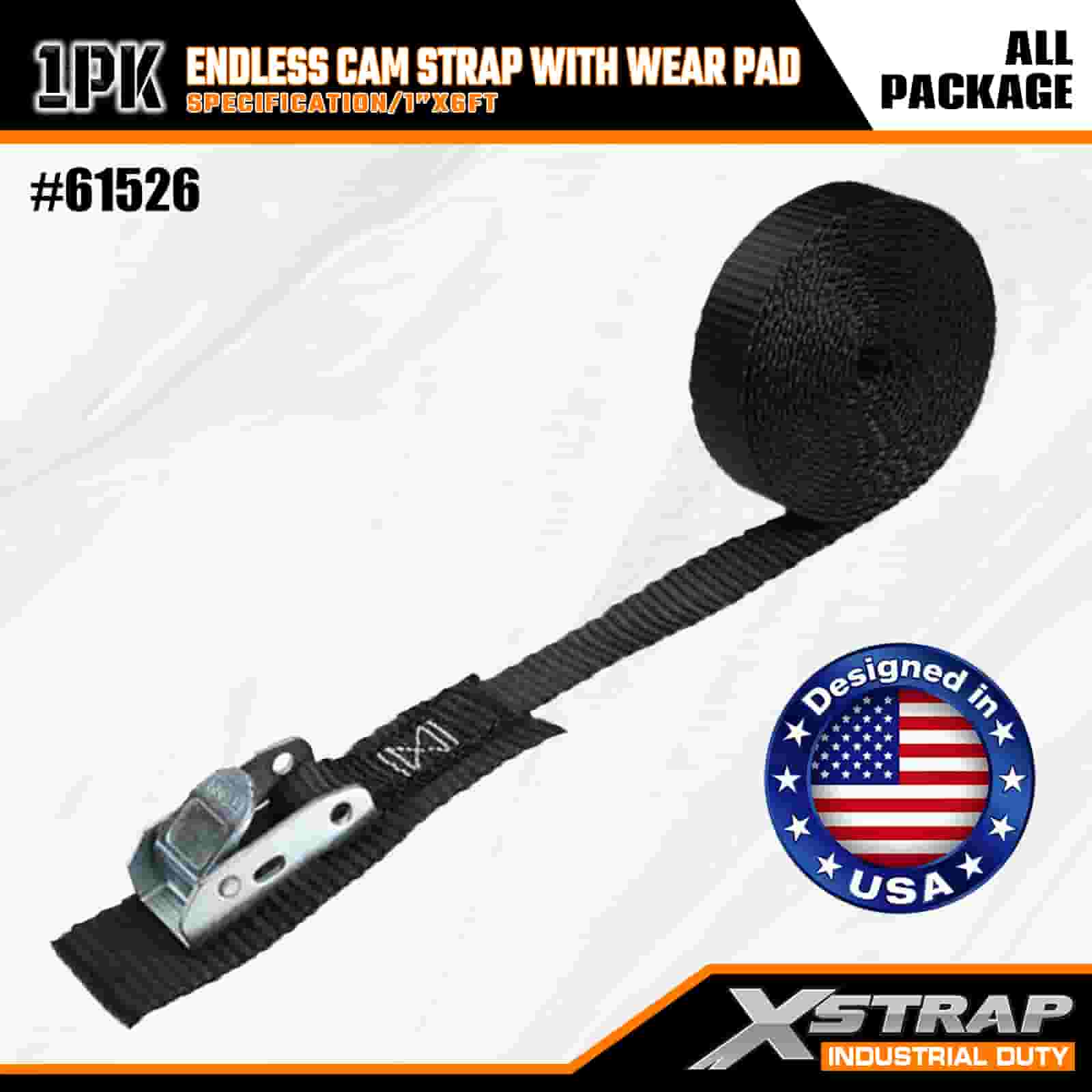 Xstrap Endless Cam Strap cum gere Pad, 1" x 6' Polyester ligamen Strap Pull Cam Buckle Strap, 400lbs Capacitas Cargo Lashing Securing Straps pro Graves Professional Secure Cargo Trailer, Flat Bed Trailer, Ski Boat, Small Car.