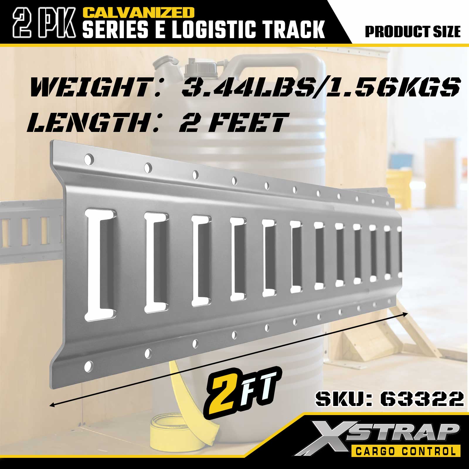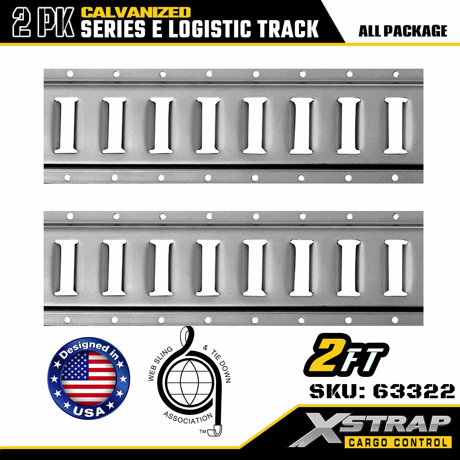 Xstrap 63322 2ft Electroplated Silver E-Type Cargo Rail - 12- Gauge Steel with Galvanized Coating, 6000LBS Load Rating, 2PK for