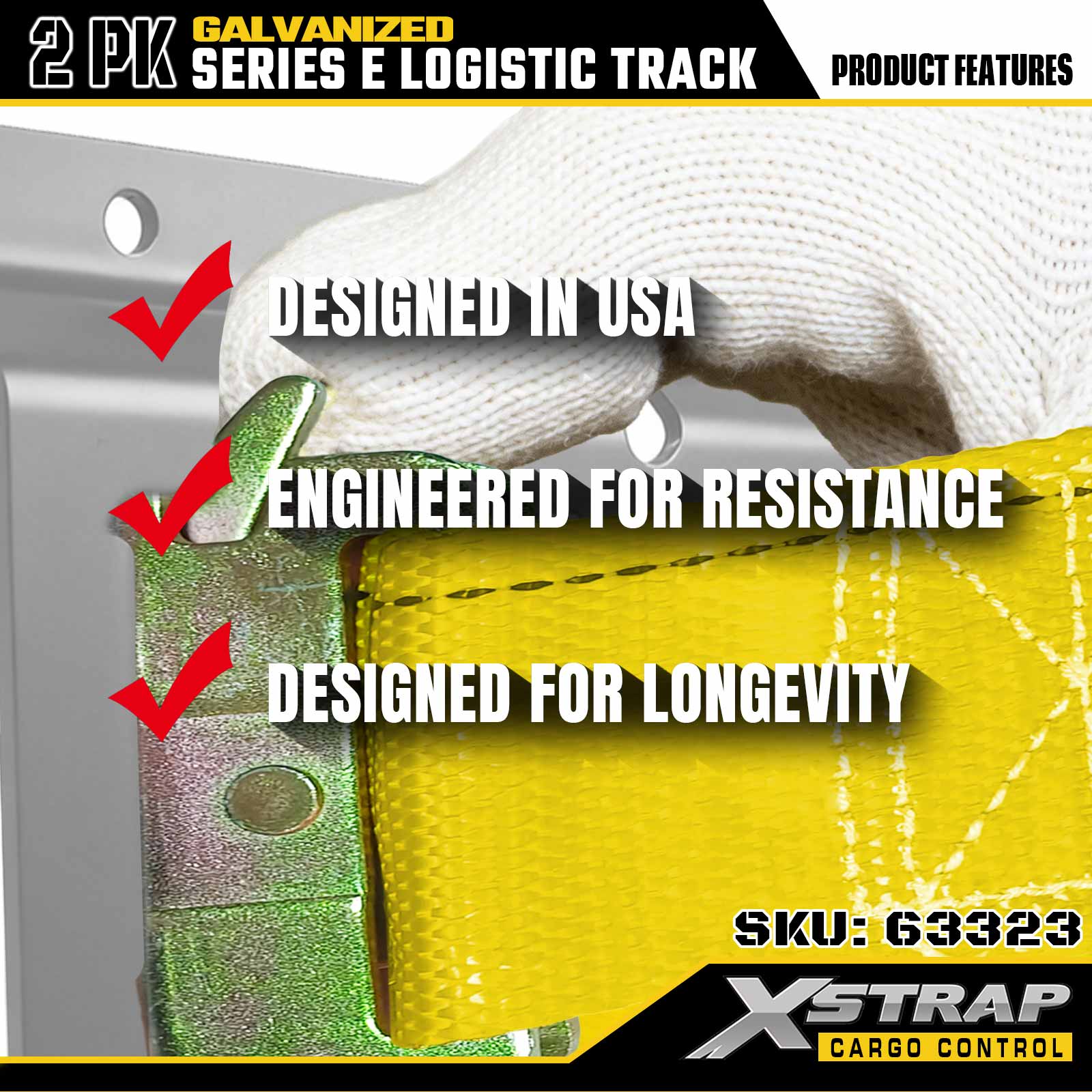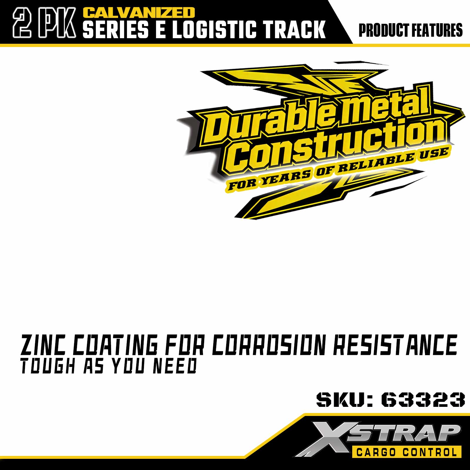 Xstrap 63322 4ft Electroplated Silver E-Track Tie-down Rail - 12- Gauge Steel with Galvanized Perfice, 6000LBS Load capacitas, 2-Pack for Cargo Securing