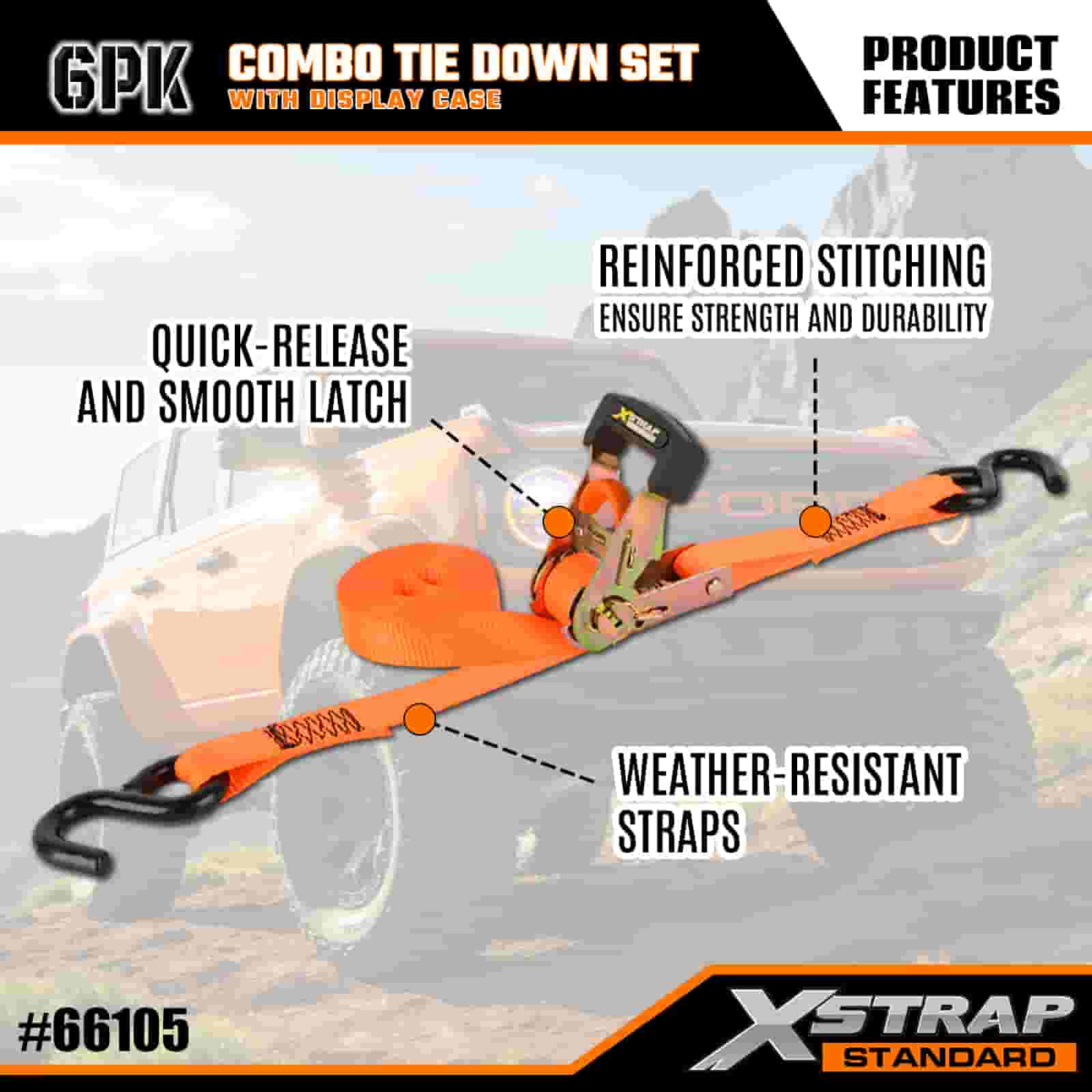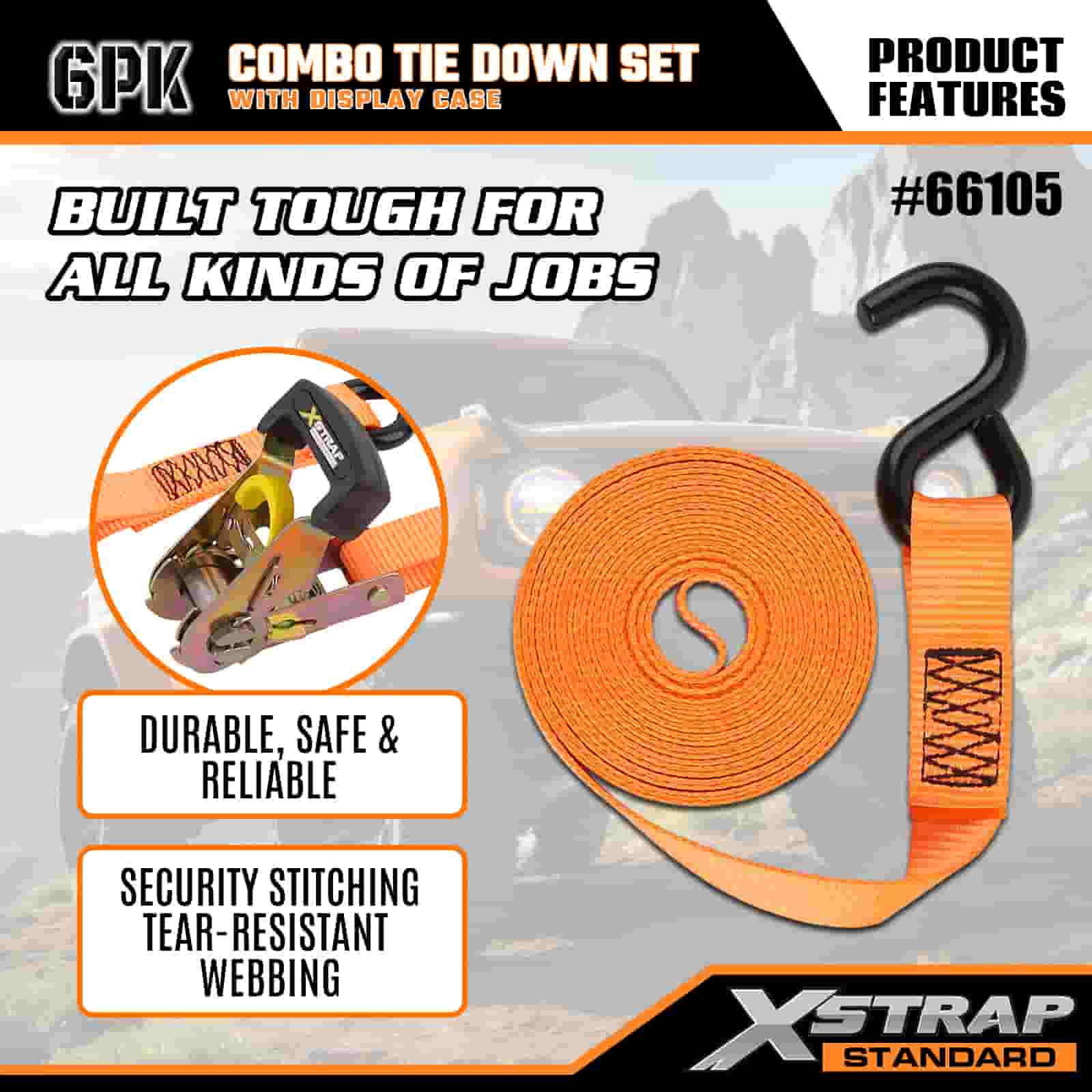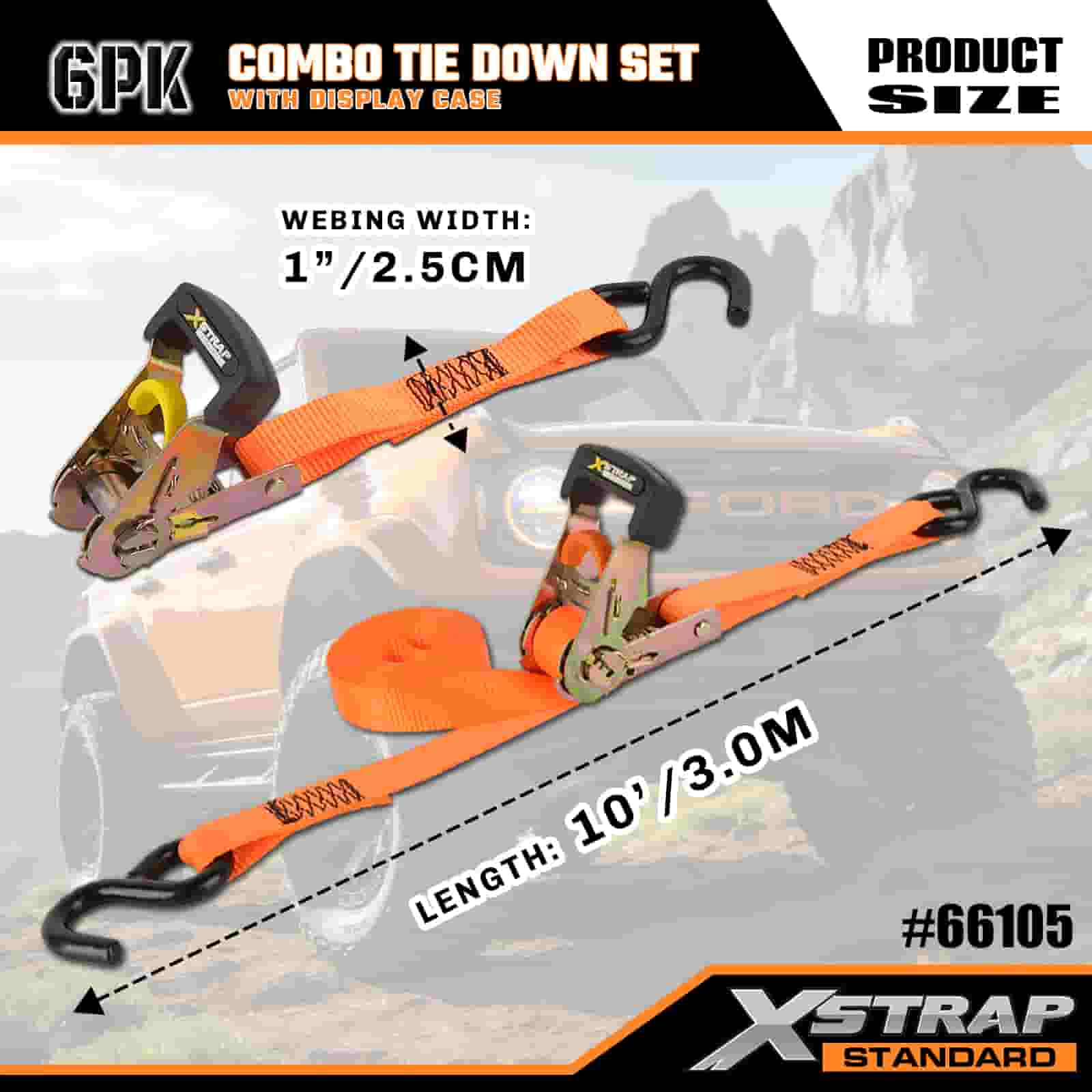 Xstrap 6 Packa Aluminium Ratchet obstringe, 1” x 14’ et 1” x 10 Polyester stringe Strap trahe Ratchet Strap, 500lbs et 1100lbs Capacitas Cargo Lashing Securae Astra cum Hookibus pro Cargo control Truck, SUV, Car Top Racks Motorcycle Dlbum et capacitas Cargo lashing Securae Astra cum Hookibus pro mercibus Principatus Truck, SUV, Car Top Racks Motorcycle Autocinetum.
