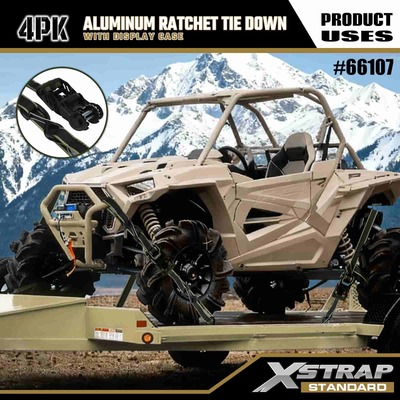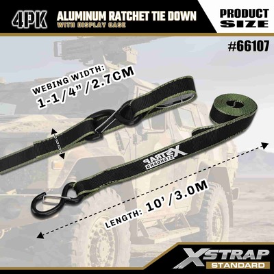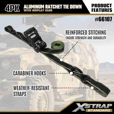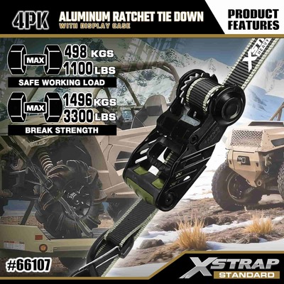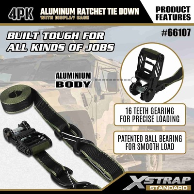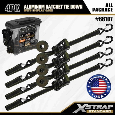 Xstrap 4 Pack Aluminium Ratchet Tie Down, 1-1/4" x 14' Polyester ligamen Strap molli fascia excute Ratchet Strap, 1000lbs Capacitas Cargo Lashing Securing Straps with Safety S Hooks for Cargo control Pickup Truck, SUV, Car Top Racks Motorcycle.