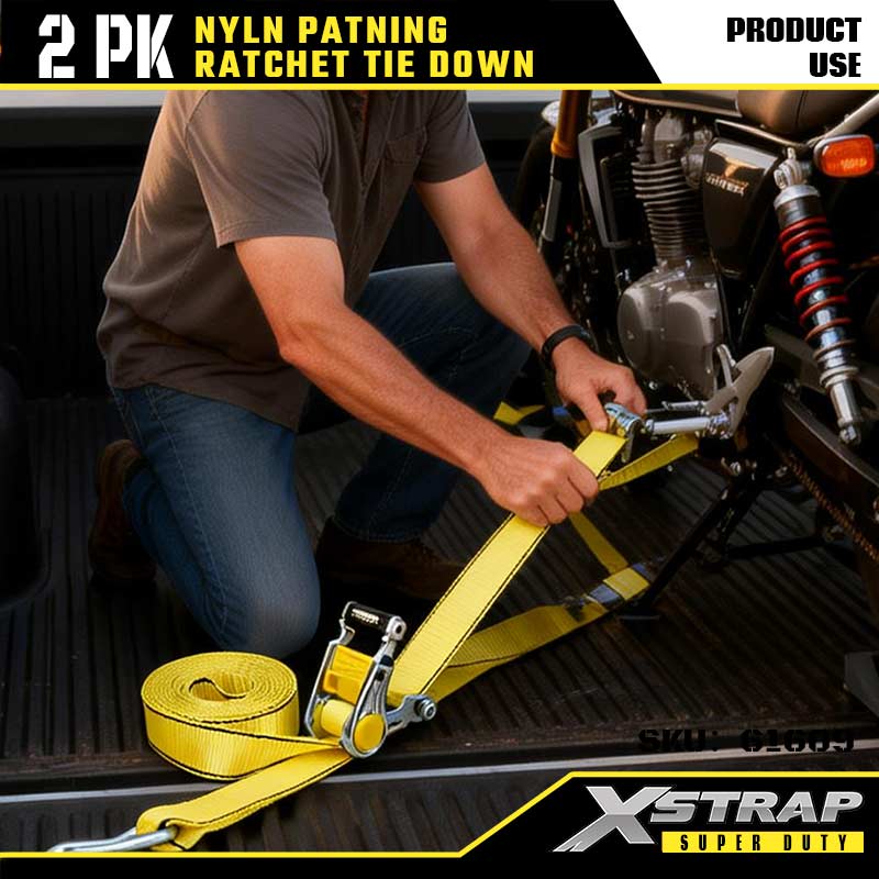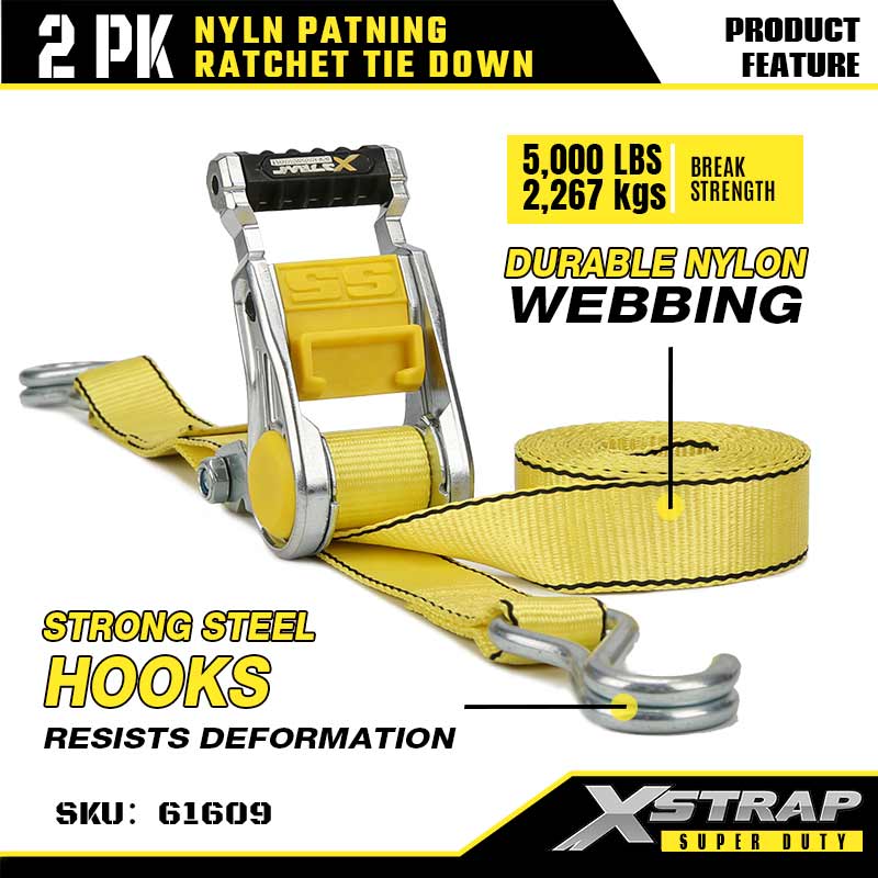 Xstrap 2PK Ratcet deprime cum Duplex J Hooks, 2" x 3.6' Polyester ligamen Strap Ratchet Strap, 1667lbs Capacitas Cargo Lashing Securing Straps cum Duplex J Hooks pro Gravi Officio Trailer, Flat Lecto Trailer Ski cymba, Car parva, Gravis Equipment.