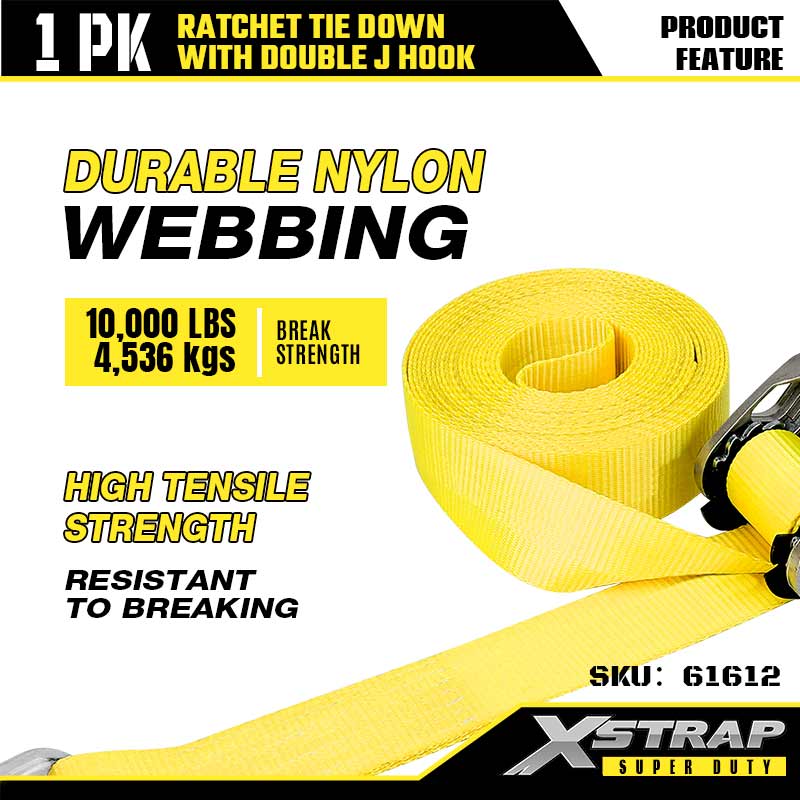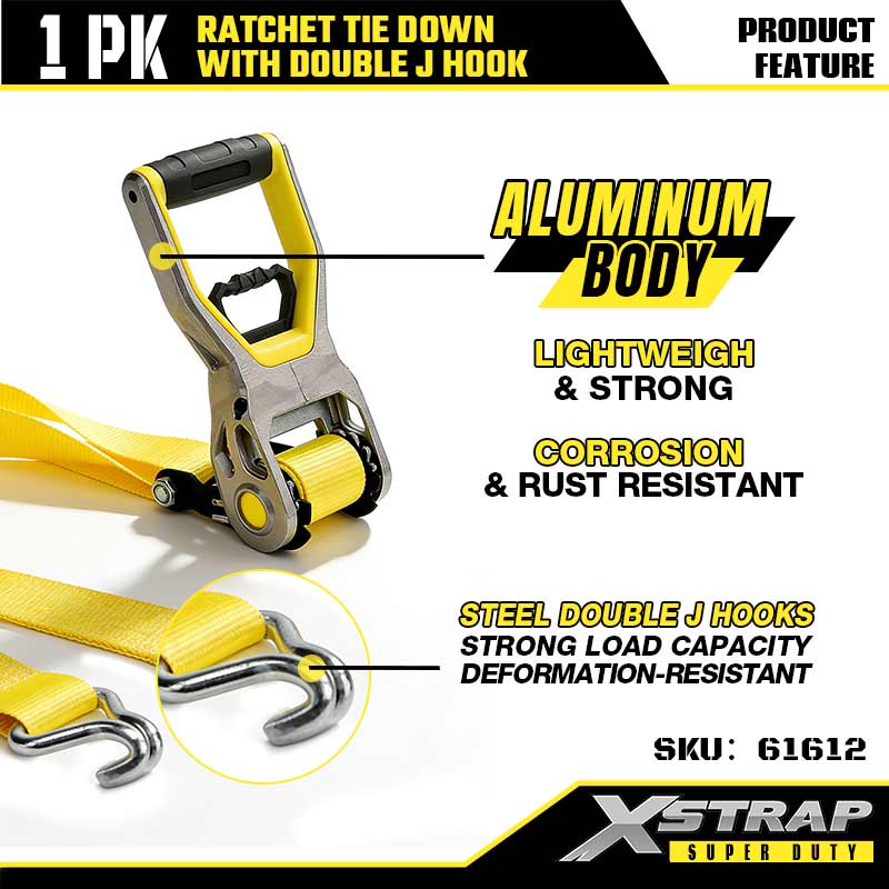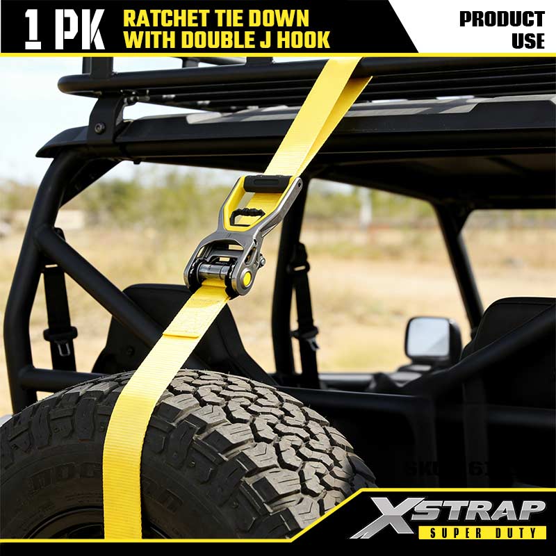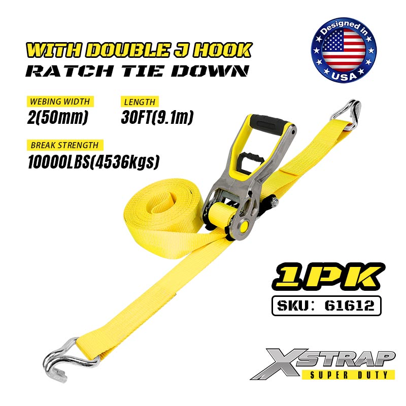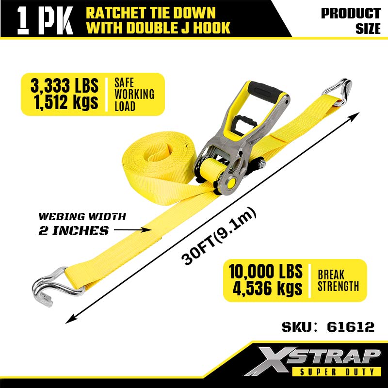 Xstrap 2PK Ratcet ligare cum Duplex J Hooks, 2" x 30' Polyester ligamen Strap Ratchet Strap, 3333lbs Capacitas Cargo Lashing Securing Straps with Double J Hooks for Gravis Officii Trailer, Flat Bed Trailer Ski cymba, Car parva, Gravis Equipment.
