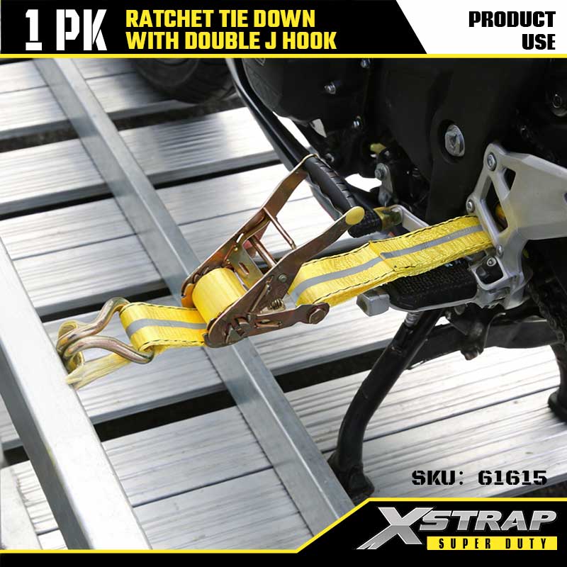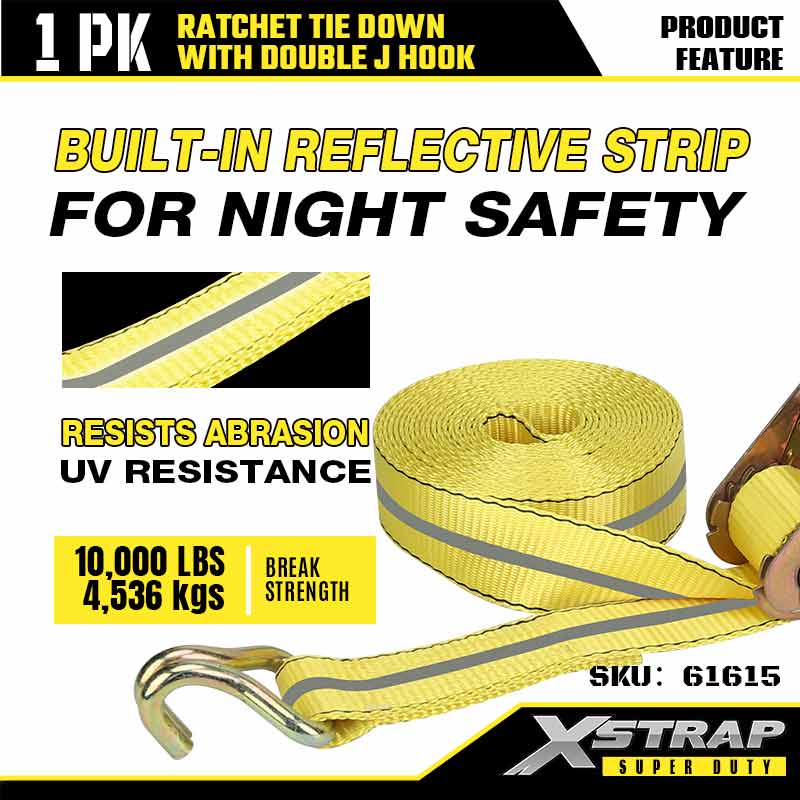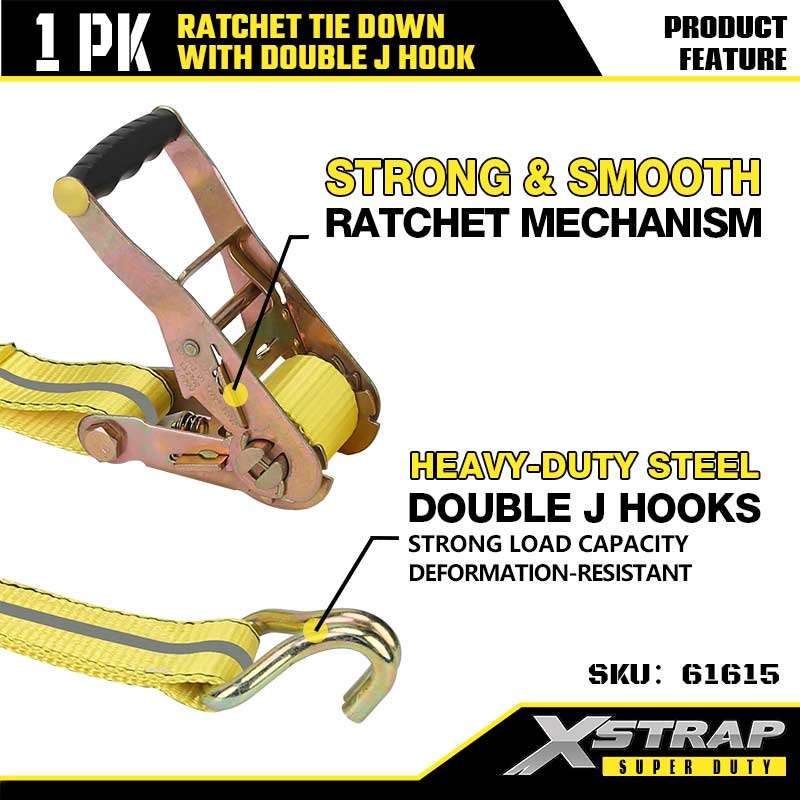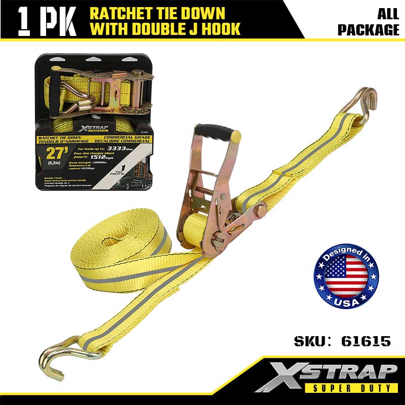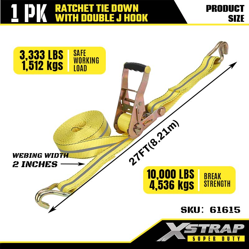 Xstrap Ratcet deprime cum Duplex J Hooks, 2" x 27' Polyester ligamen Strap Ratchet Strap, 3333lbs Capacitas Cargo Lashing Securing Straps with Double J Hooks for Gravis Officii Trailer, Flat Bed Trailer Ski cymba, Car parva, Gravis Equipment.