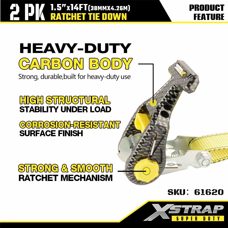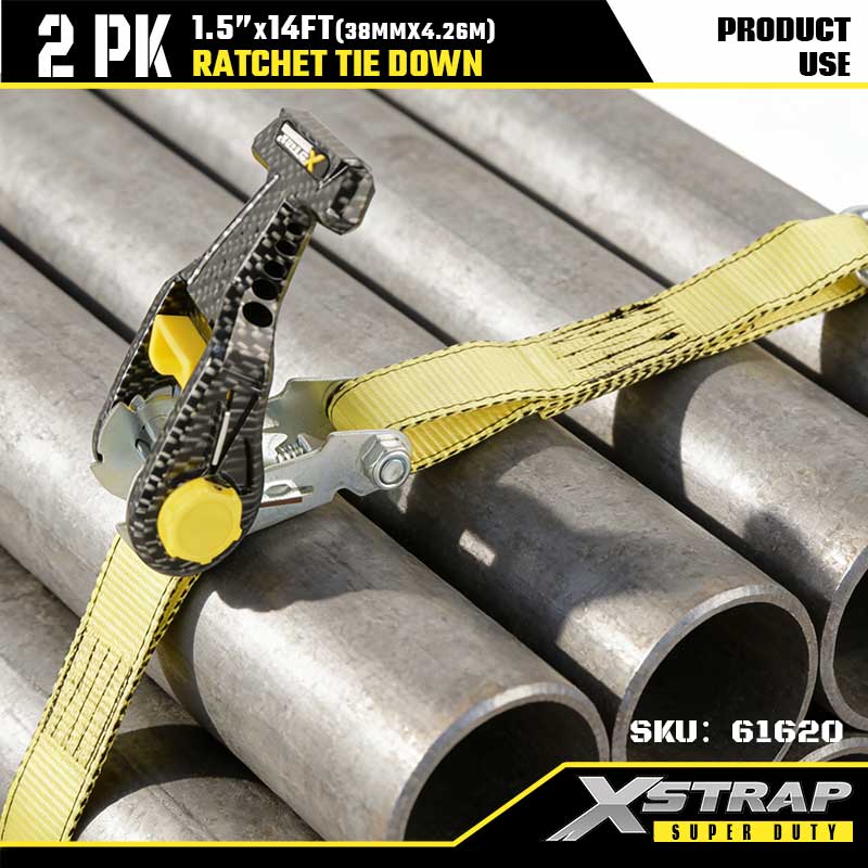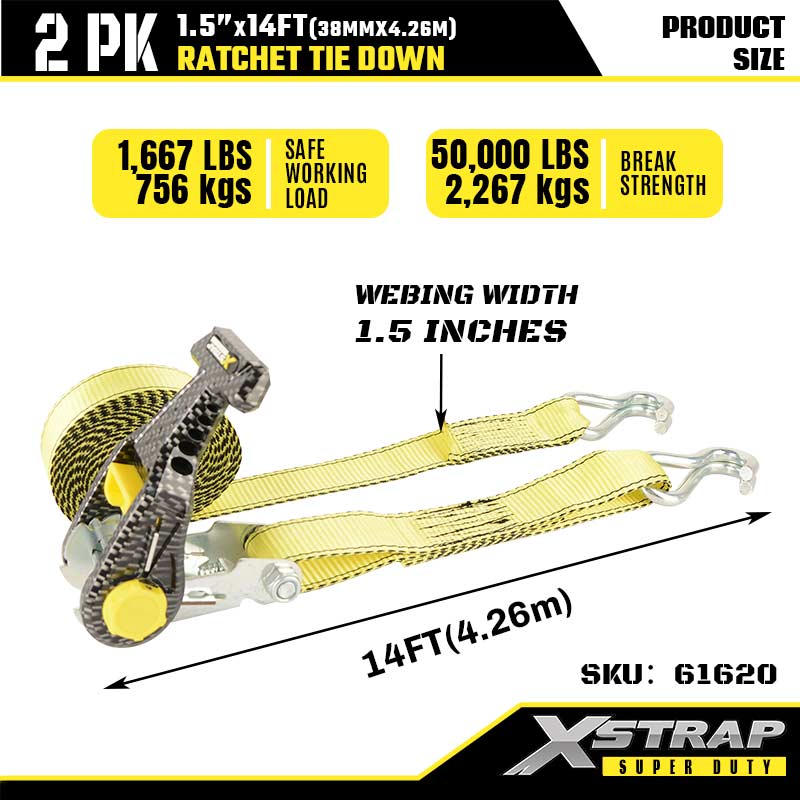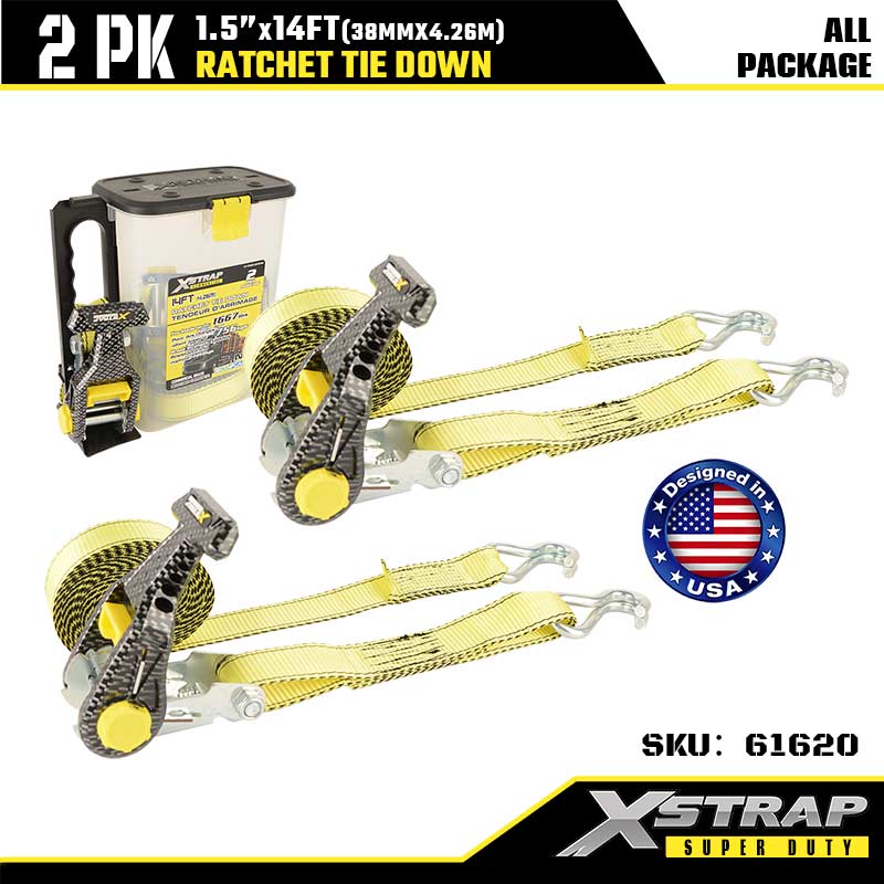 Xstrap 2PK Ratcet deprime cum Duplex J Hooks, 1-1/2" x 14' Polyester ligamen Strap Ratchet Strap, 1667lbs Capacitas Cargo Lashing Securing Straps cum Duplici Hooke pro Gravi Officio Trailer, Flat Bed Trailer Ski Scapha, Vecicula, Gravis Equipment.