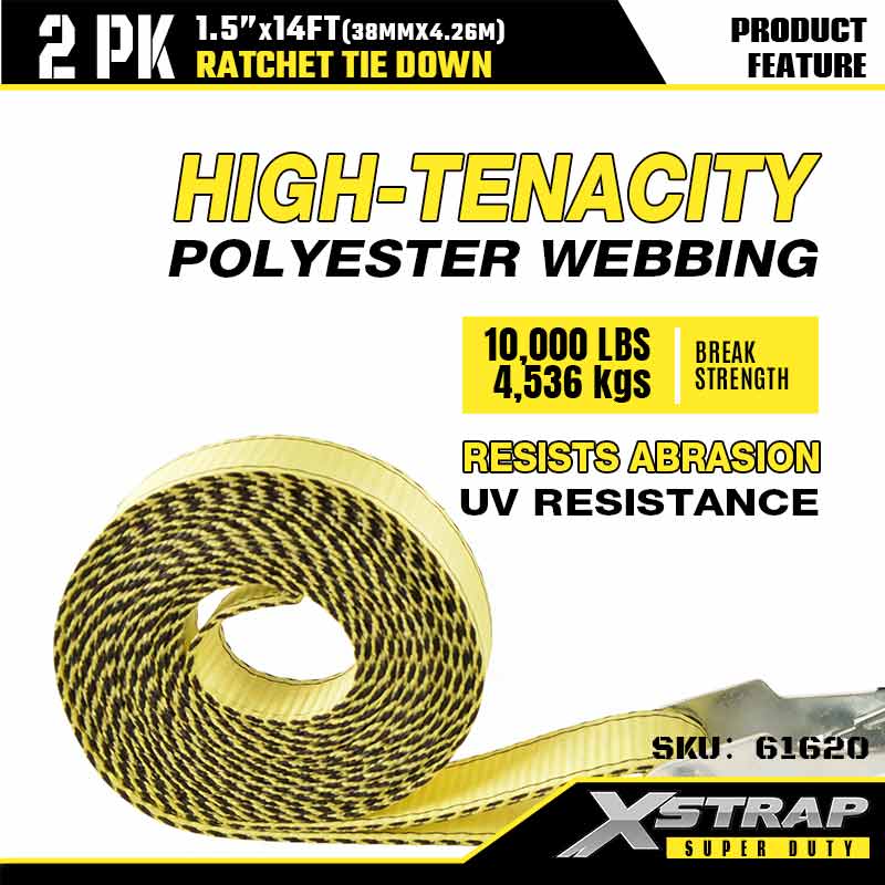 - Princeps Tenacity Polyester Webbing: 1.5 pollicis polyester late plicando utitur consilio textili nigro et flavo ad resistendum bracchiis, extensionibus et abrasione. UV resistens est soli et pluviae tenere, ergo fortis diu terminus usus in locis job vel backroads moratur.